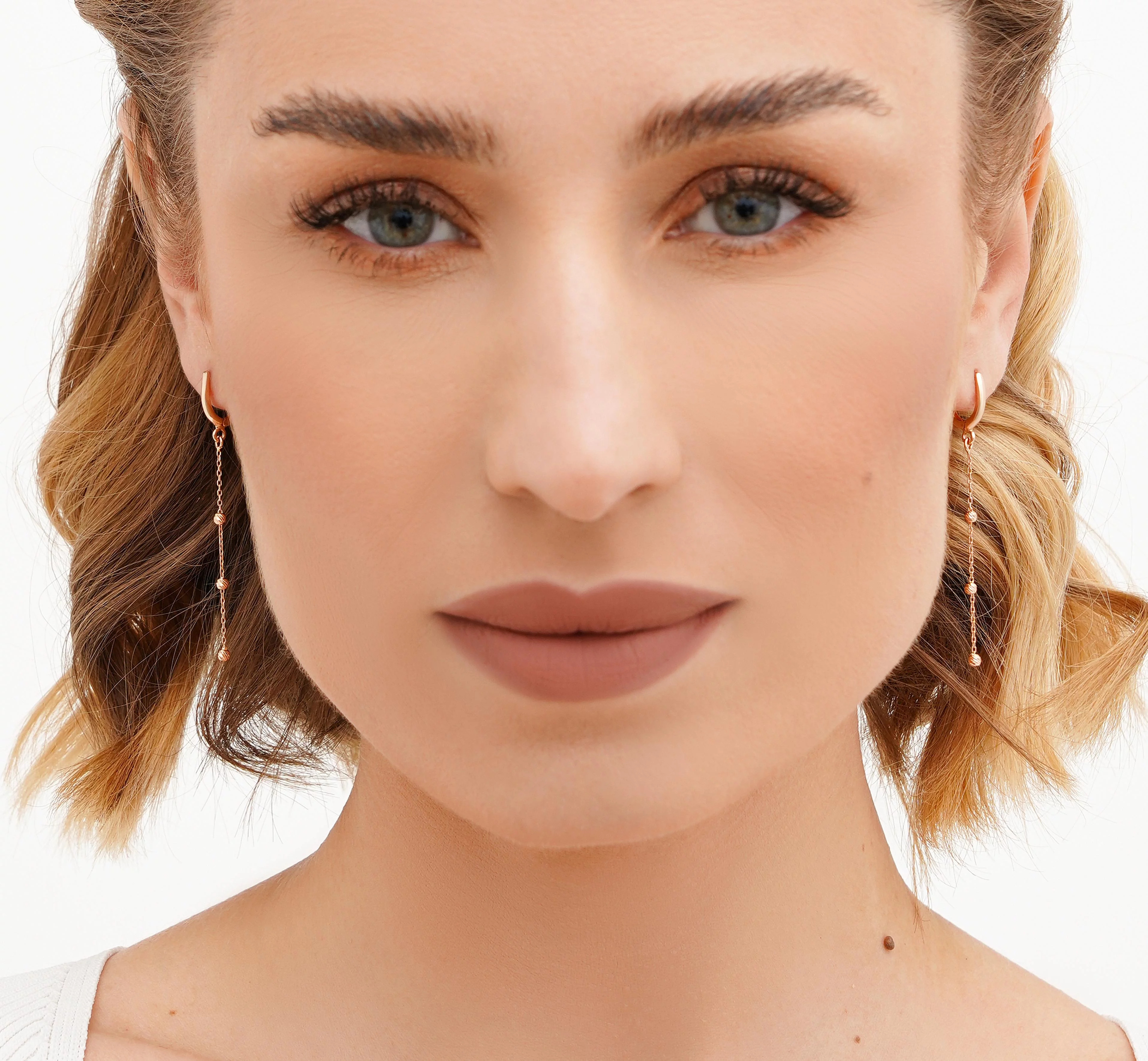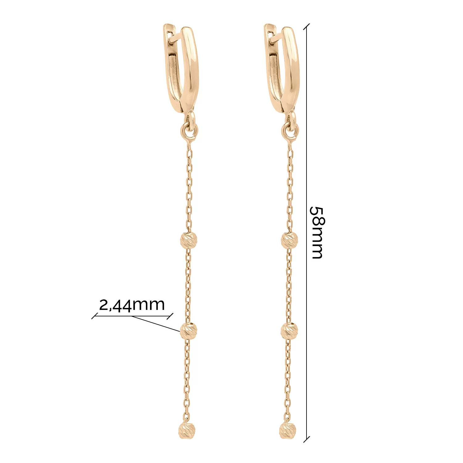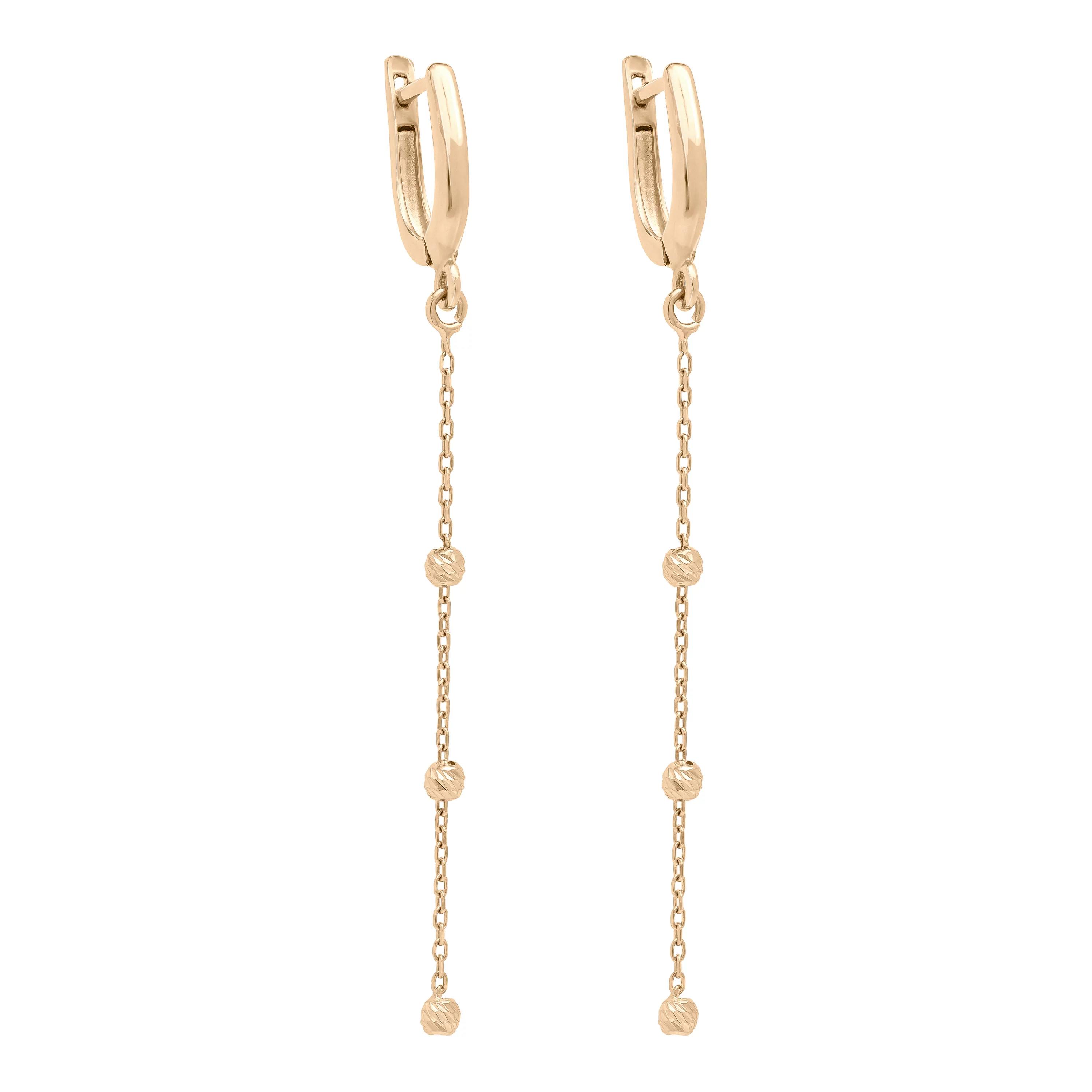 Серьги из красного золота с подвесами "Кольца" с алмазной гранью - 1562490