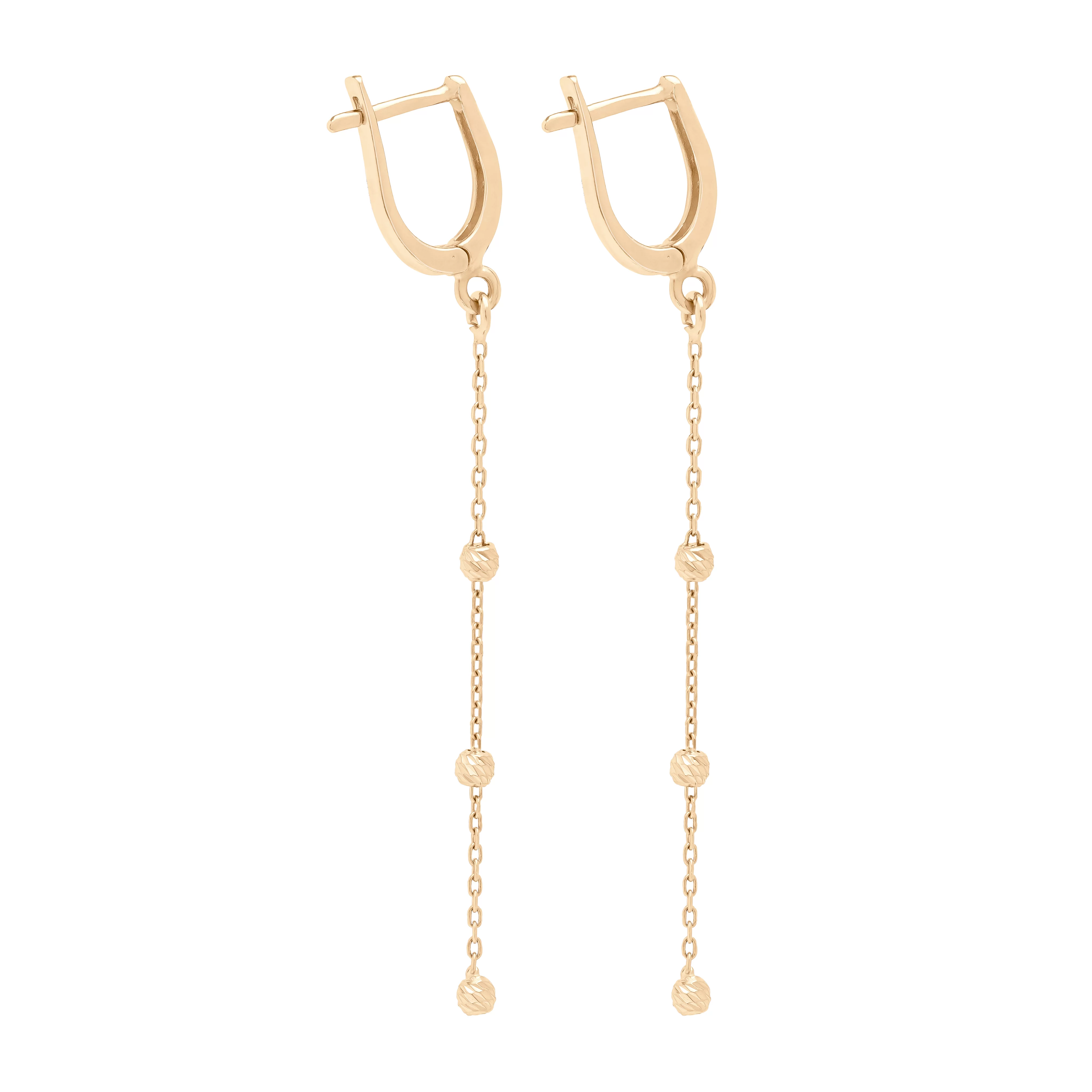 Сережки из комбинированого золота с алмазной гранью и подвесами - 970225
