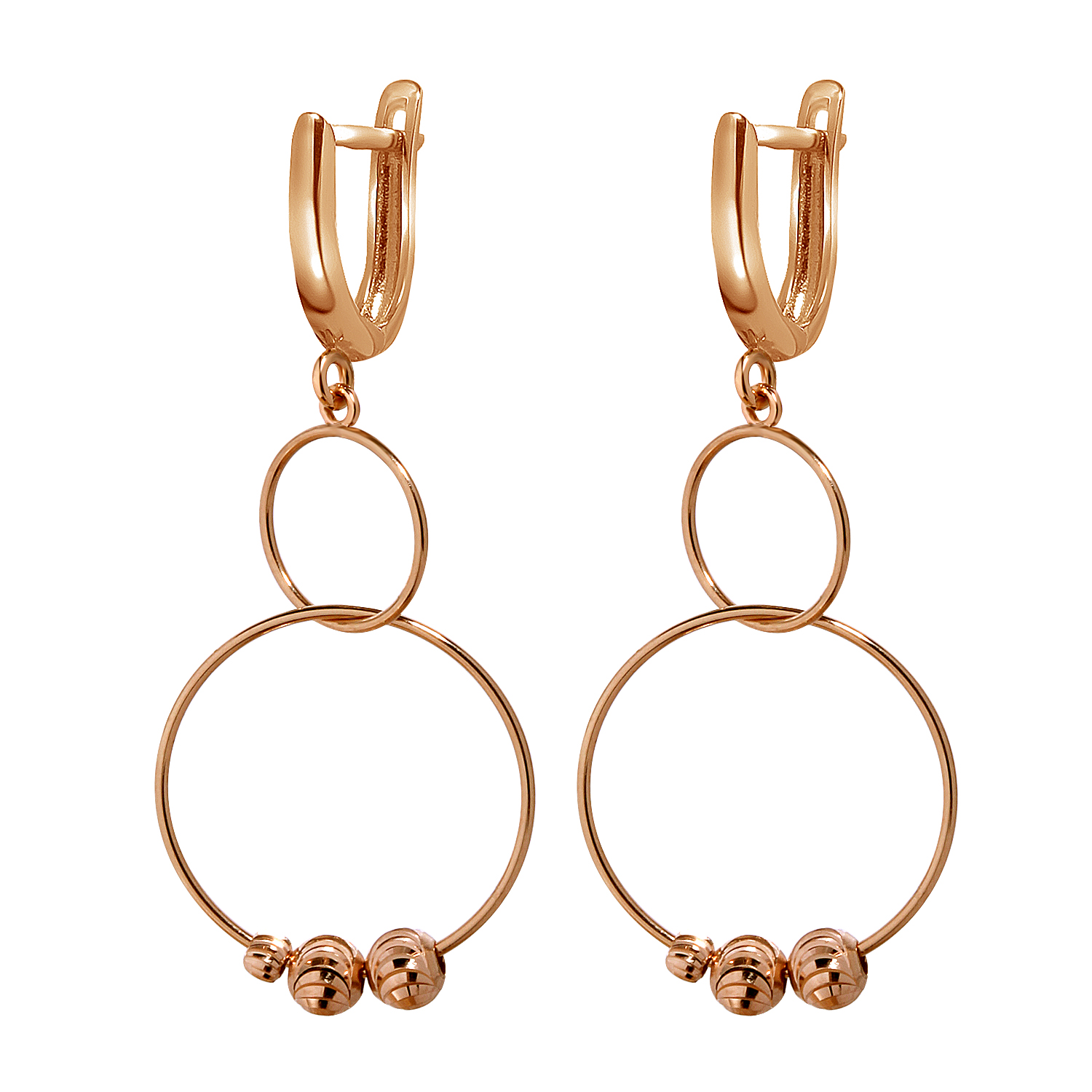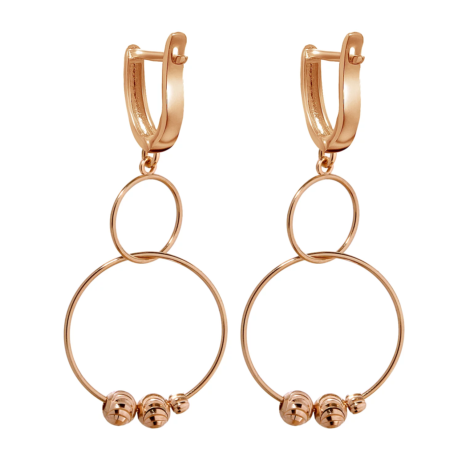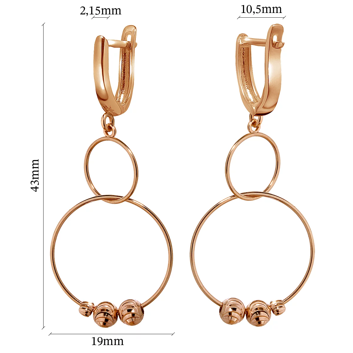 Сережки из красного золота с подвесками Кольца - 967537