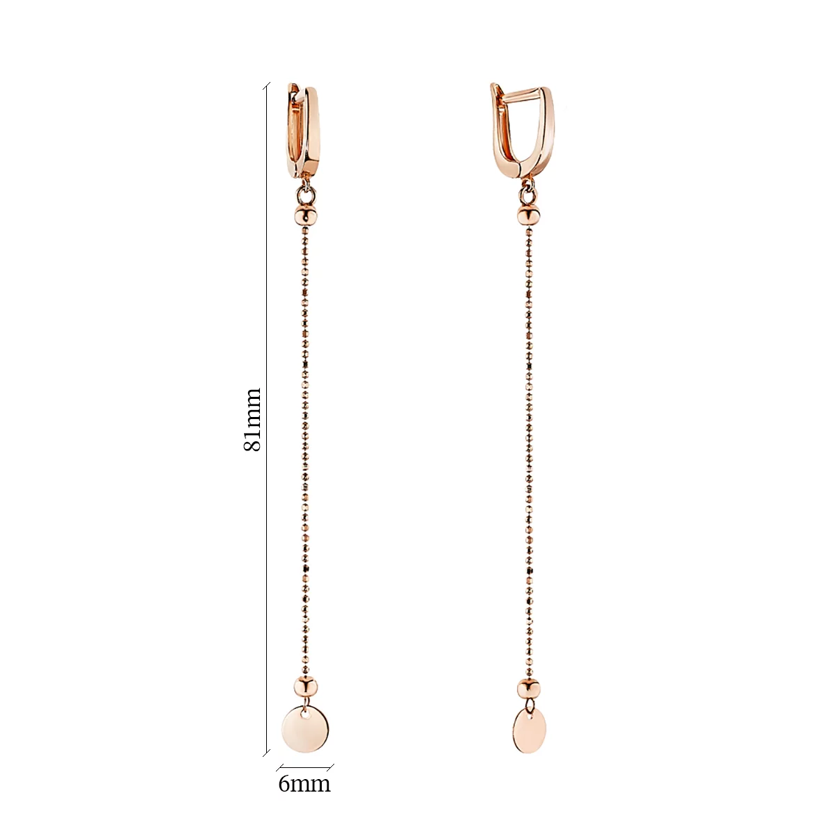 Сережки из красного золота с подвесками и монетками - настоящее открытие. С первого взгляда они покоряют своей утончённостью: тонкая цепочка, аккуратные бусины и изящный диск на конце - всё выглядит так легко, будто серьги танцуют при каждом движении головы. Цвет красного золота не кричащий, но при этом добавляет образу тепла и благородства. Они универсальны, но не теряются на фоне, не перегружают образ, а подчёркивают его - как штрих художника, завершающий картину. Если вы ищете украшение, которое говорит о вкусе, но не требует громких слов - это оно.