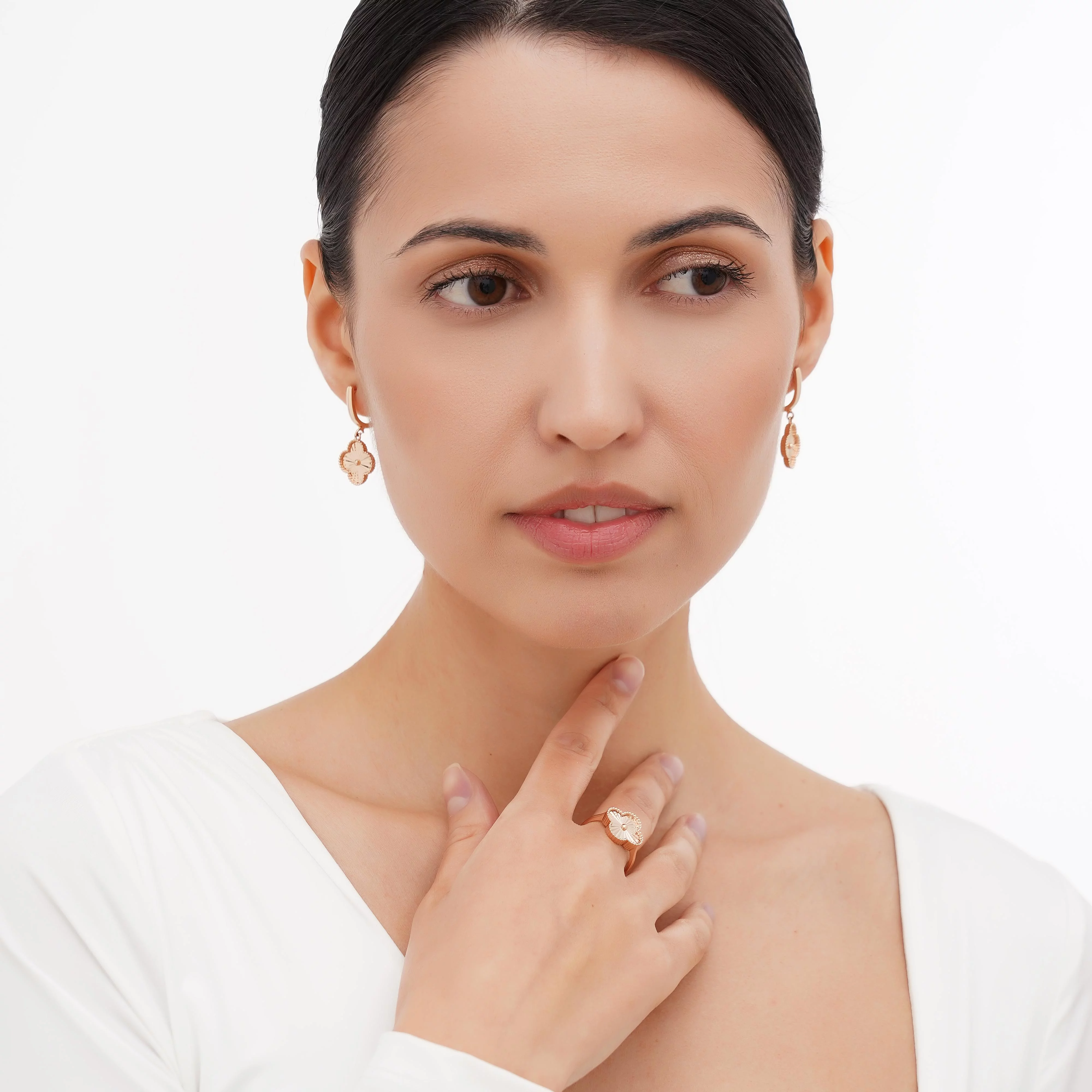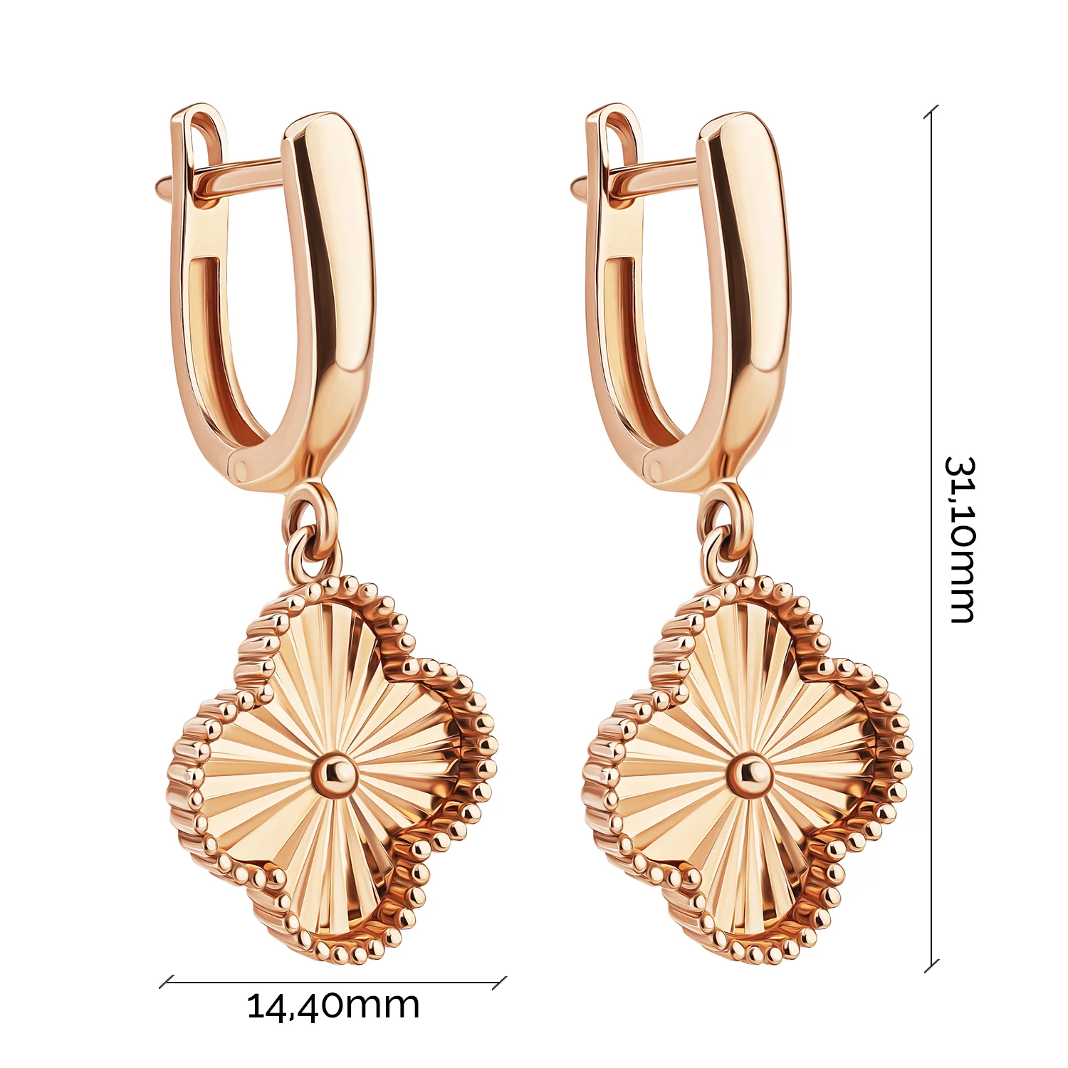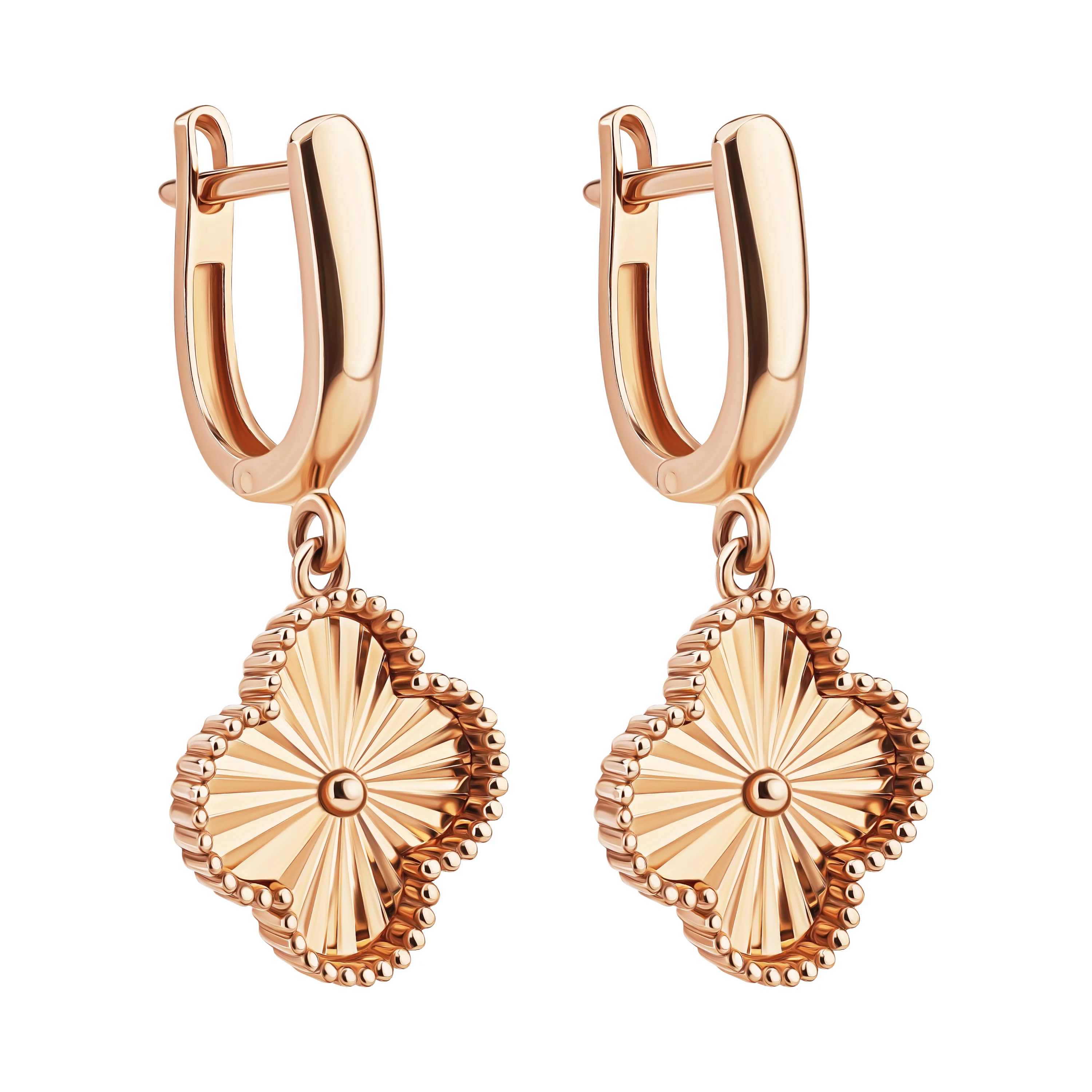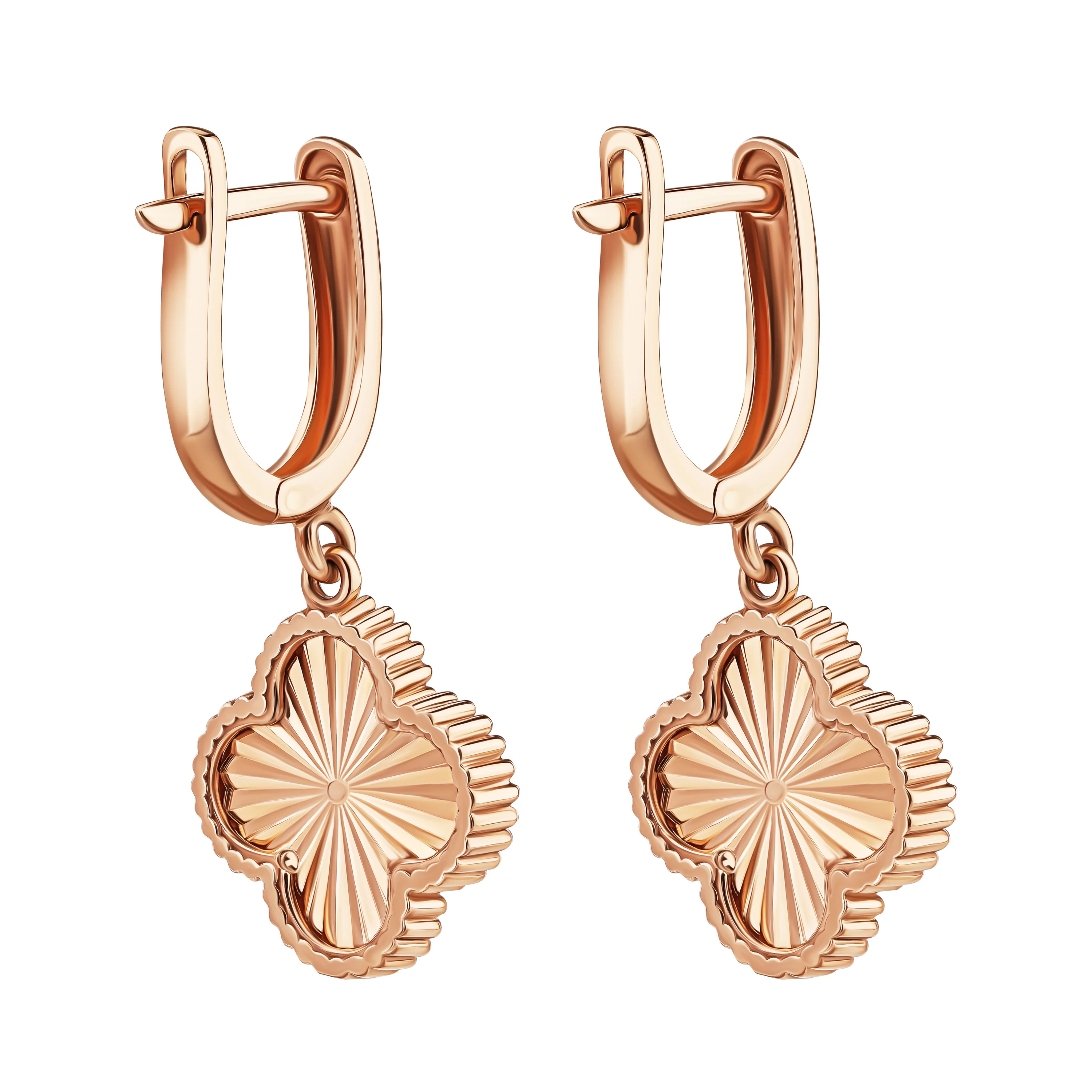 Сережки из красного золота с подвесками "Клевер" - 1689569