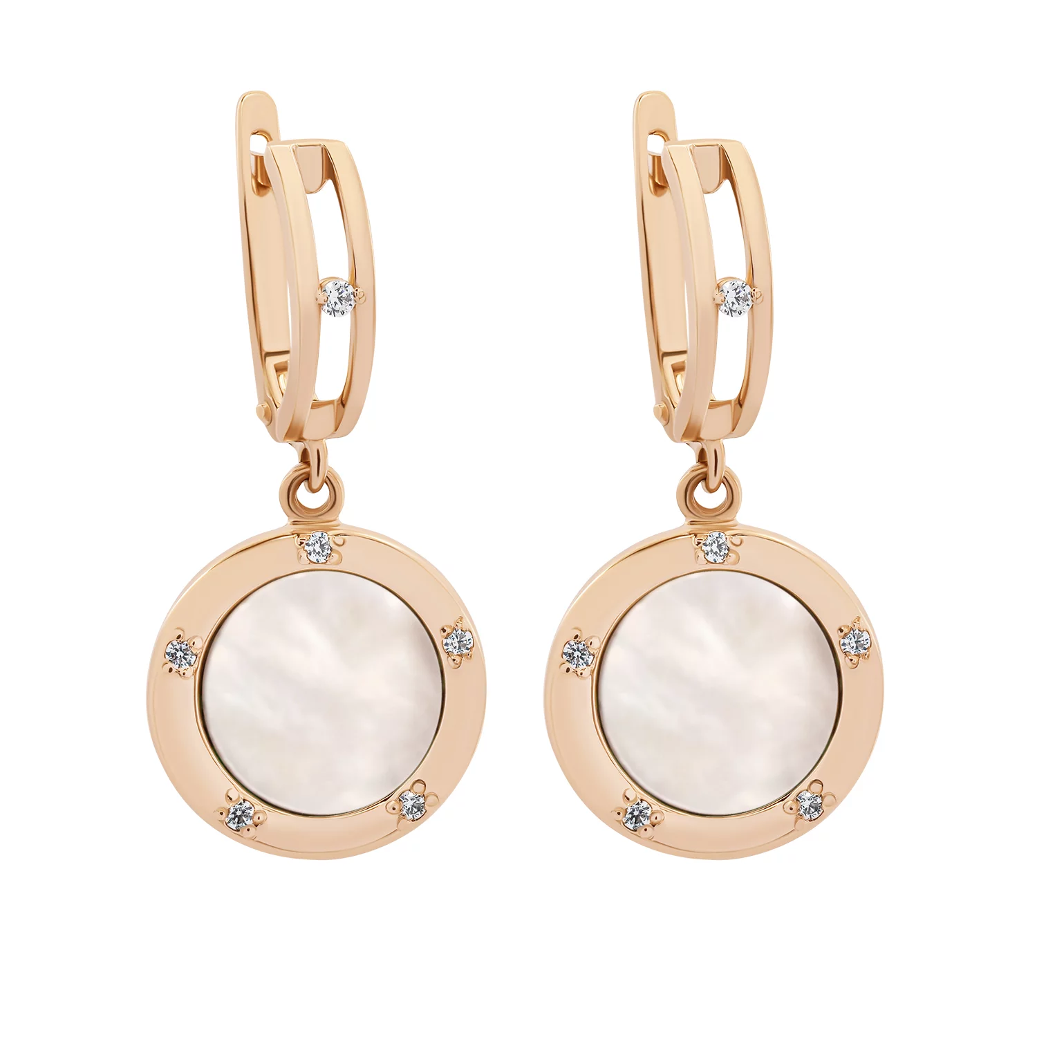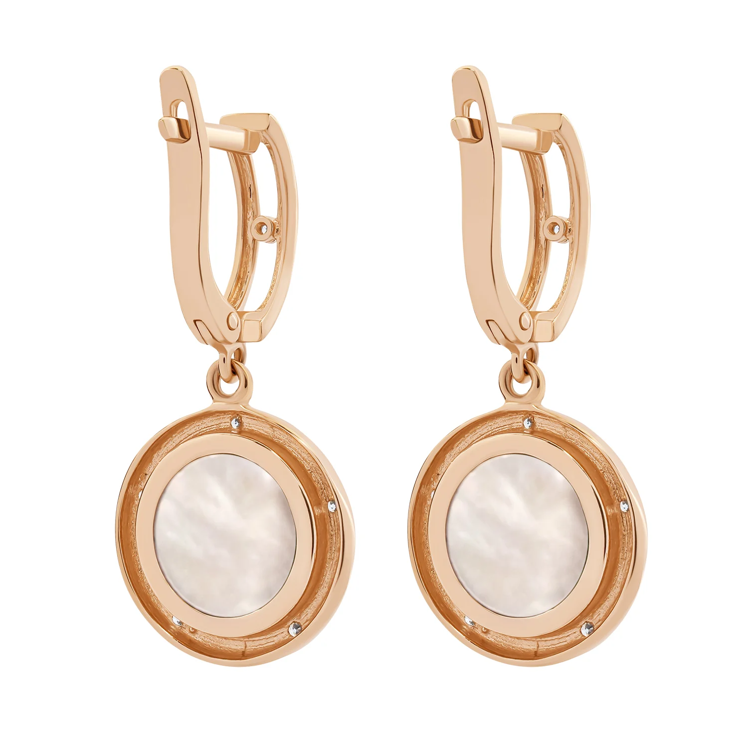Сережки "Круг" из красного золота с подвесами з дорожками фианитов - 1748377