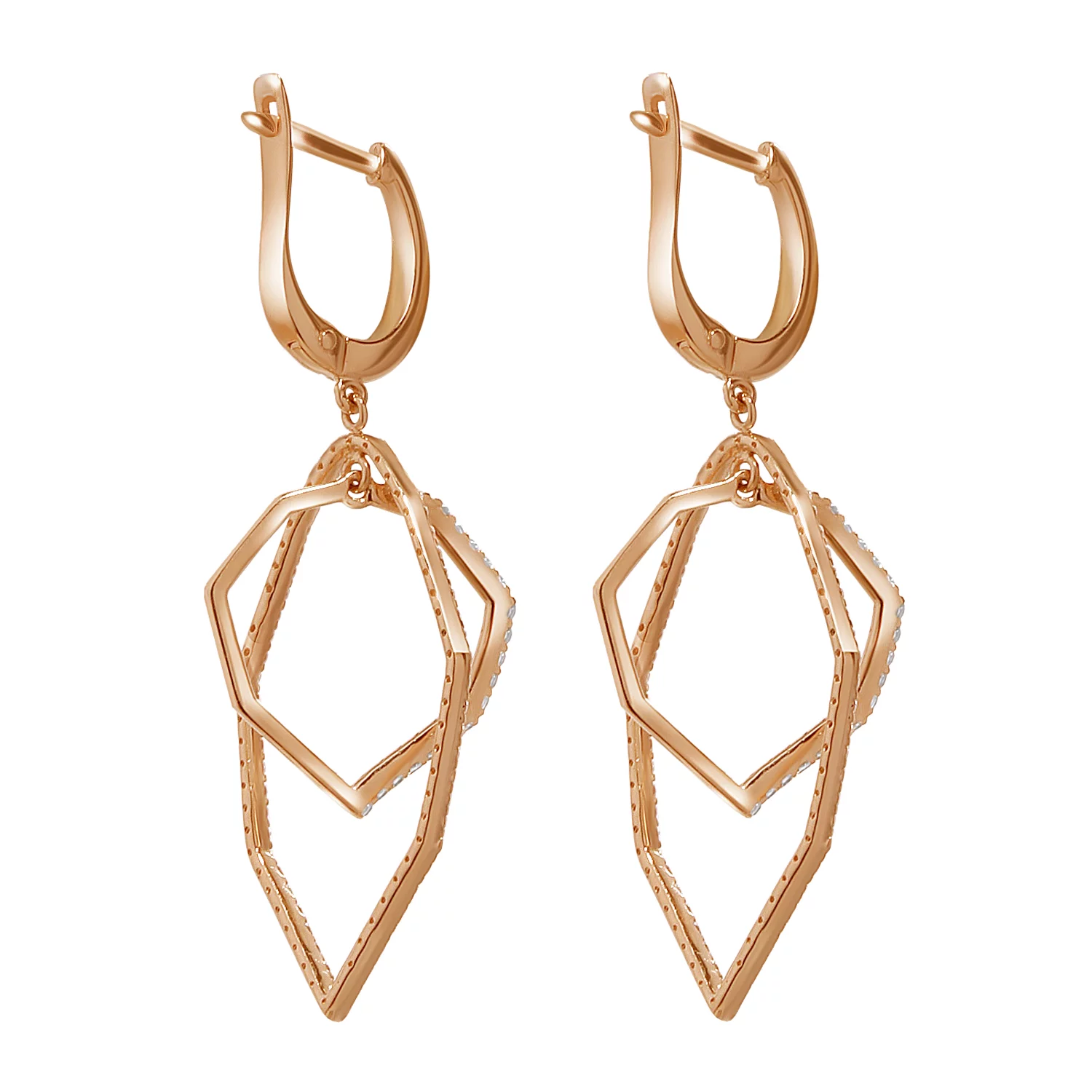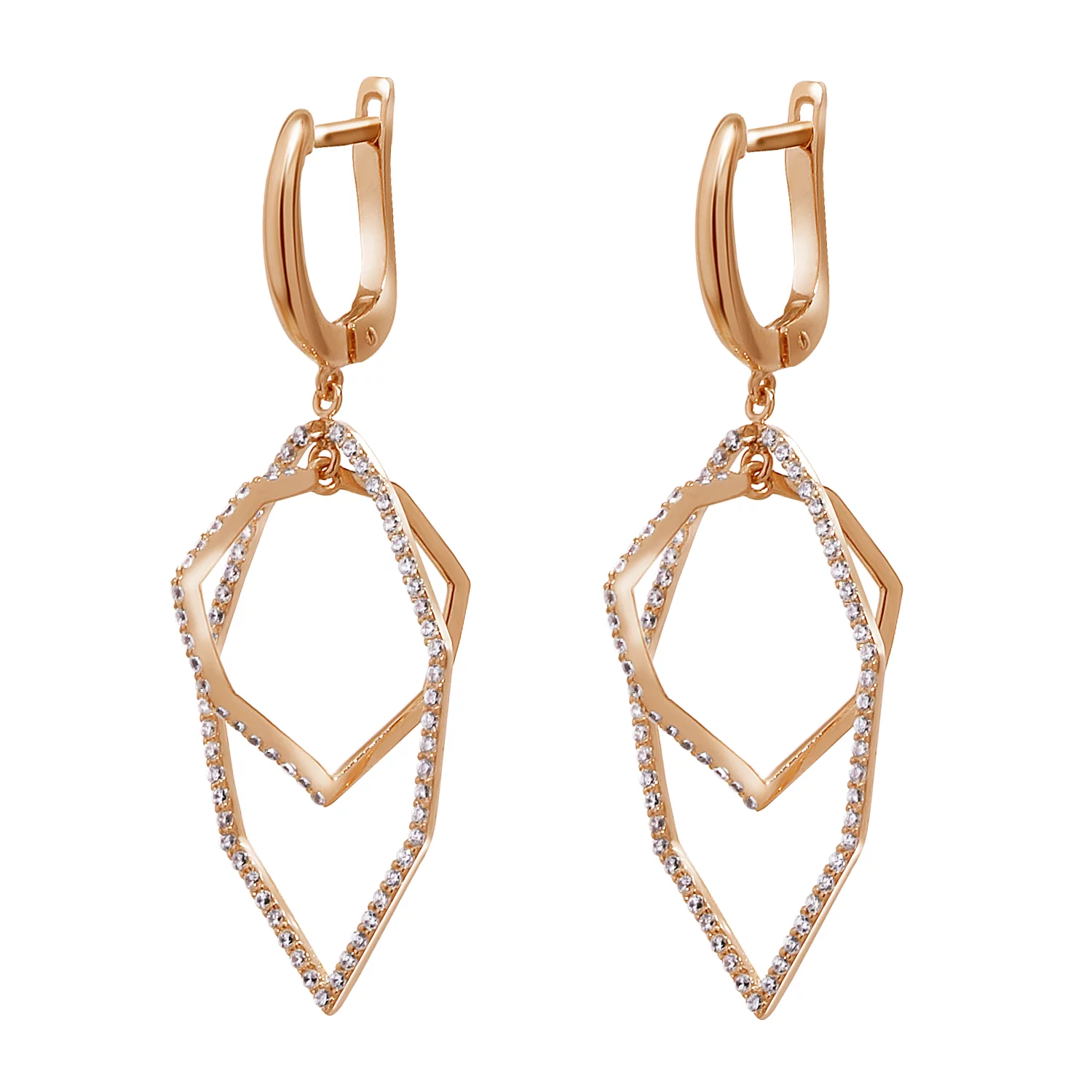 Сережки из красного золота с подвесками с фианитом - 968627