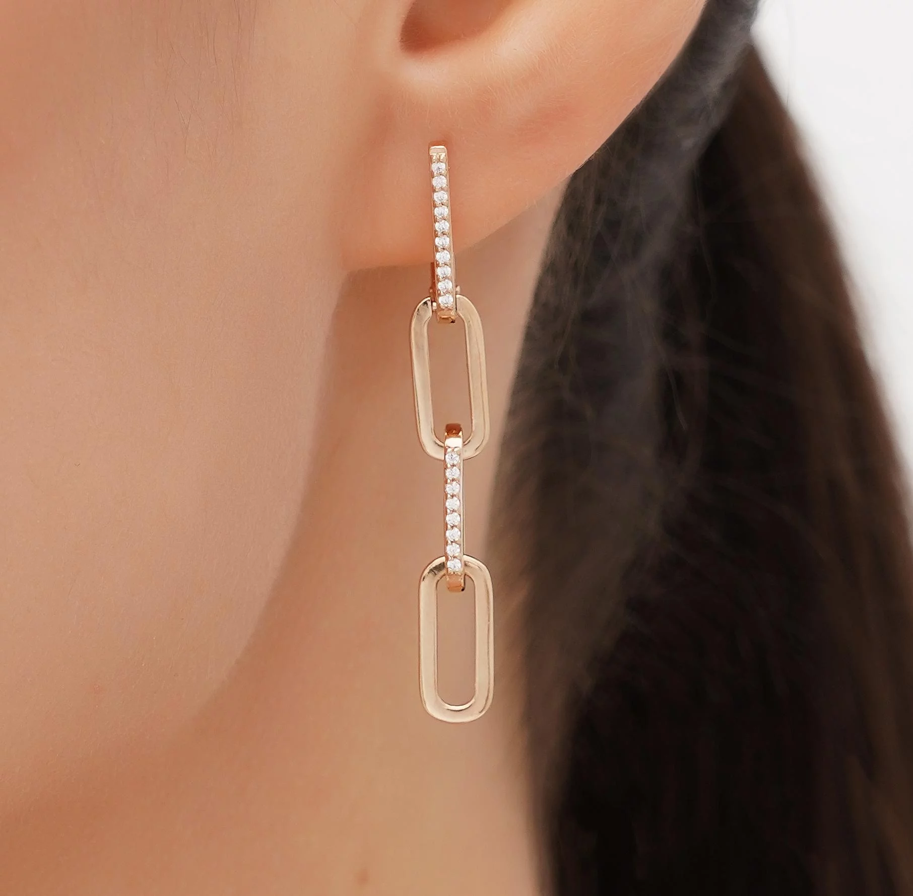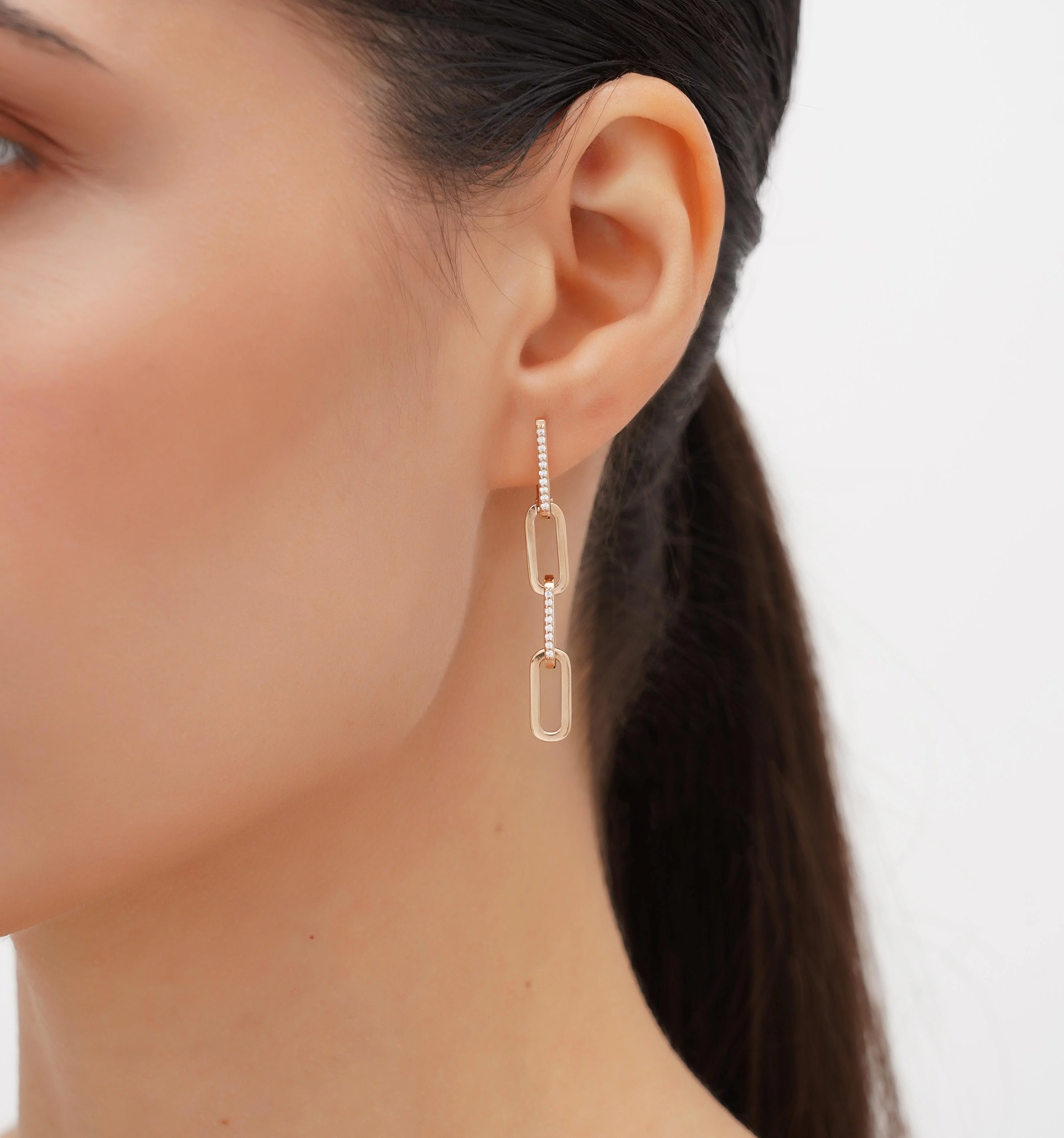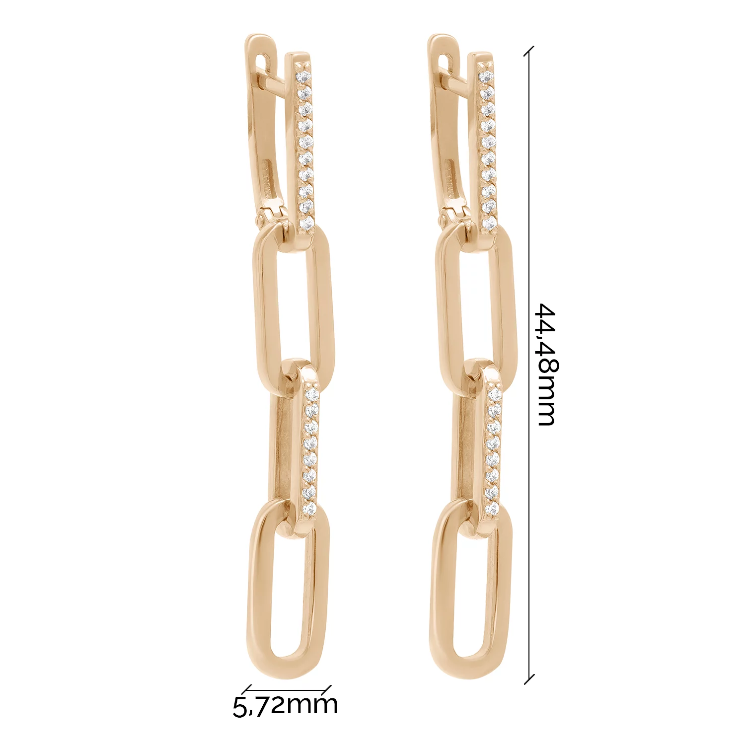 Стильные сережки с подвесом из комбинированного золота с фианитами - 1877893