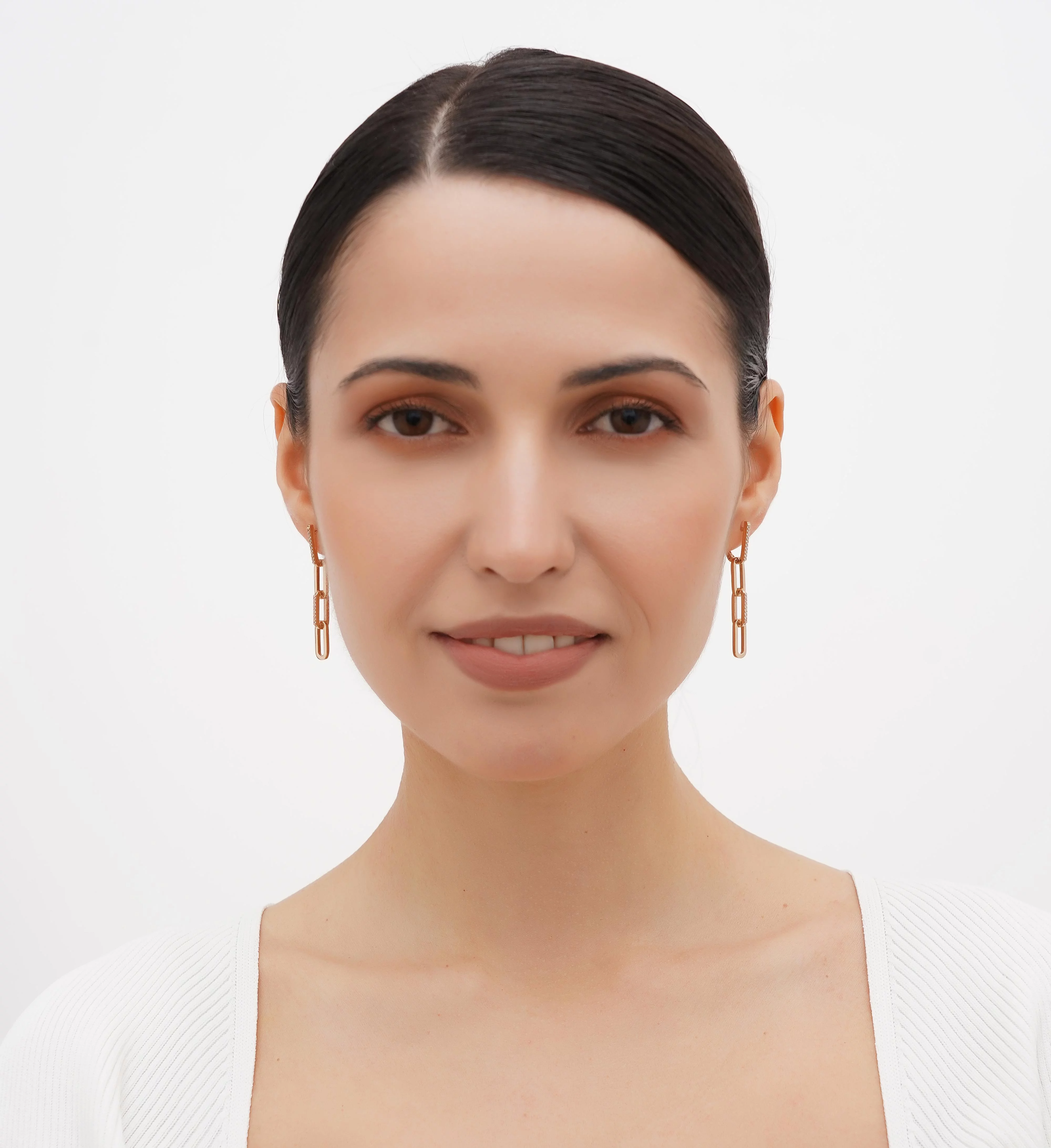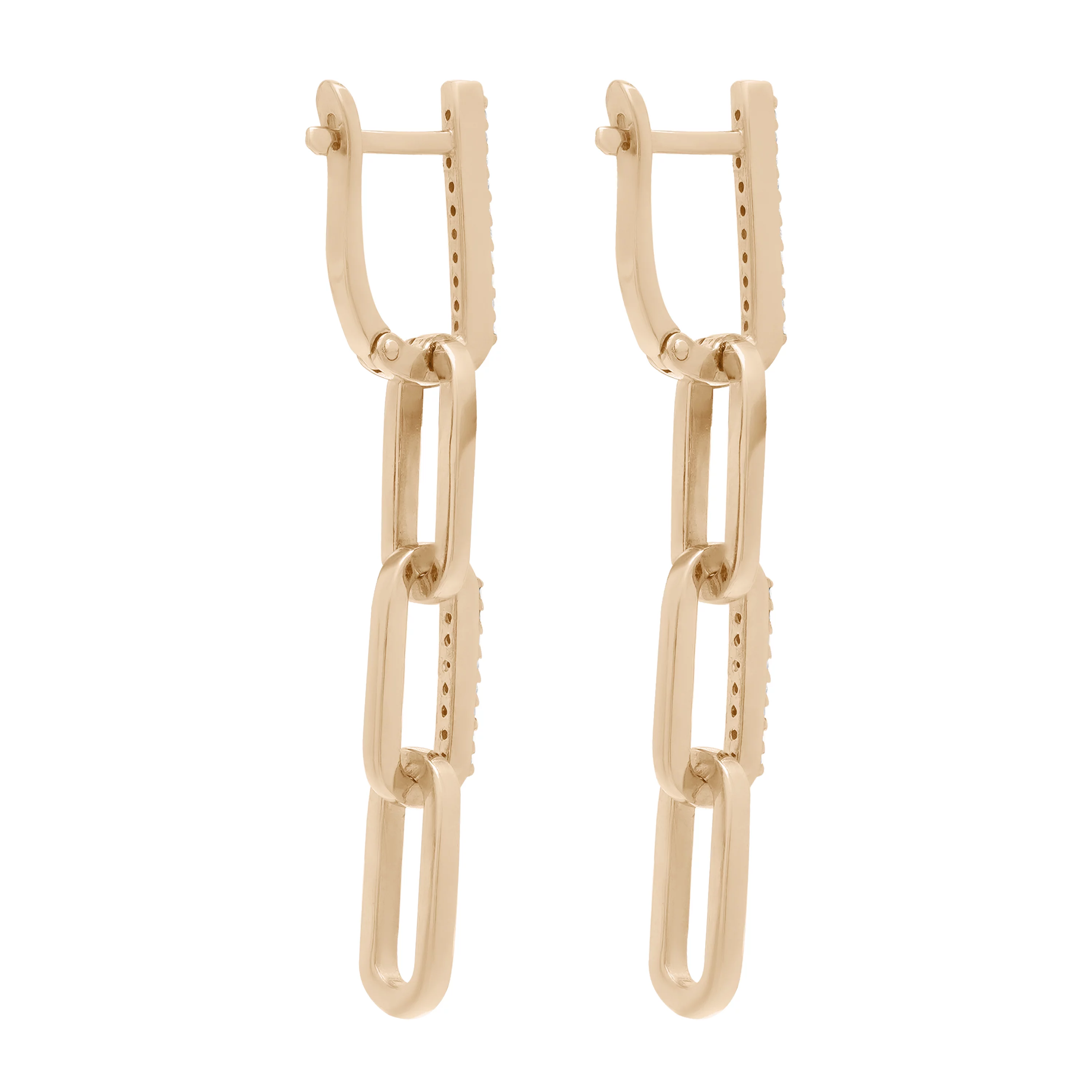 Стильные сережки с подвесами в красном золоте с эмалью и фианитом - 1928138