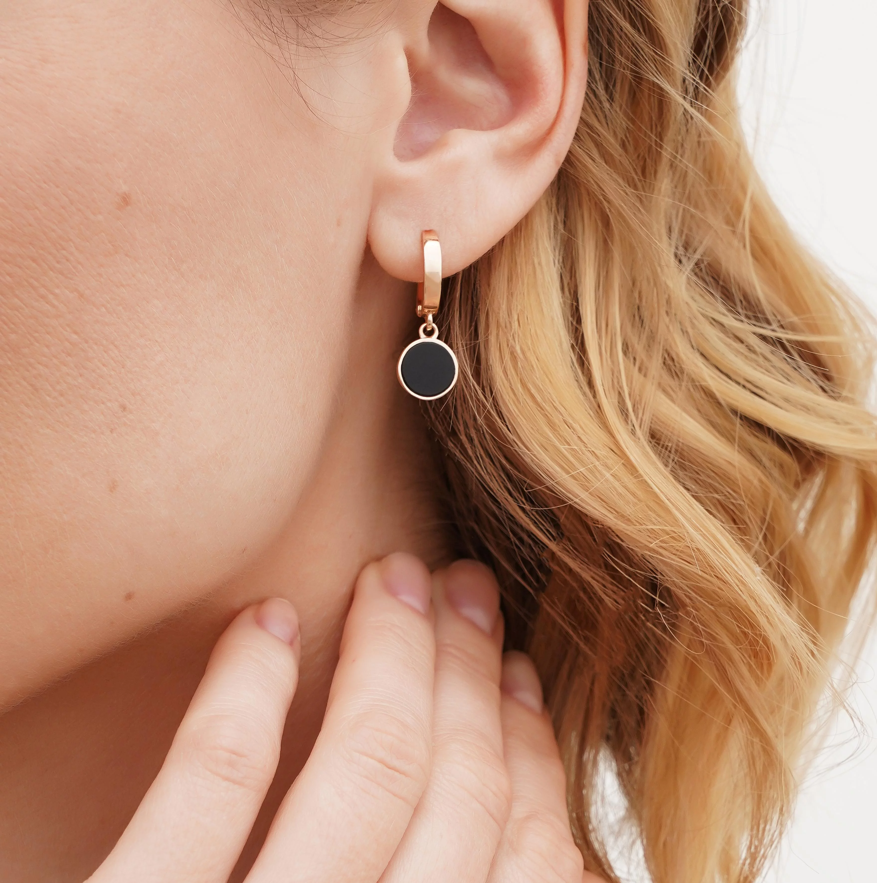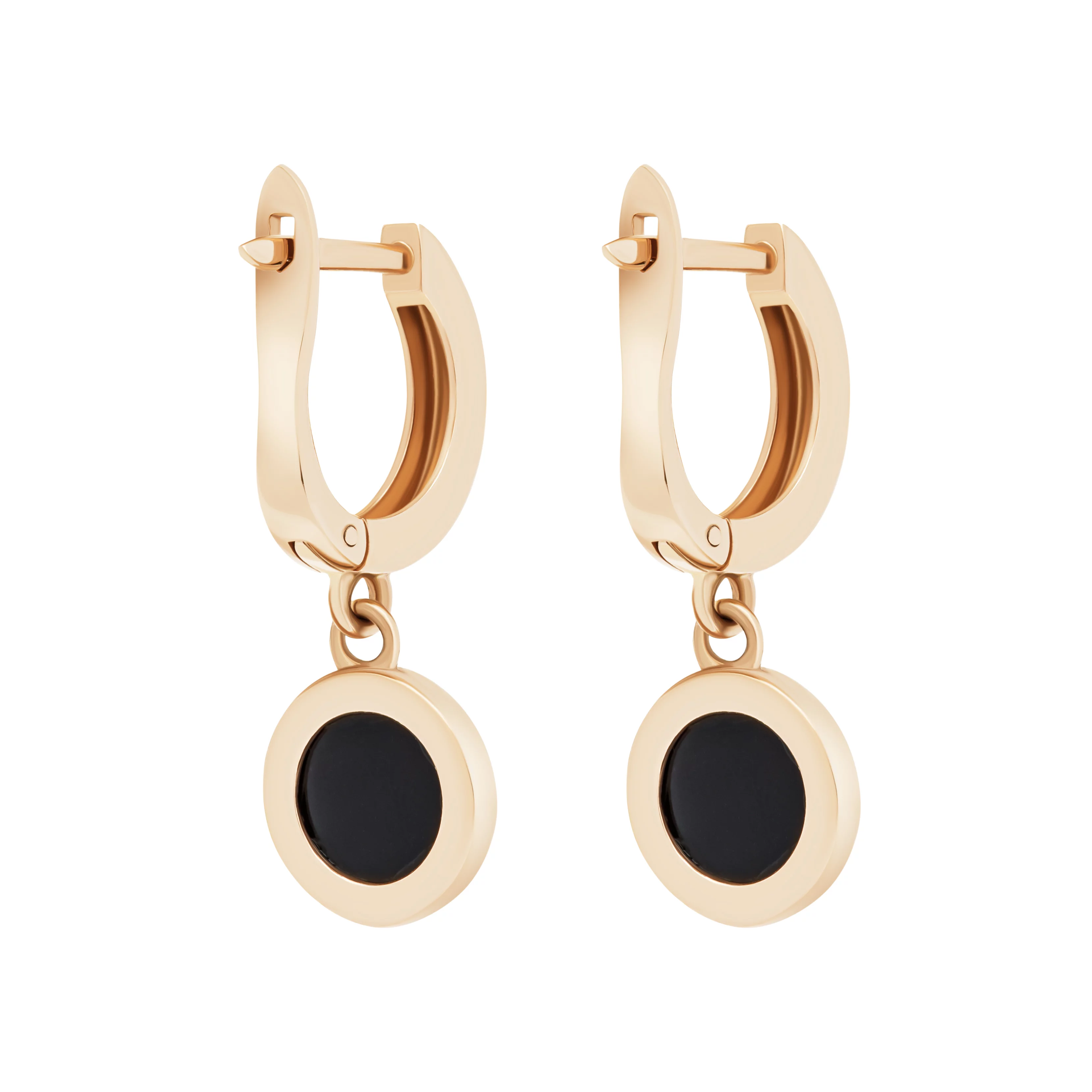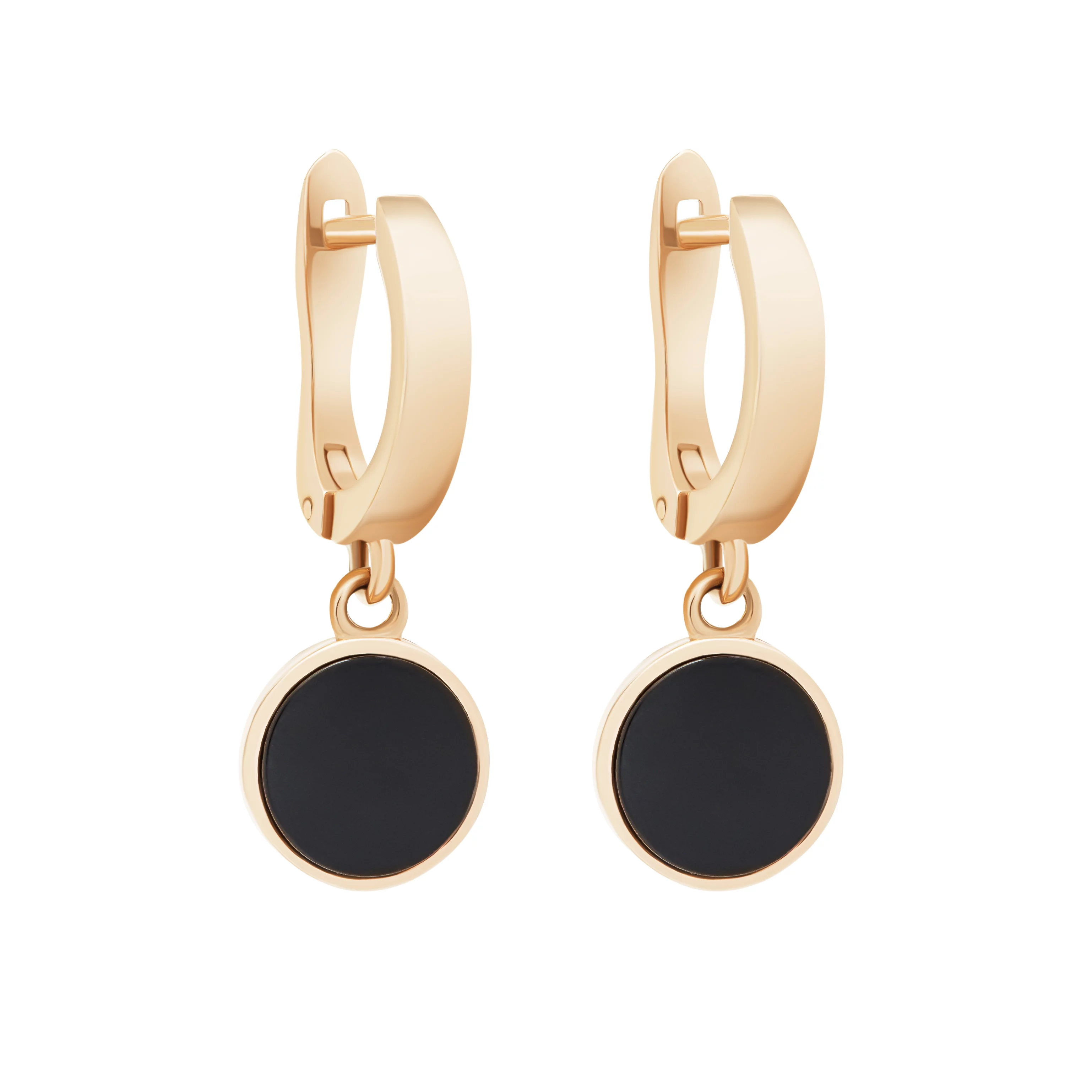 Сережки с подвесом "Шары" из красного золота с алмазной гранью и ониксом - 1872773