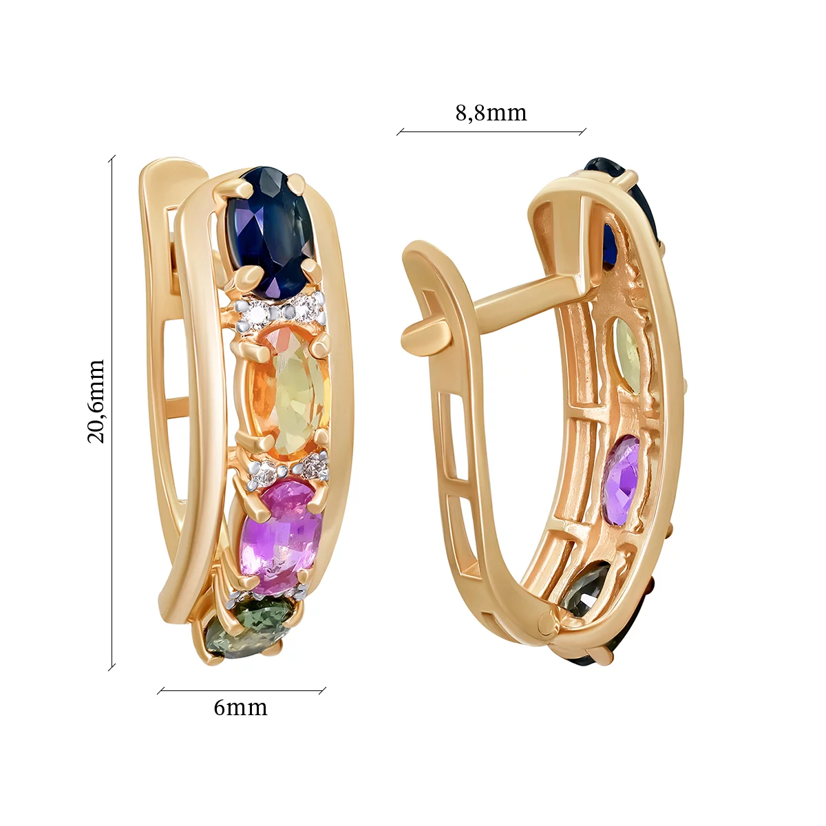 Сережки из красного золота с сапфирами и бриллиантами - 897039
