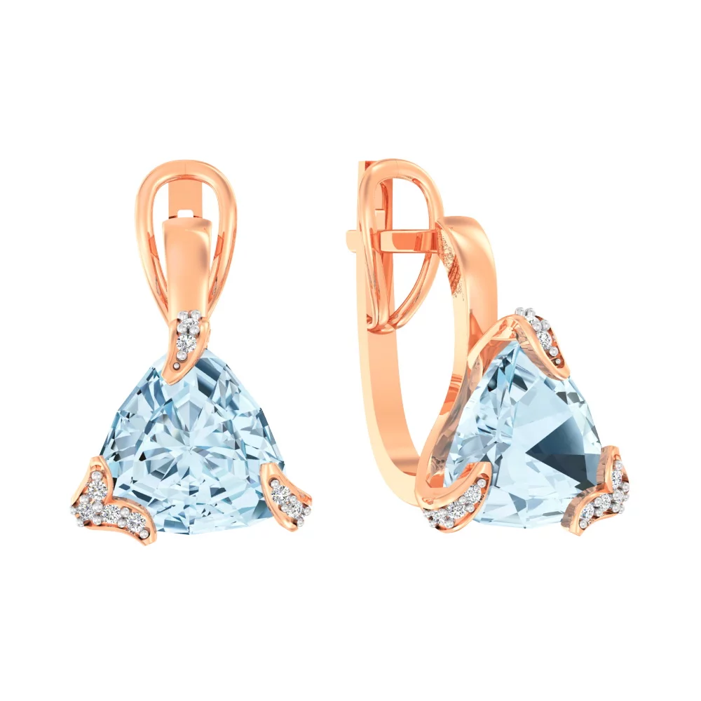 Сережки из красного золота с топазом и цирконием - 961113