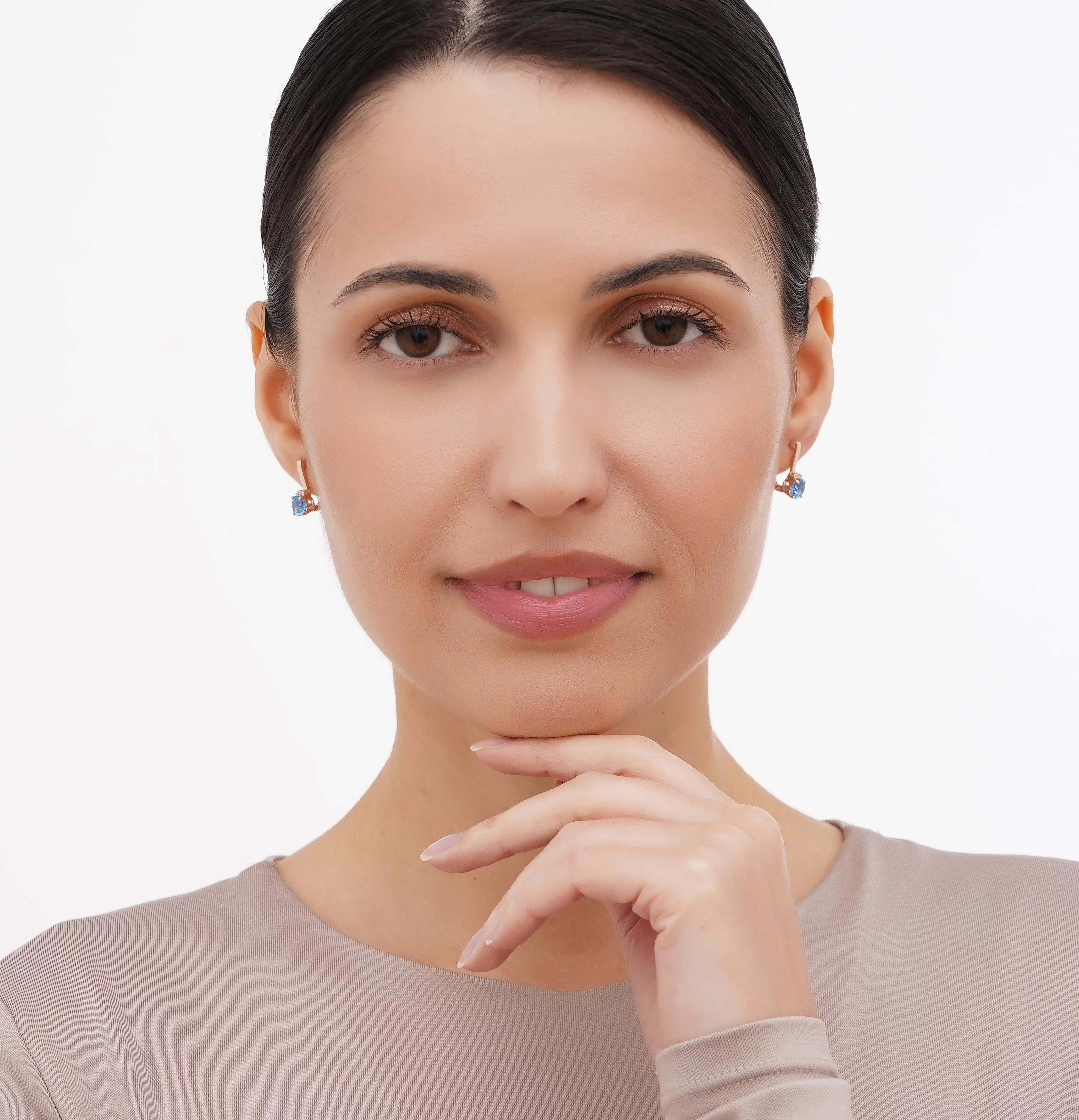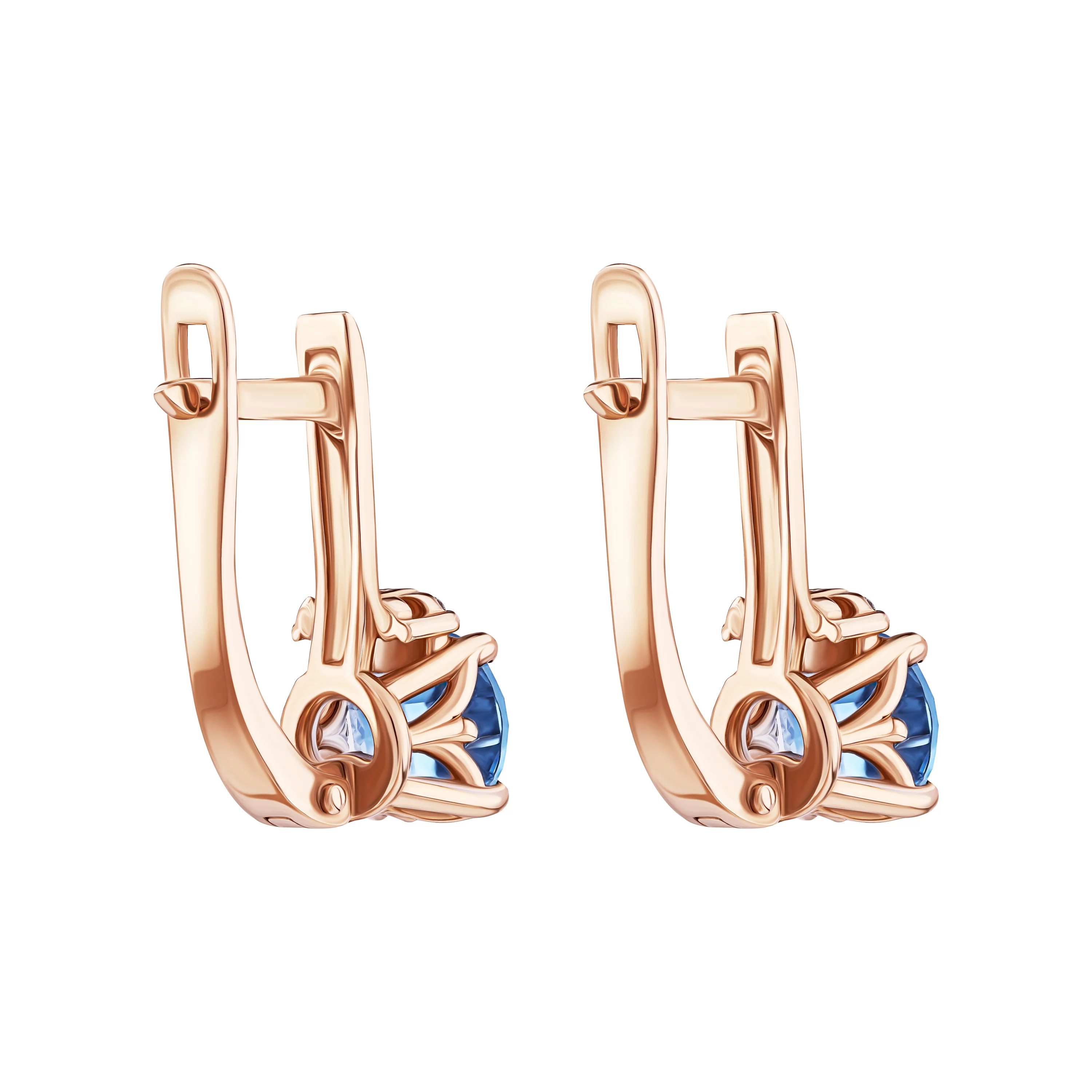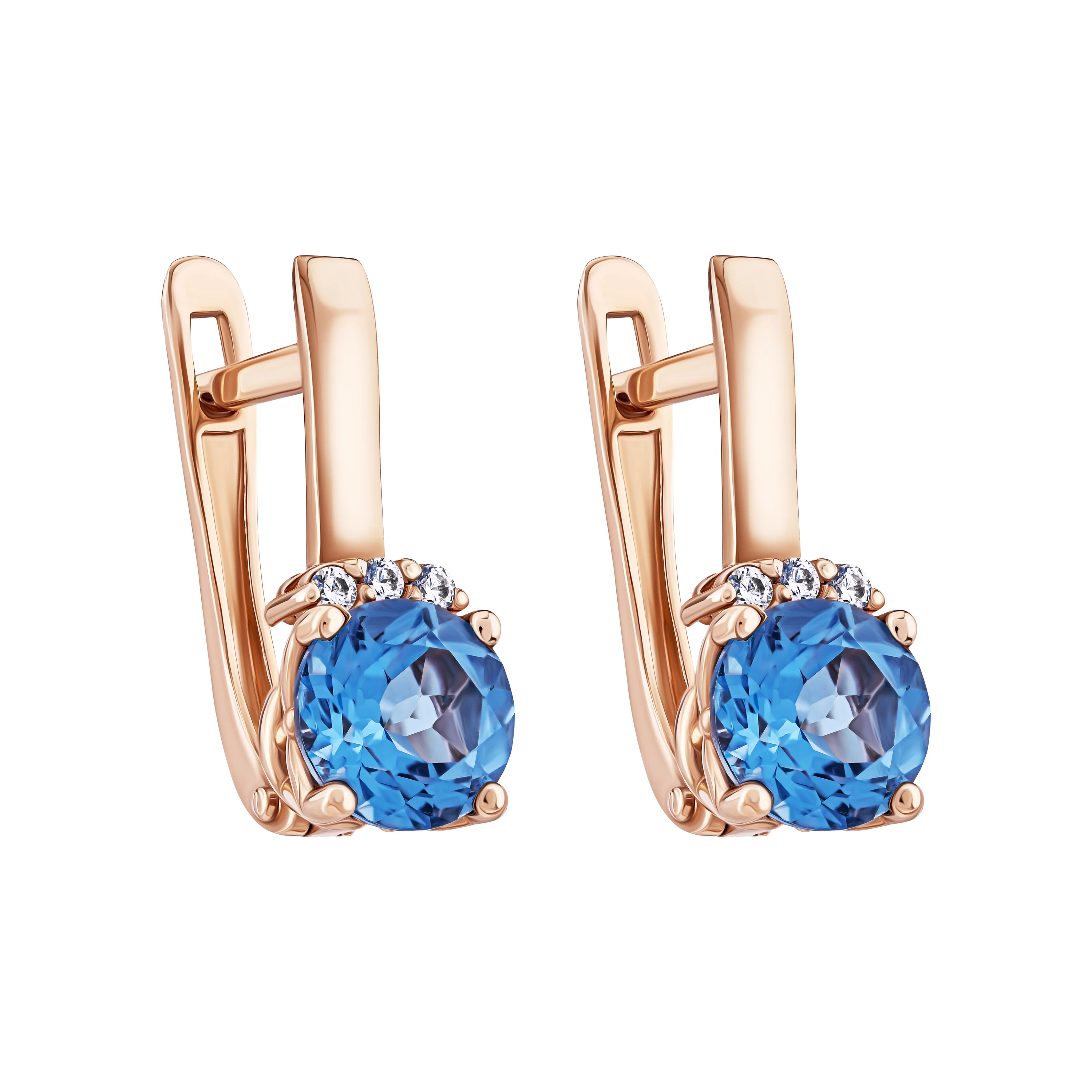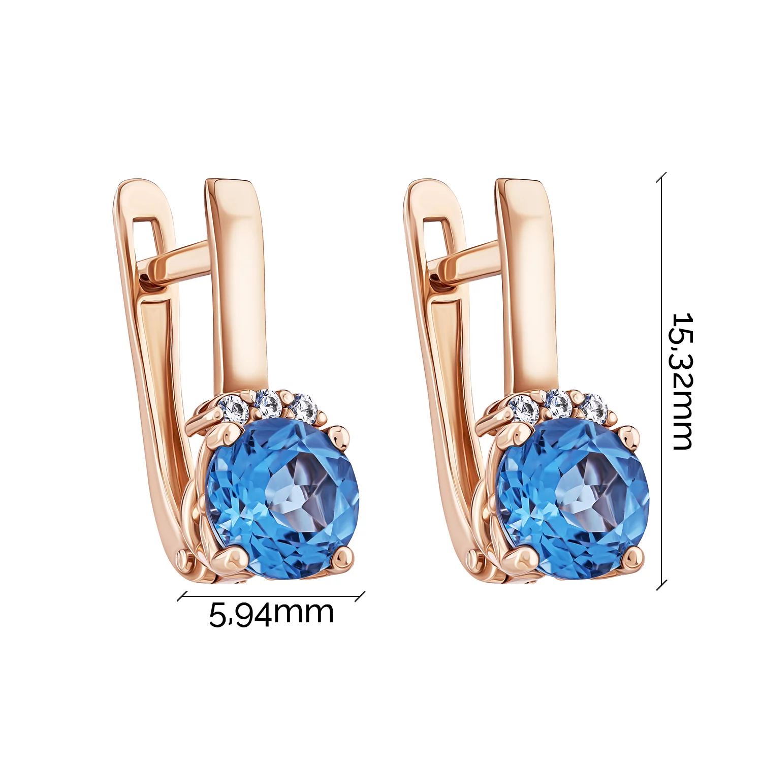 Элегантные сережки-гвоздики в красном золоте с топазом лондон и фианитами - 1872774
