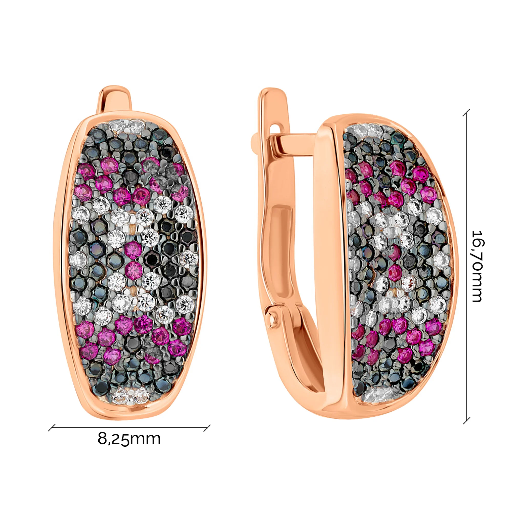 Сережки из красного золота "Орнамент" с фианитом - 1301251
