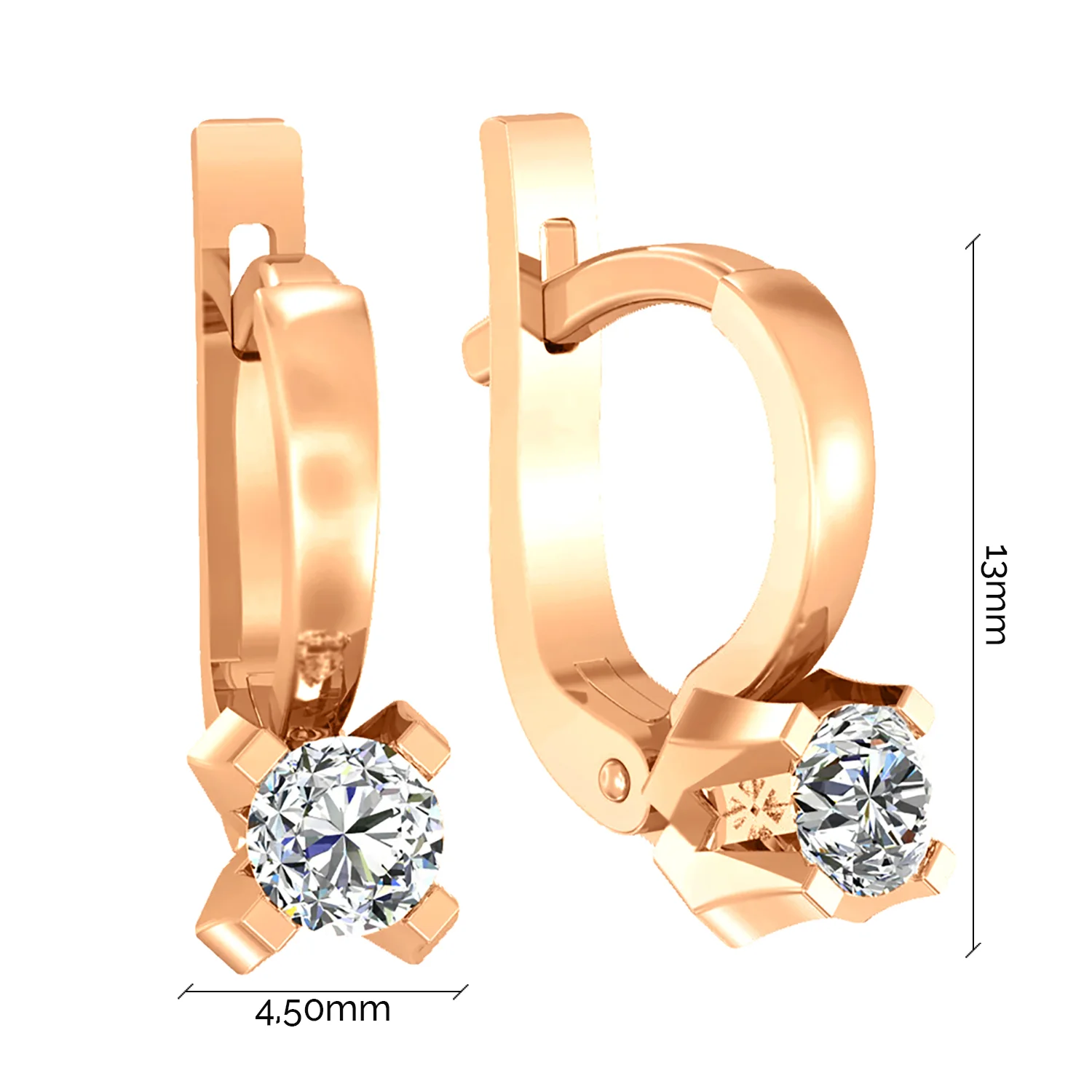 Сережки "Звездочка" с фианитами в красном золоте с подвесами - 1866957