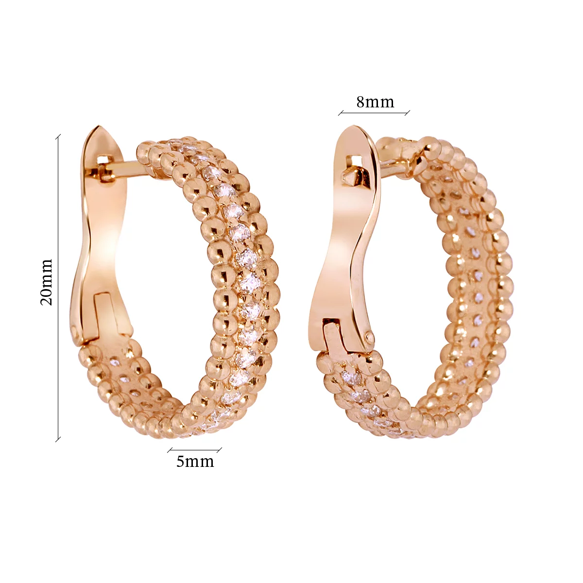 Сережки из красного золота с фианитом - 952544