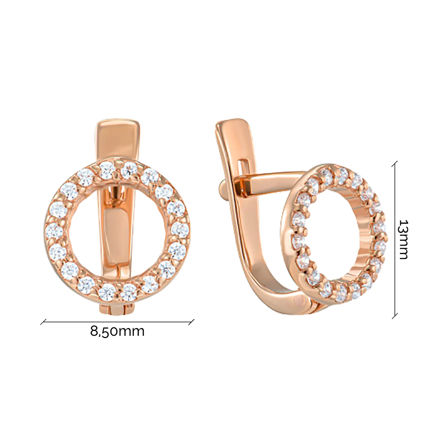 Стильные сережки-пусеты "Круг" в красном золоте с эмалью и фианитами - 1958570