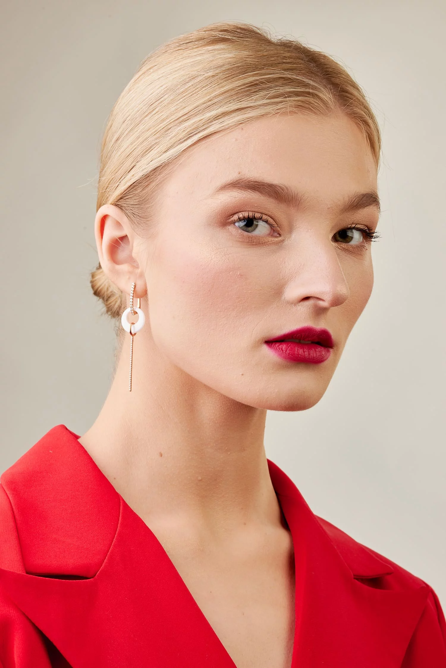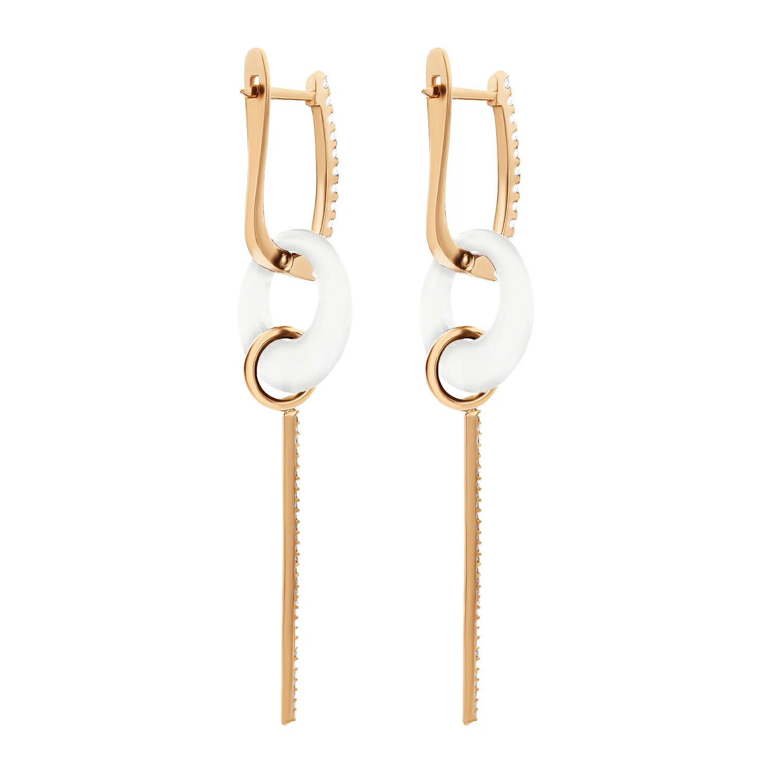 Стильные серьги с подвесами из красного золота со шпинелью и фианитами - 1919552