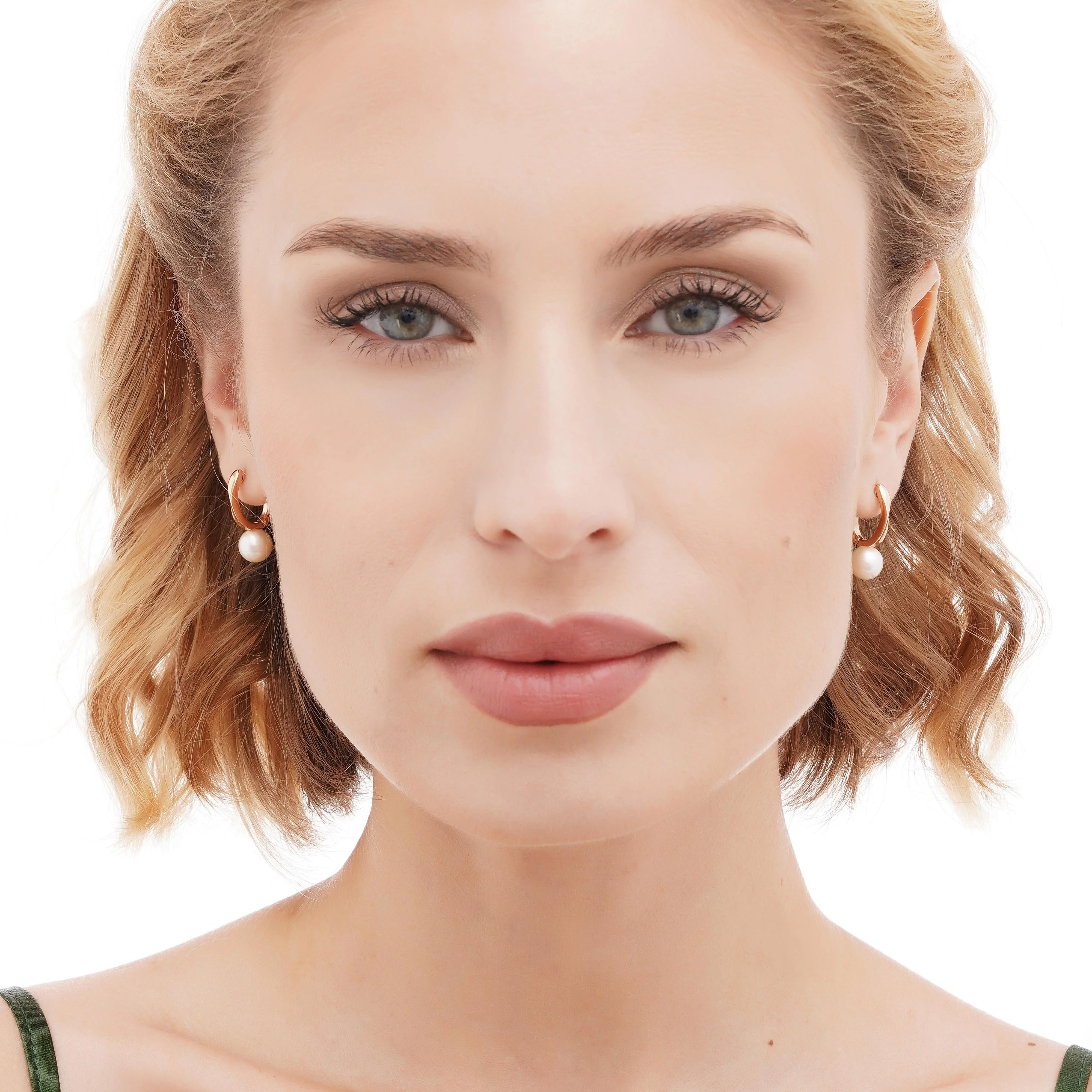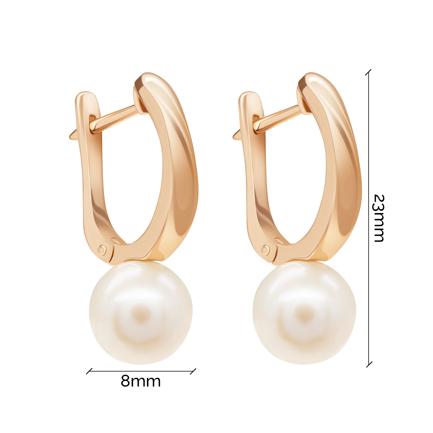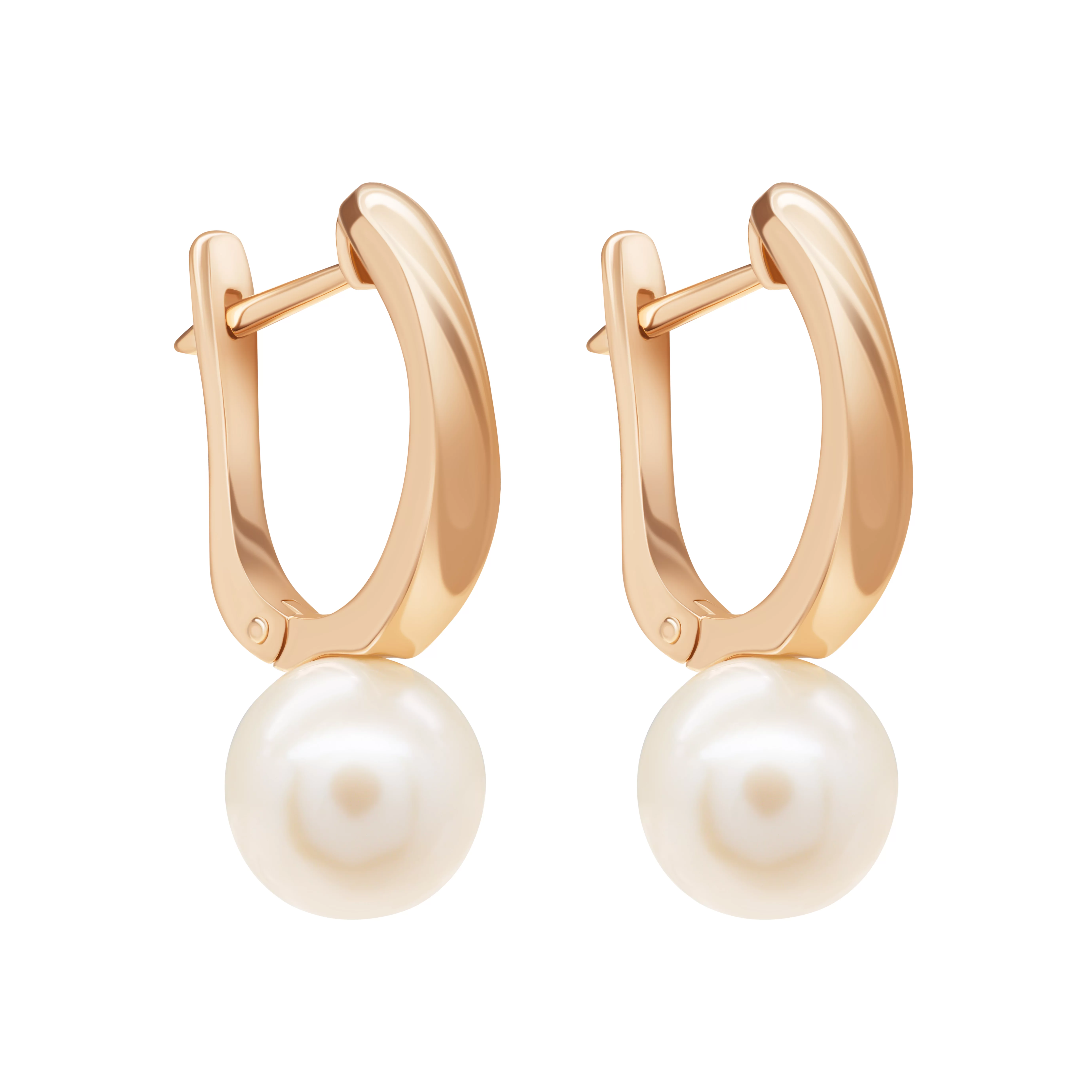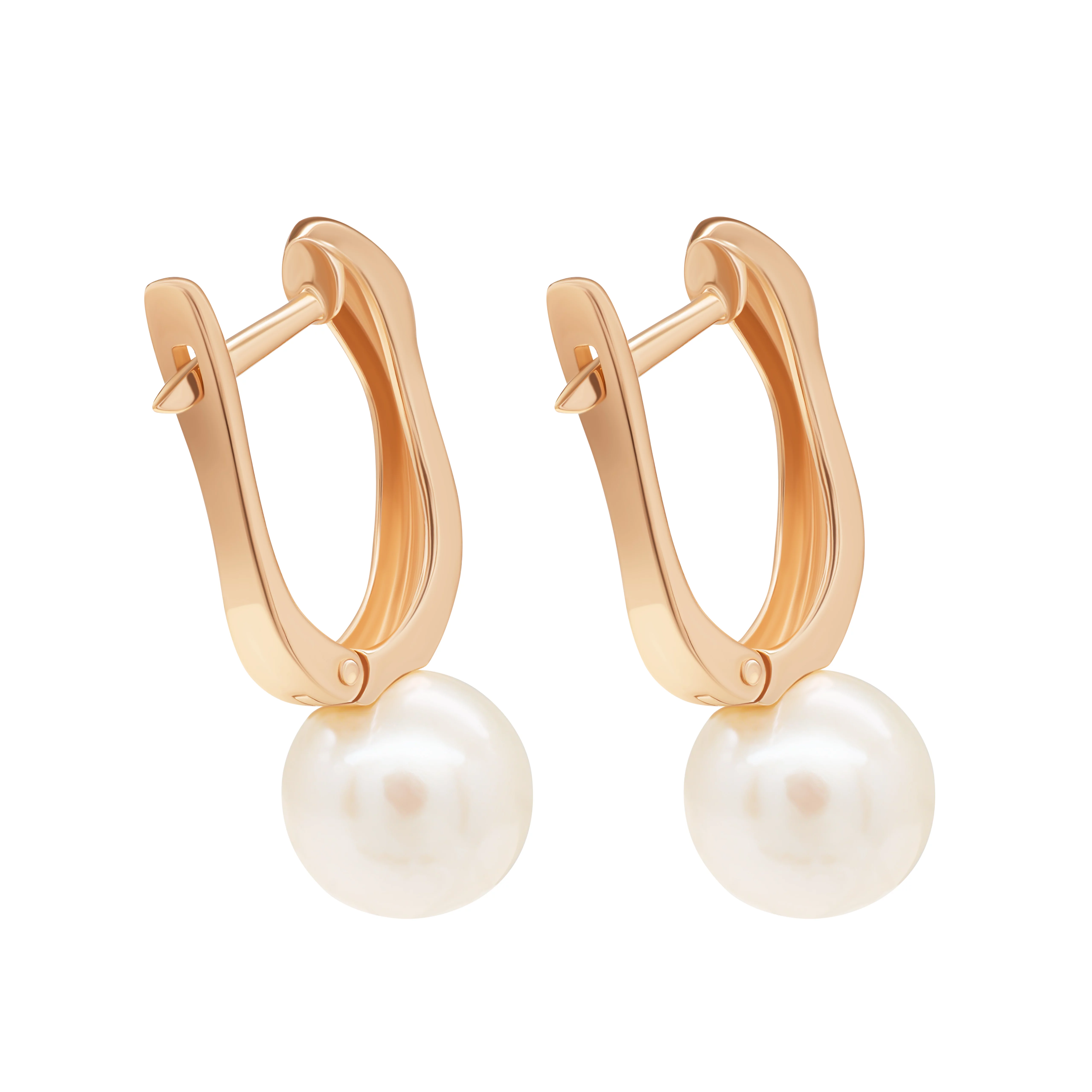 Сережки-гвоздики с жемчужиной и фианитами из красного золота - 1617638