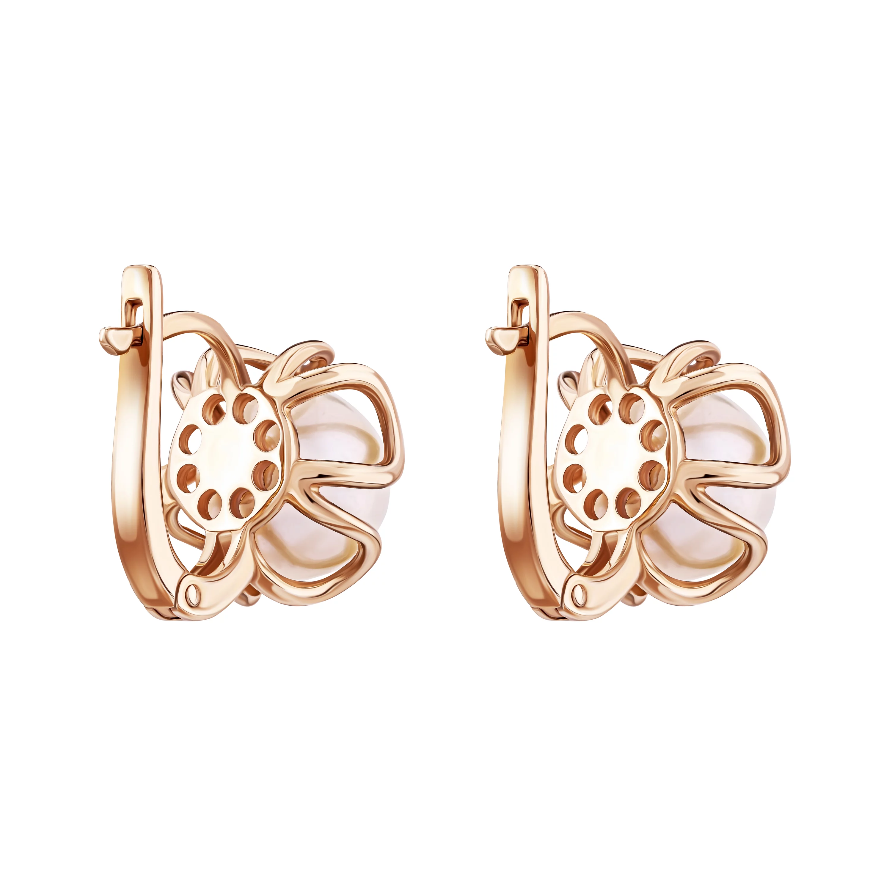 Сережки "Флора" в красном золоте с эмалью, жемчугом и фианитами - 1927692
