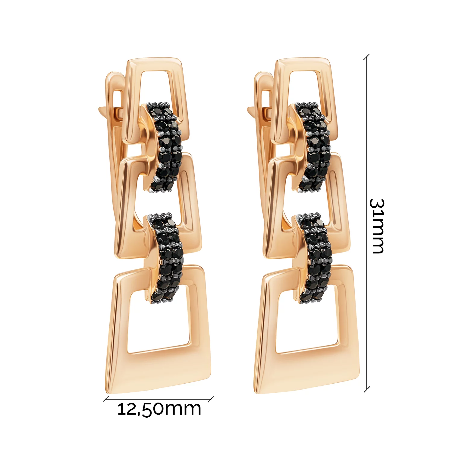 Стильные сережки "Квадраты" из красного золота с дорожкой из фианитов - 1876985