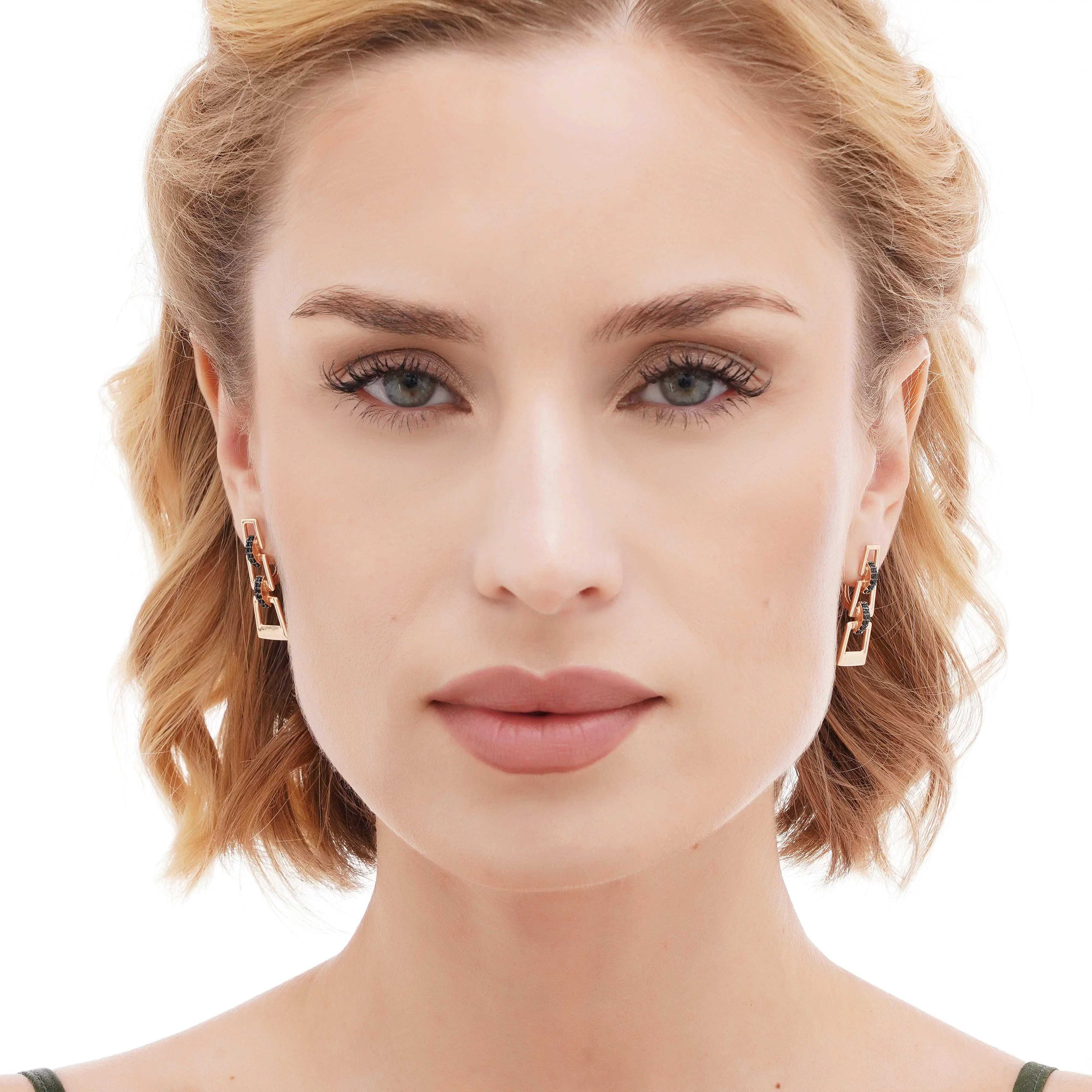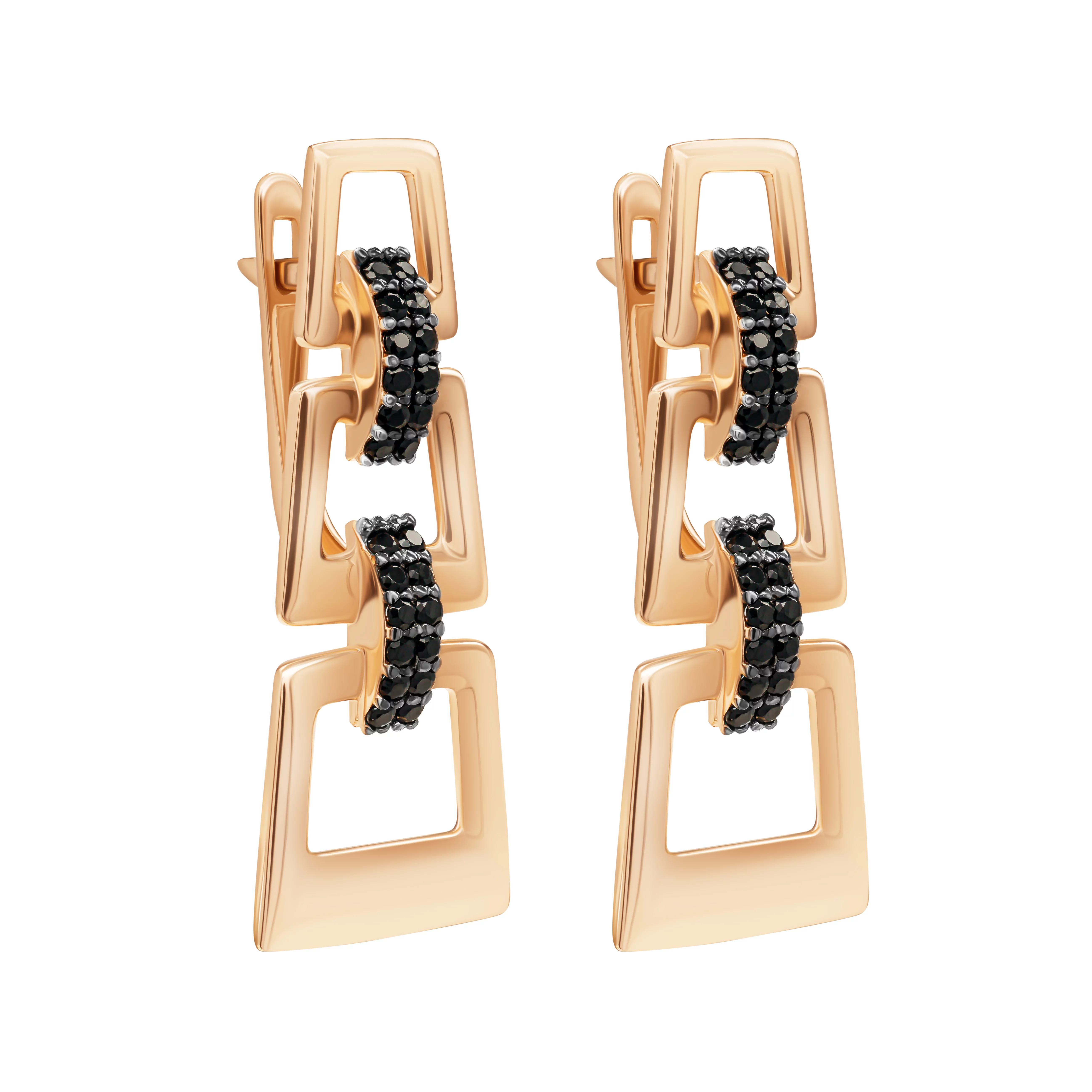 Сережки из красного золота в геометрическом стиле с фианитами - 1877892