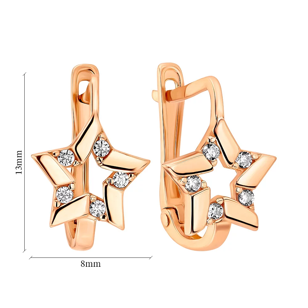 Серьги из красного золота с подвесами, эмалью и фианитами "Цветок" - 1737426