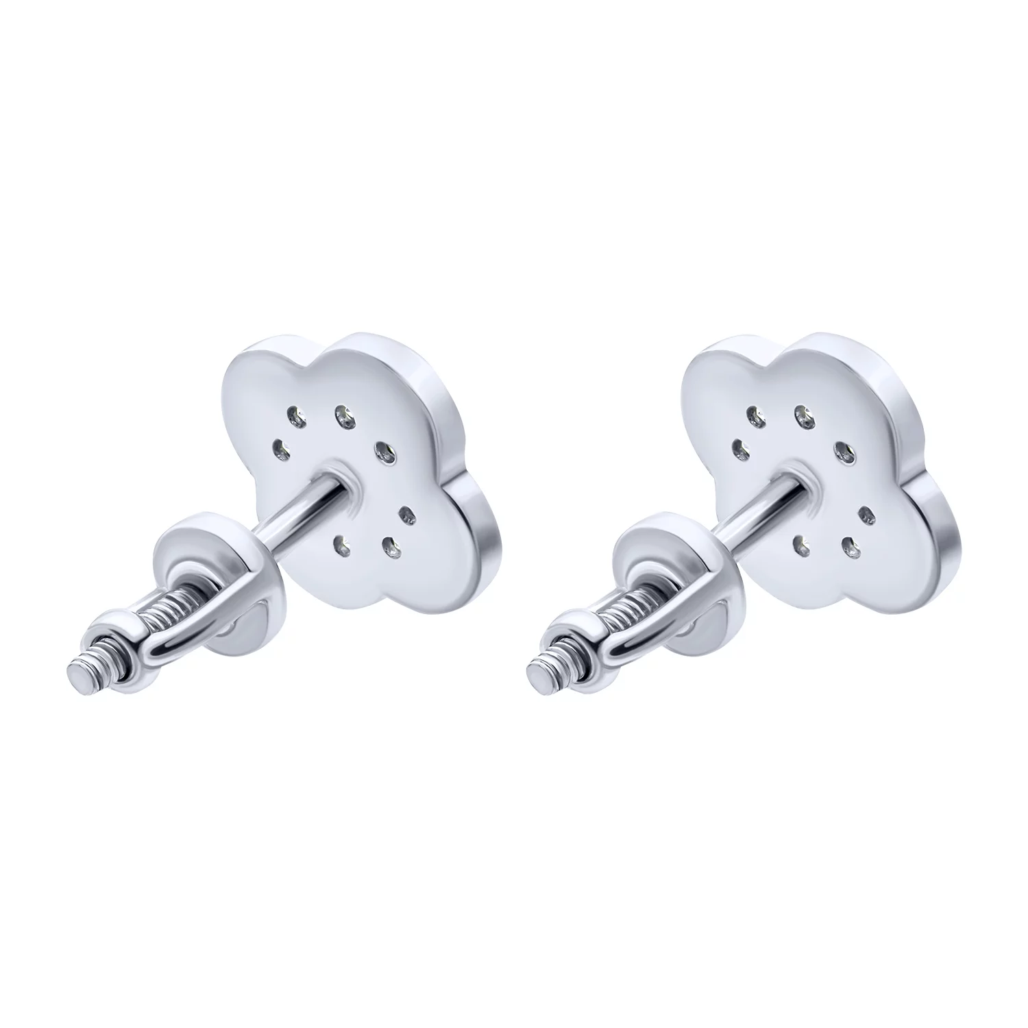 Серебряные стильные сережки-пусеты "Клевер" с ониксом и фианитами - 1940309