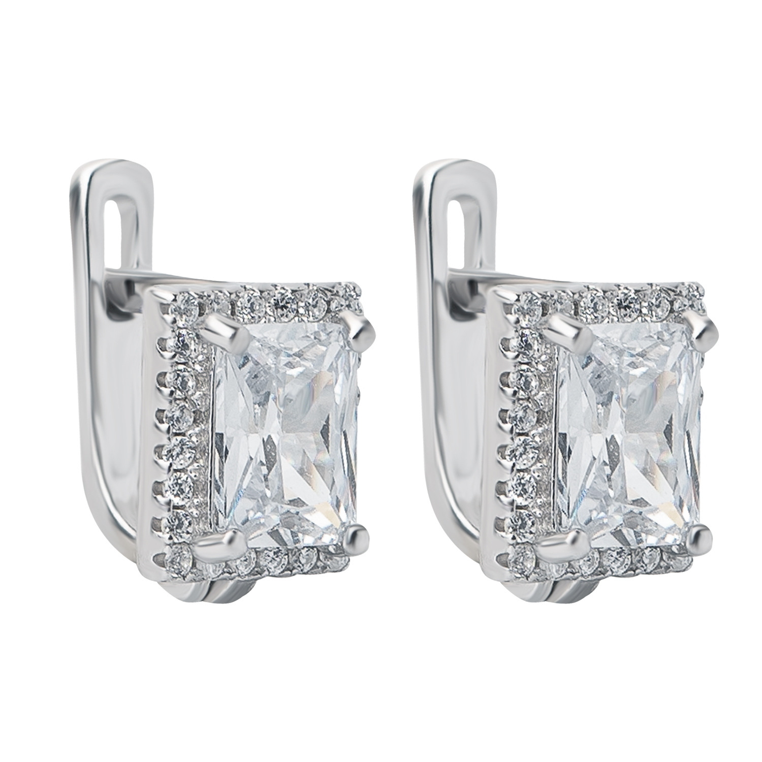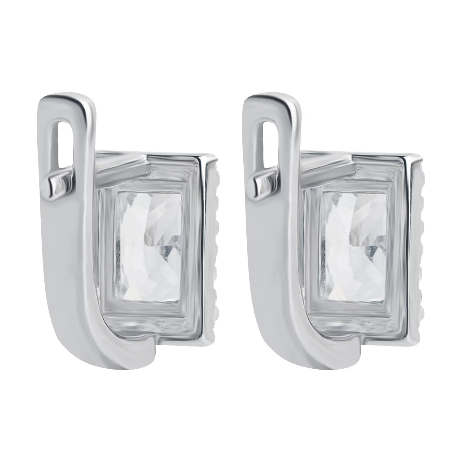 Сережки из серебра с фианитами "Квадрат" - 1426985