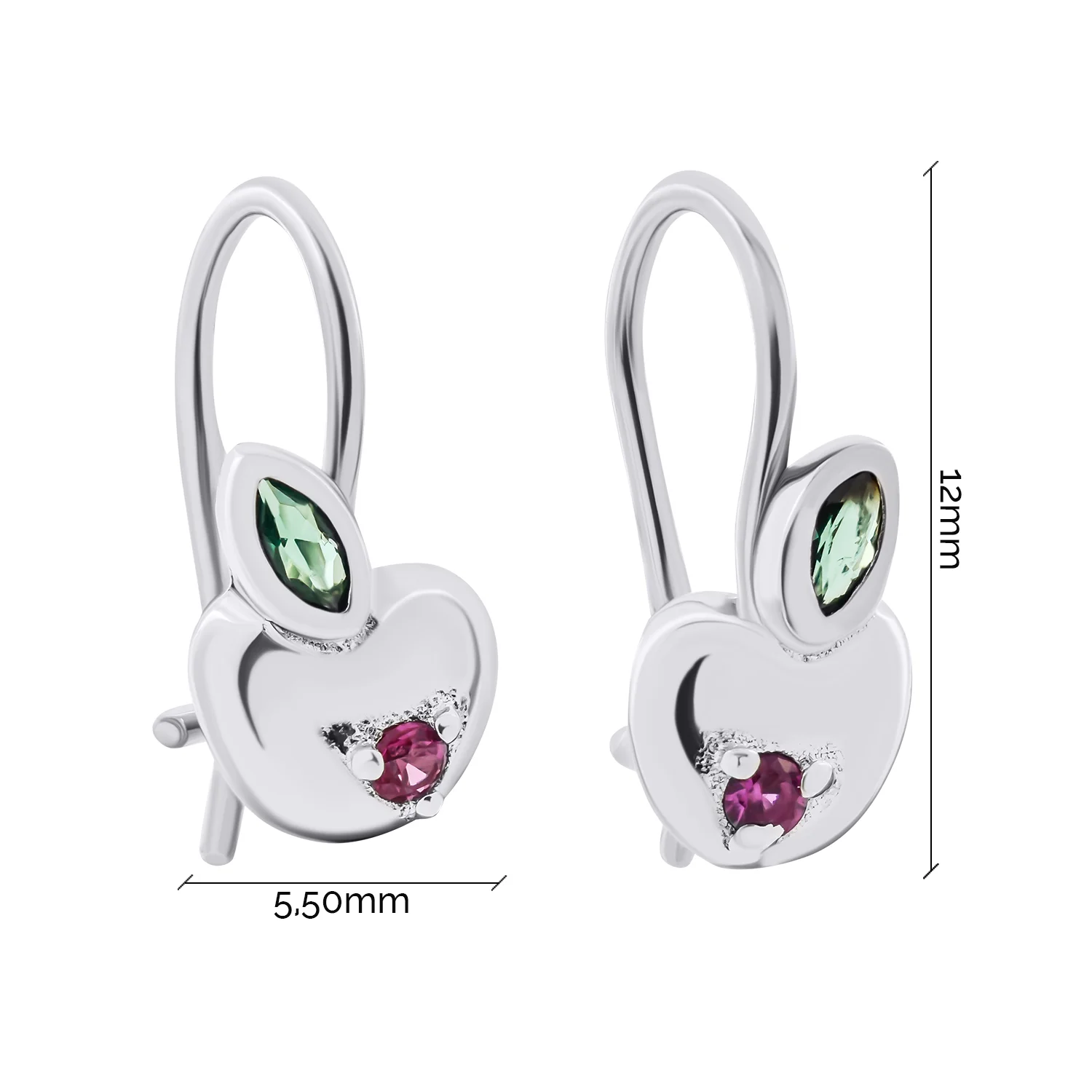 Сережки из серебра "Яблоко" с фианитами - 1503948