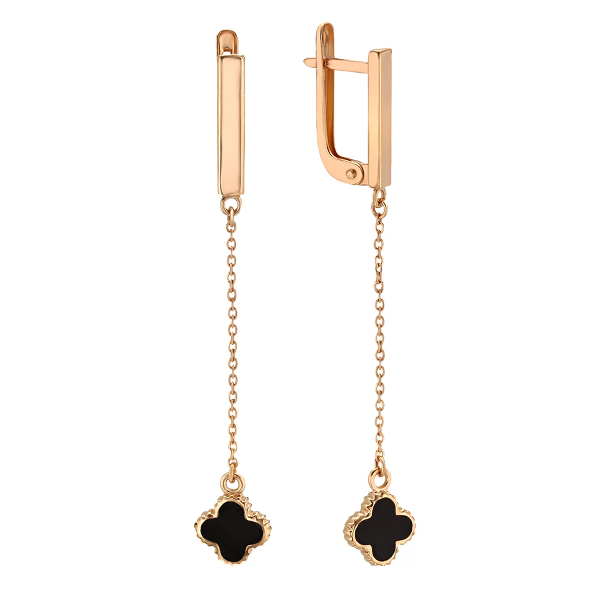 Сережки Клевер из красного золота с подвесами и эмалью - 965278