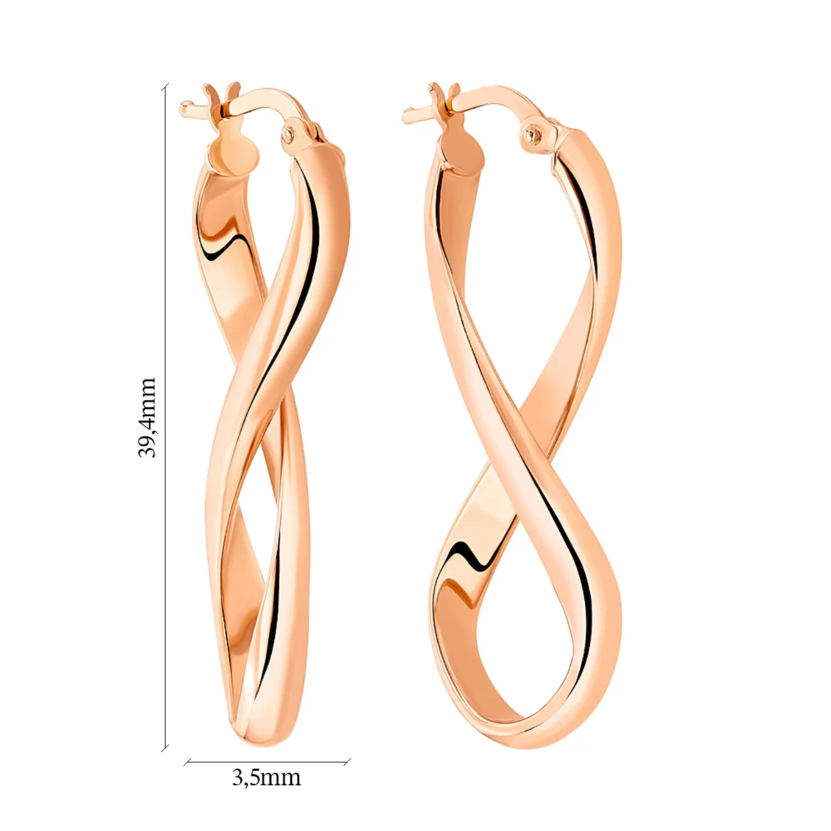 Сережки-кольца "Бесконечность" из красного золота - 1350421
