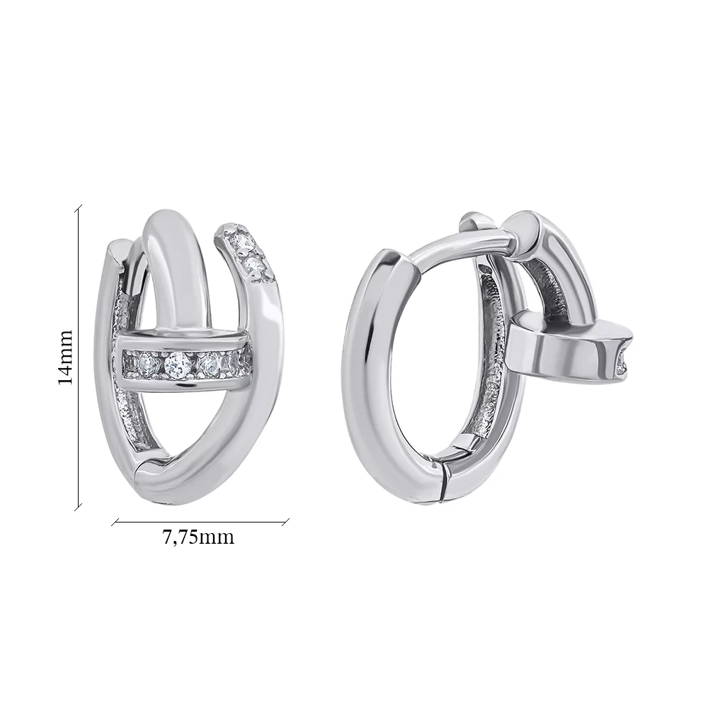 Сережки-кольца "Гвоздь" из серебра с фианитами - 1343427