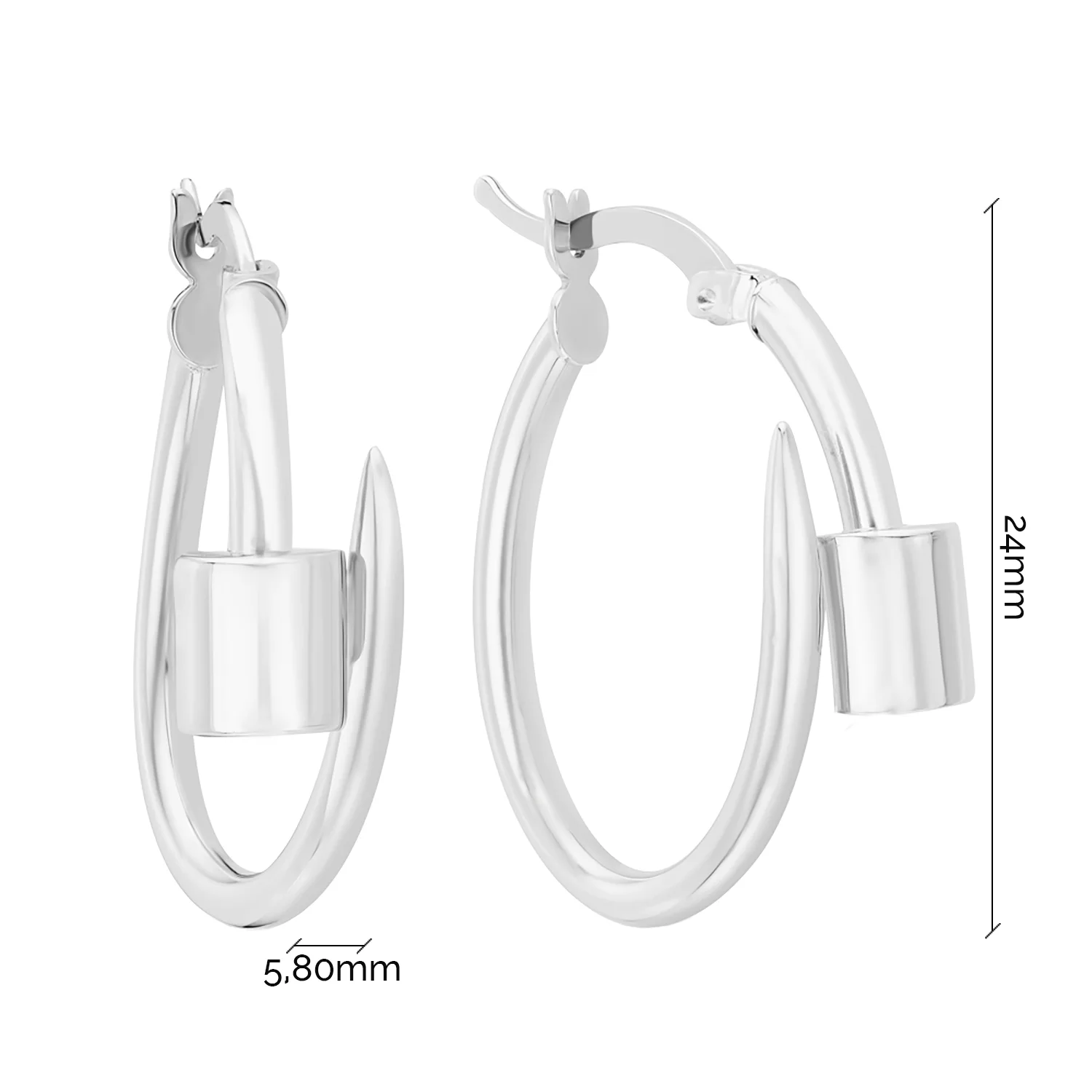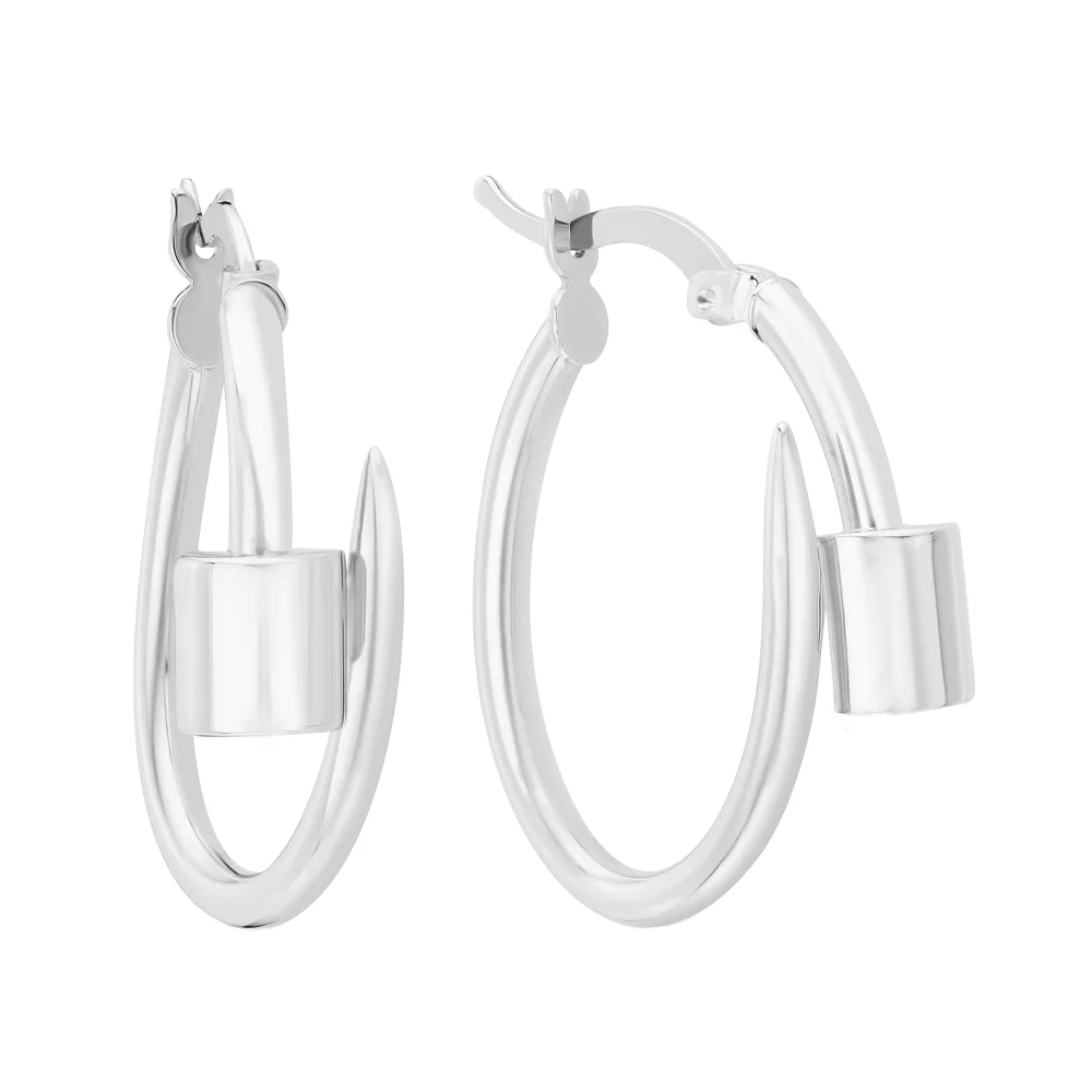 Сережки-кольца из белого золота "Гвоздь" - 1343383