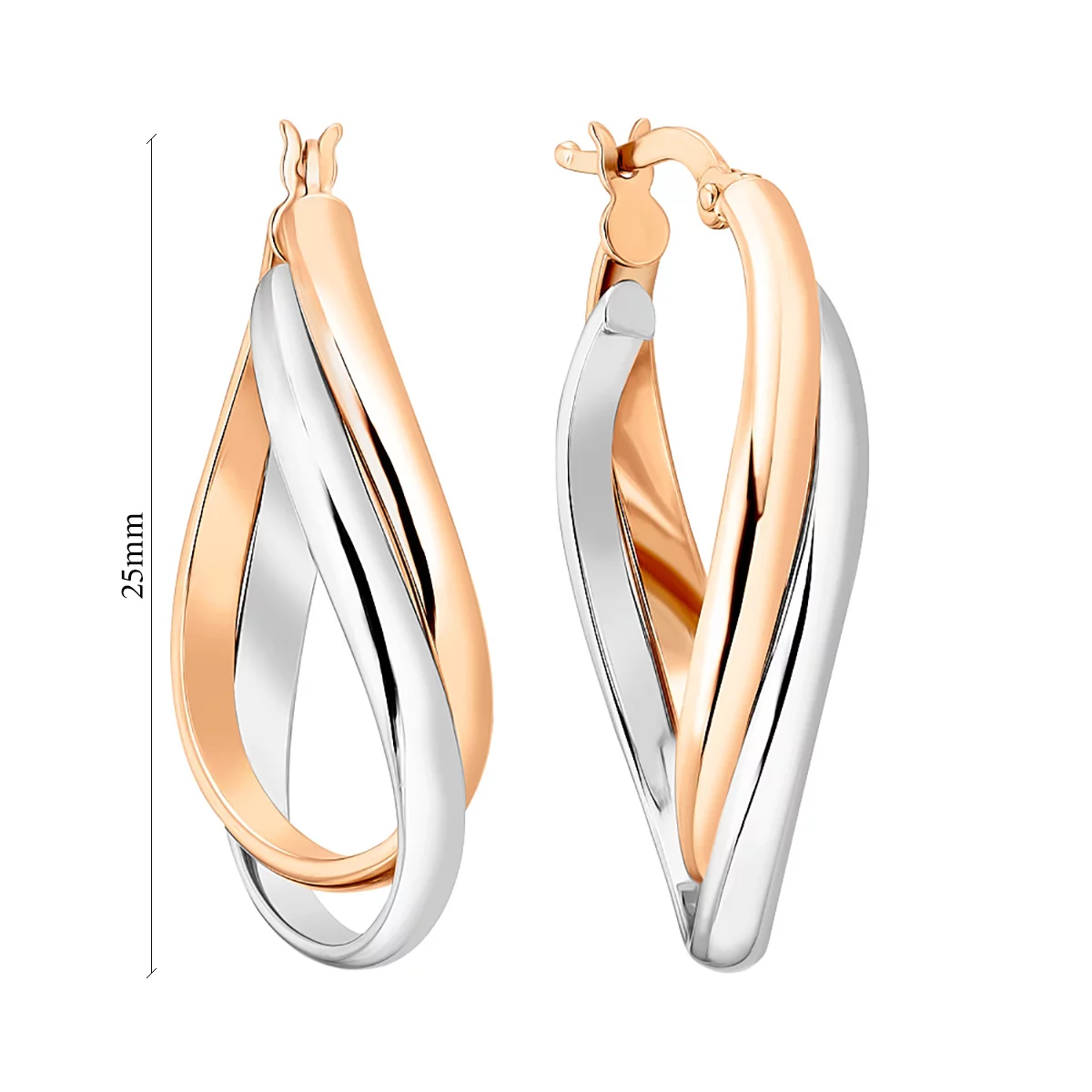 Сережки-кольца с подвесом из красного золота с рельефной текстурой - 1856422