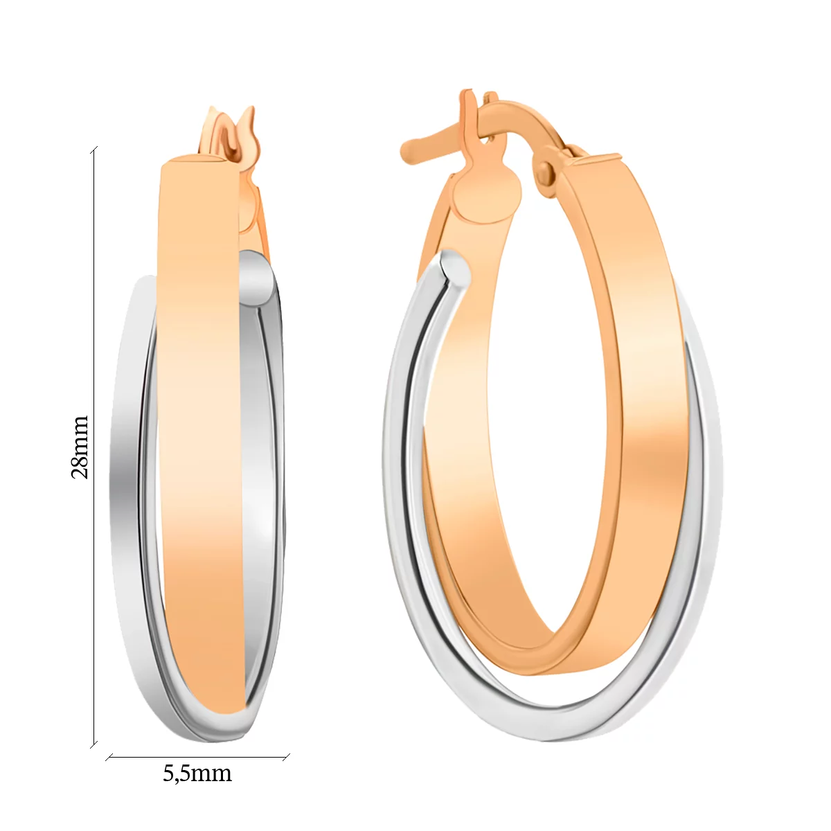 Стильные сережки-кольца в комбинированном золоте с алмазной гранью - 1877791