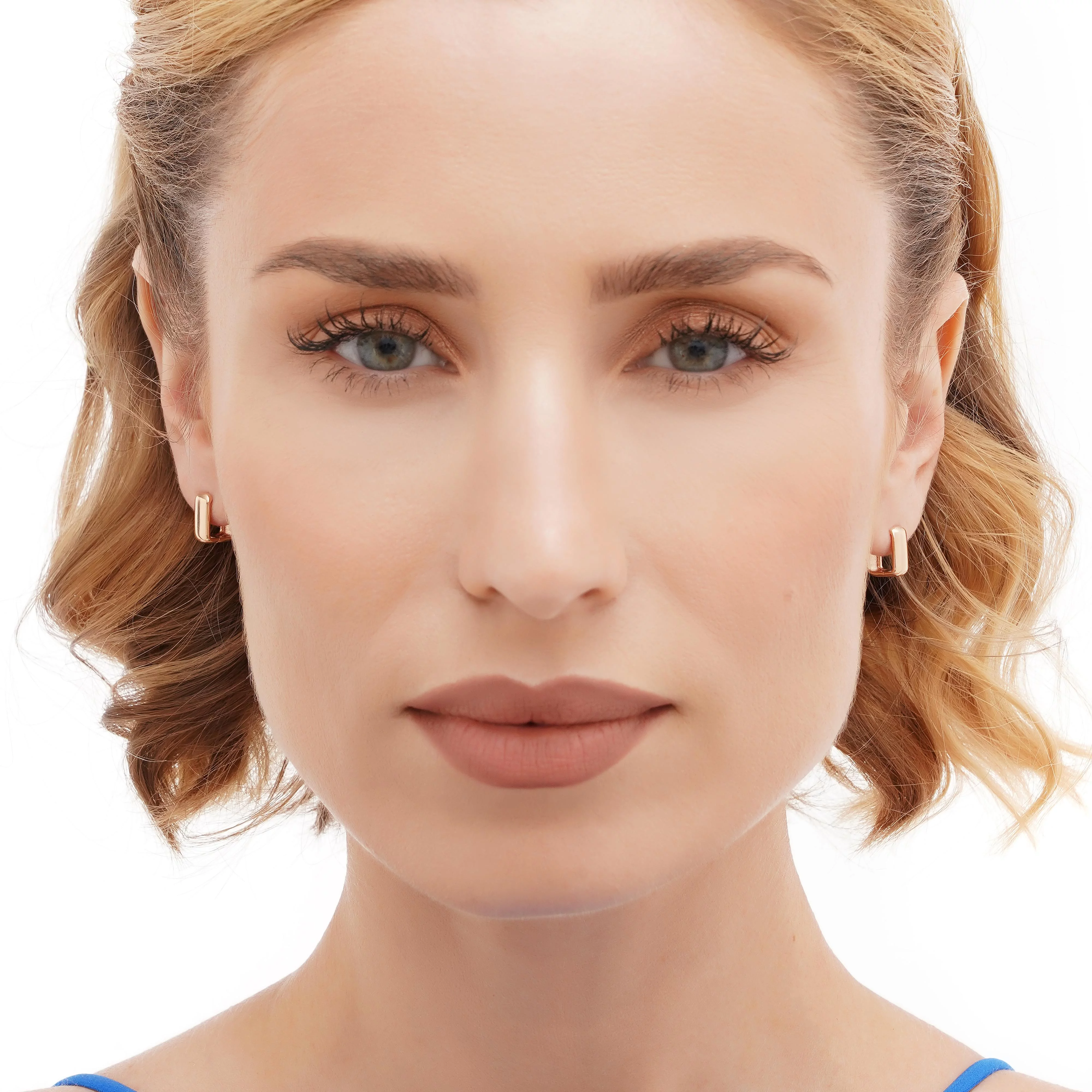Классические сережки-кольца из красного золота с алмазной гранью - 1872987
