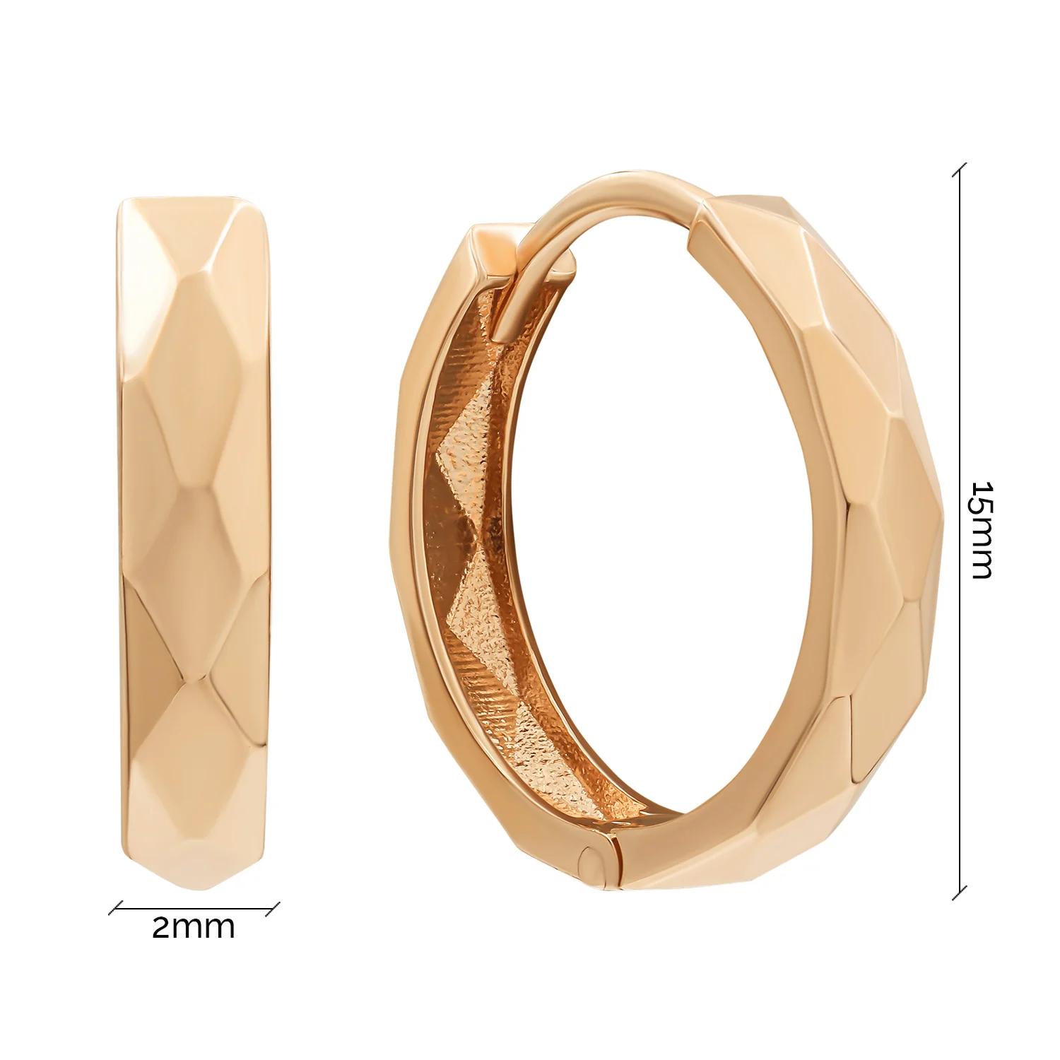 Элегантные сережки-кольца в красном золоте с алмазной гранью - 1924911
