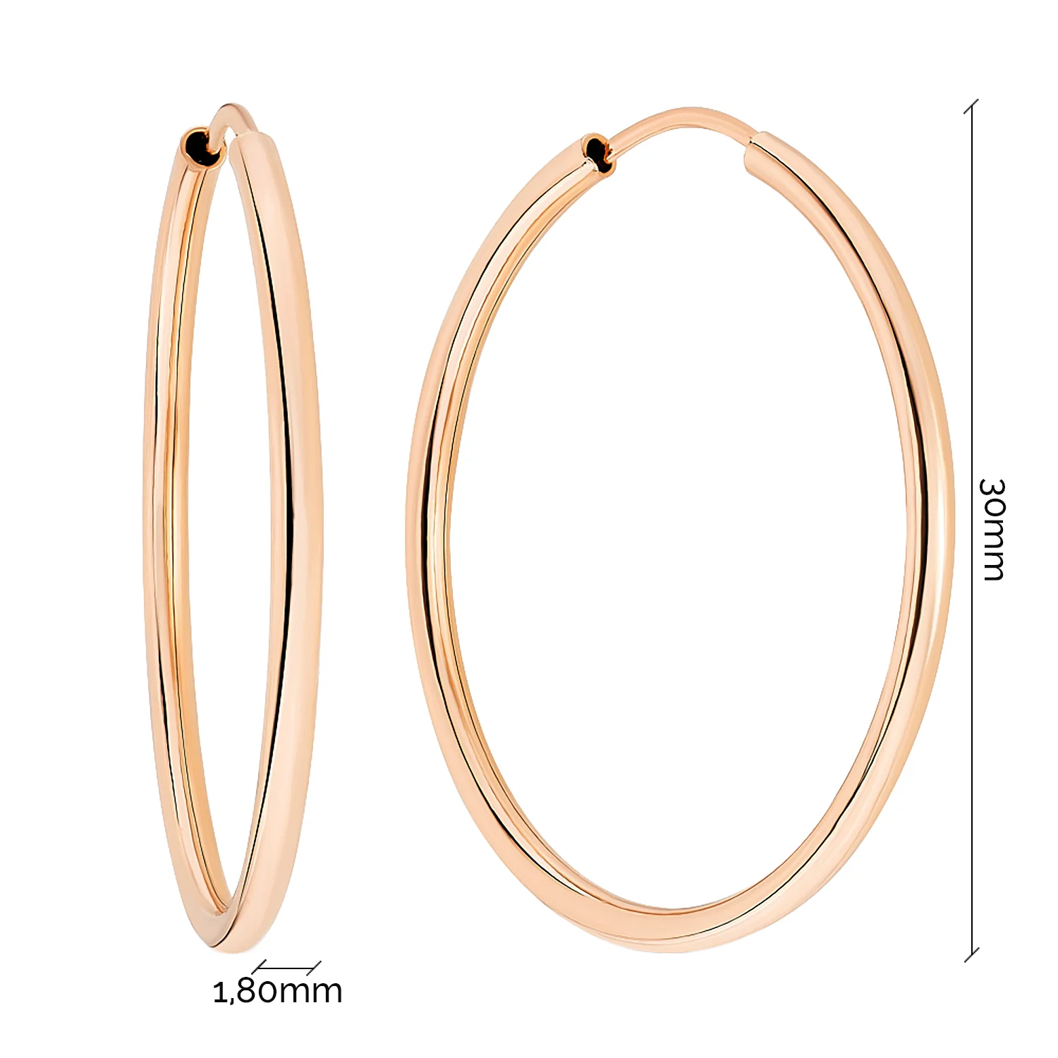 Классические сережки-кольца из красного золота с алмазной гранью - 1872987