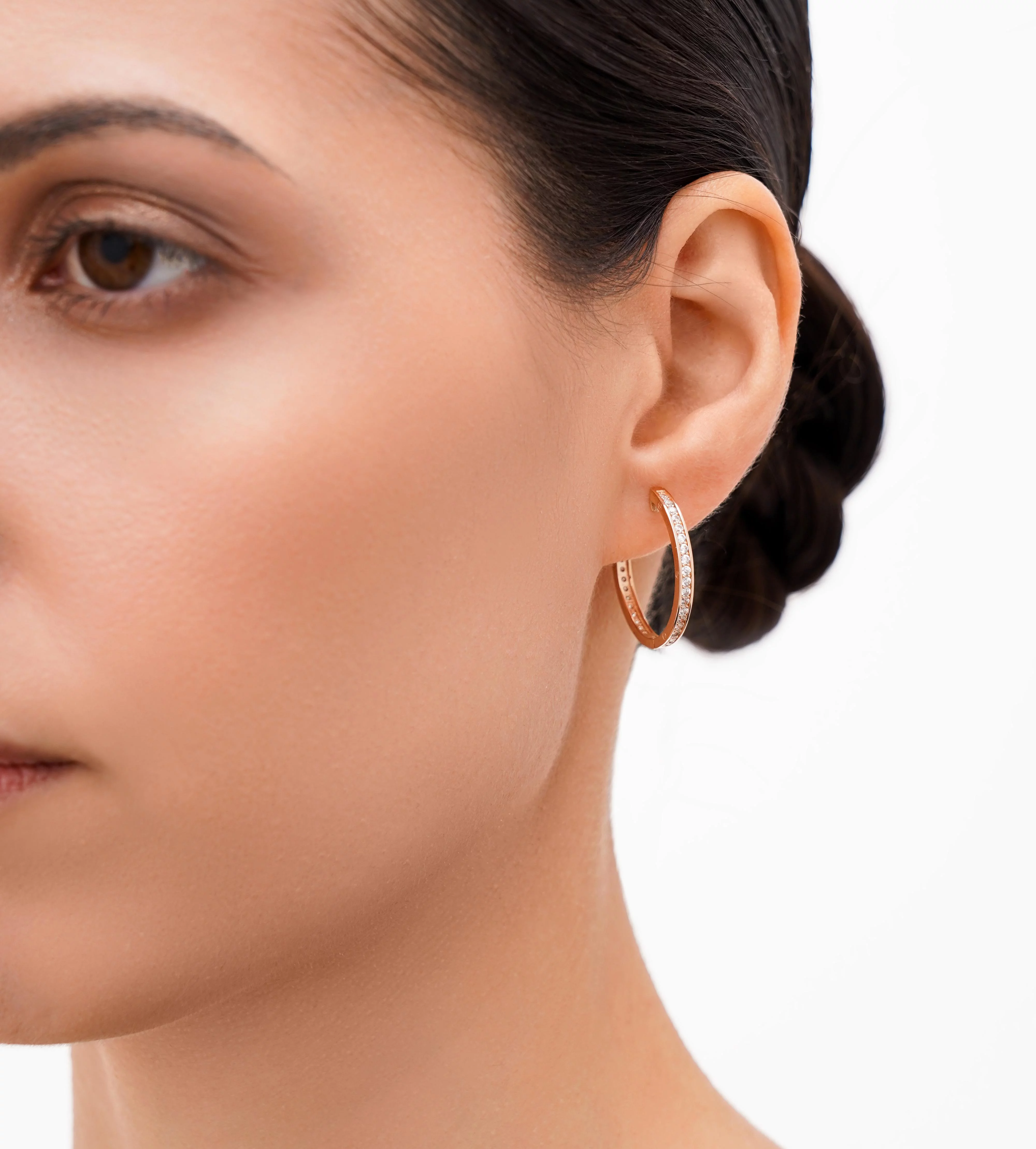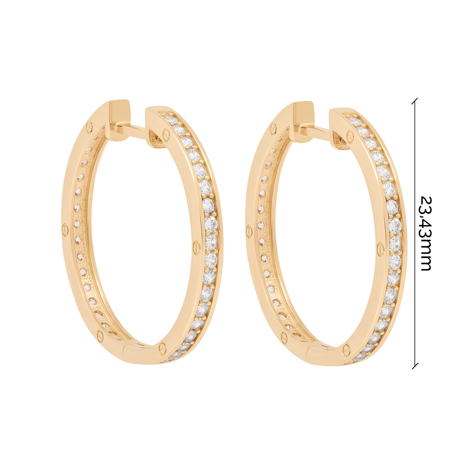 Сережки-кольца из красного золота с подвесами "Пантера" с фианитом - 1476753