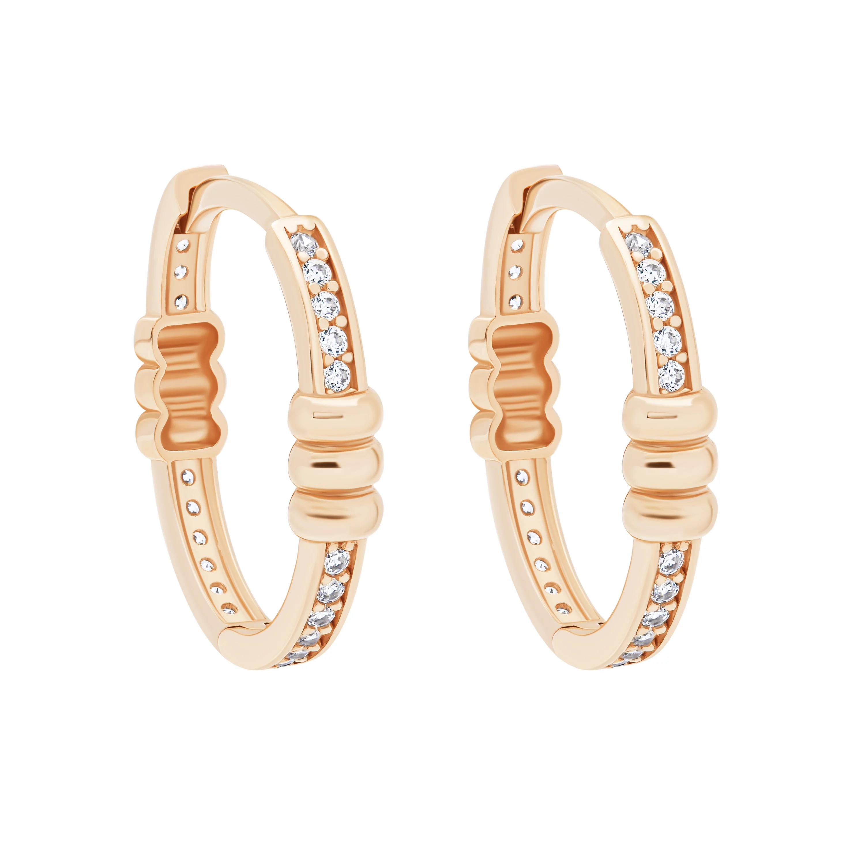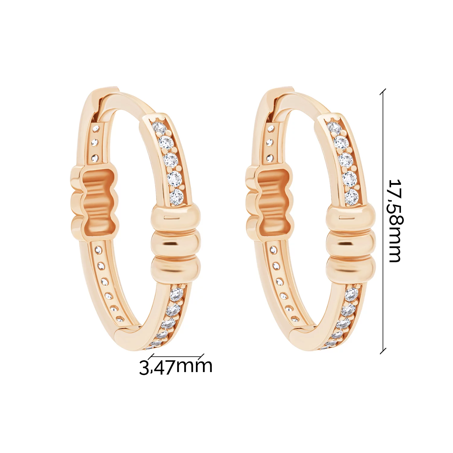 Сережки-кольца из красного золота с дорожкой фианитов - 1749660