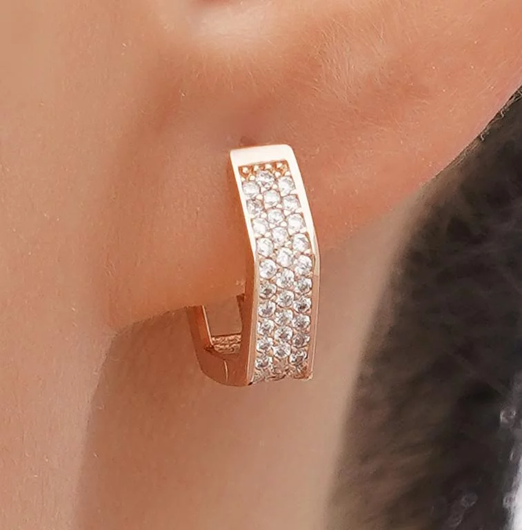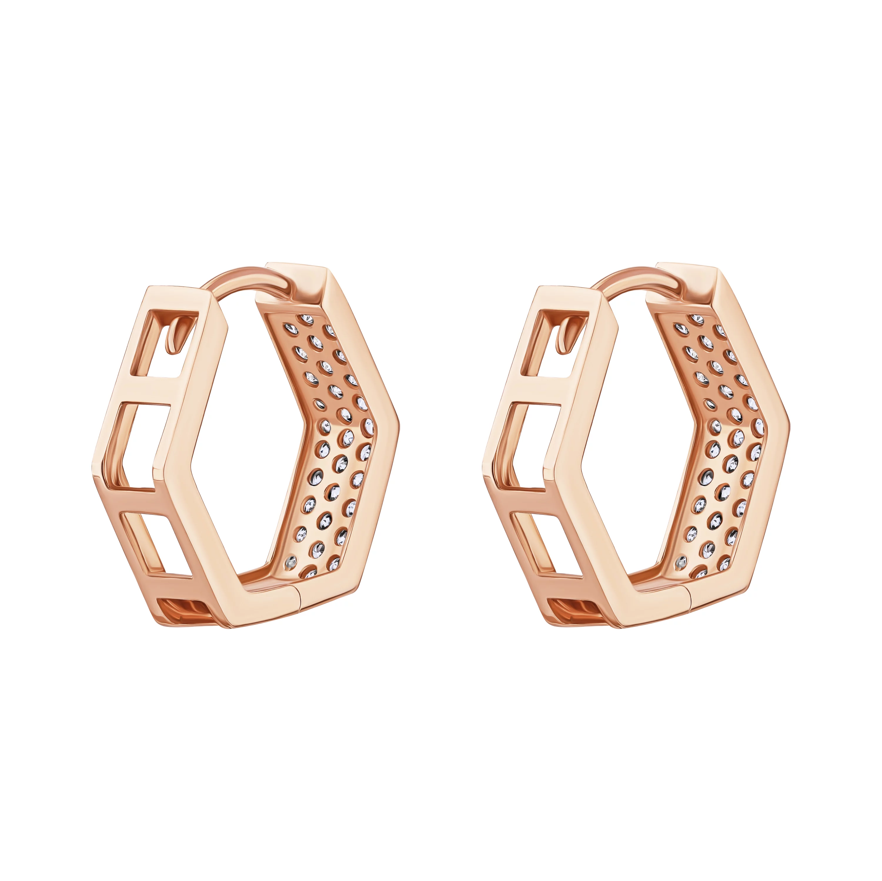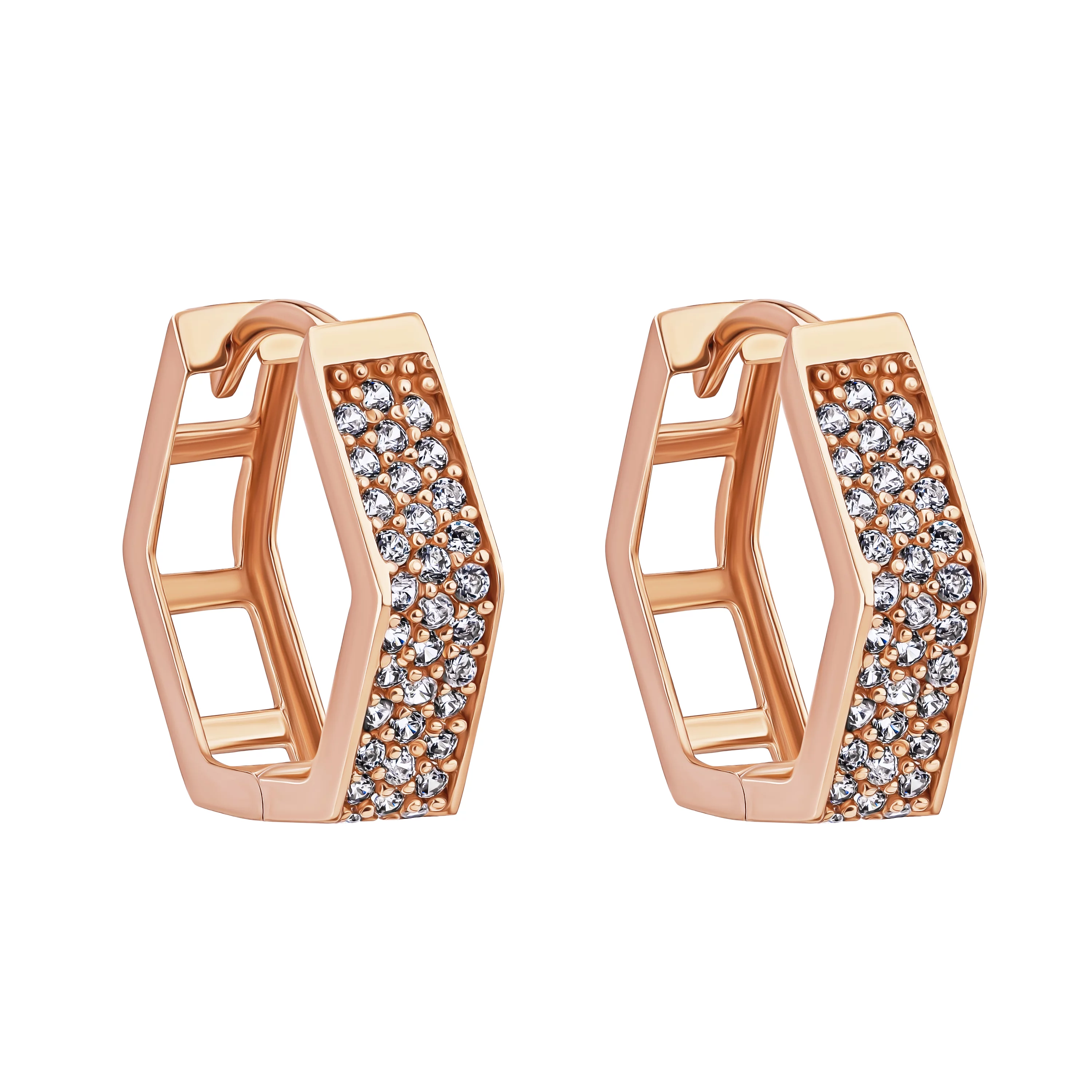 Сережки-кольца из красного золота с фианитами - 1689923