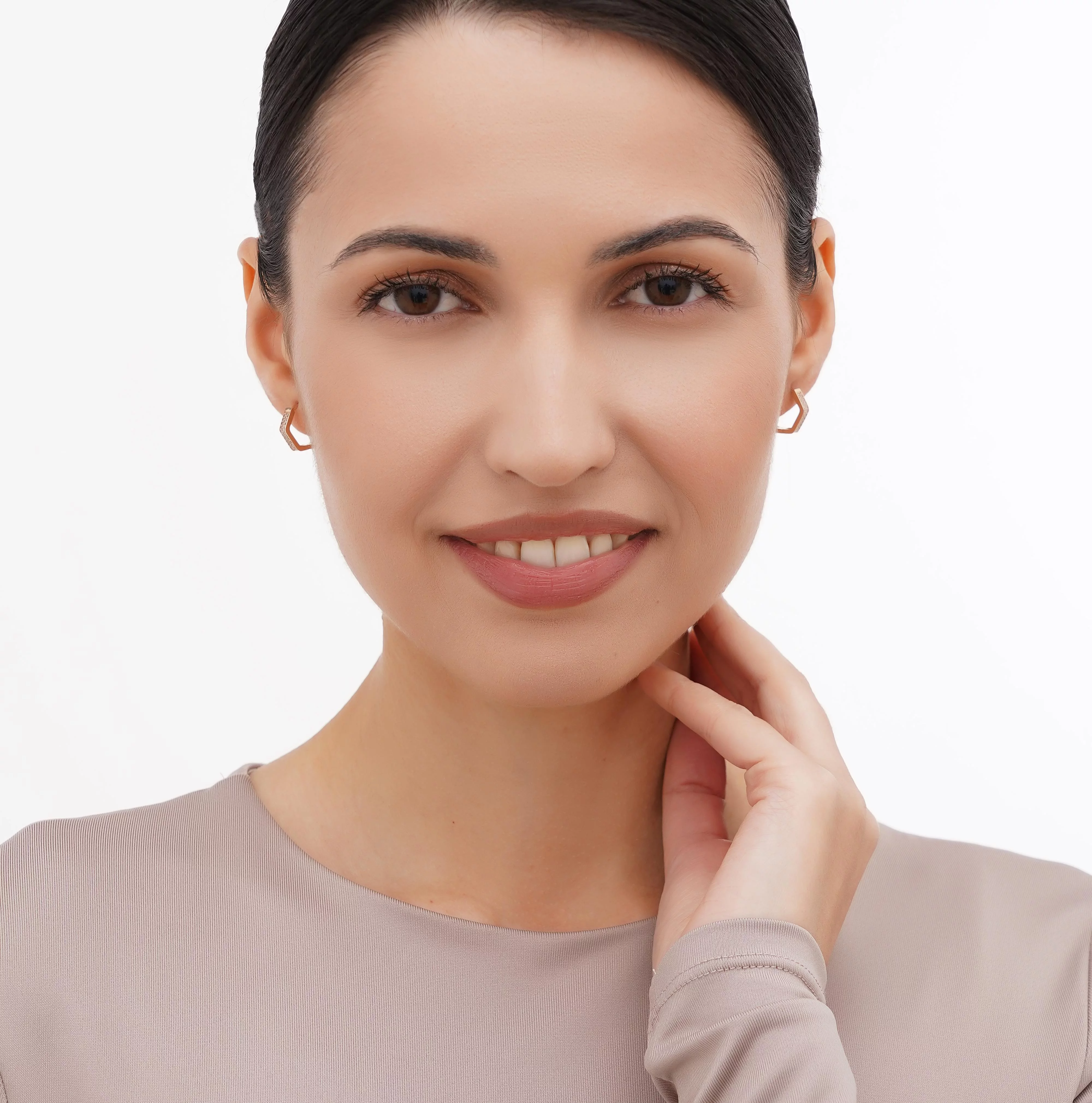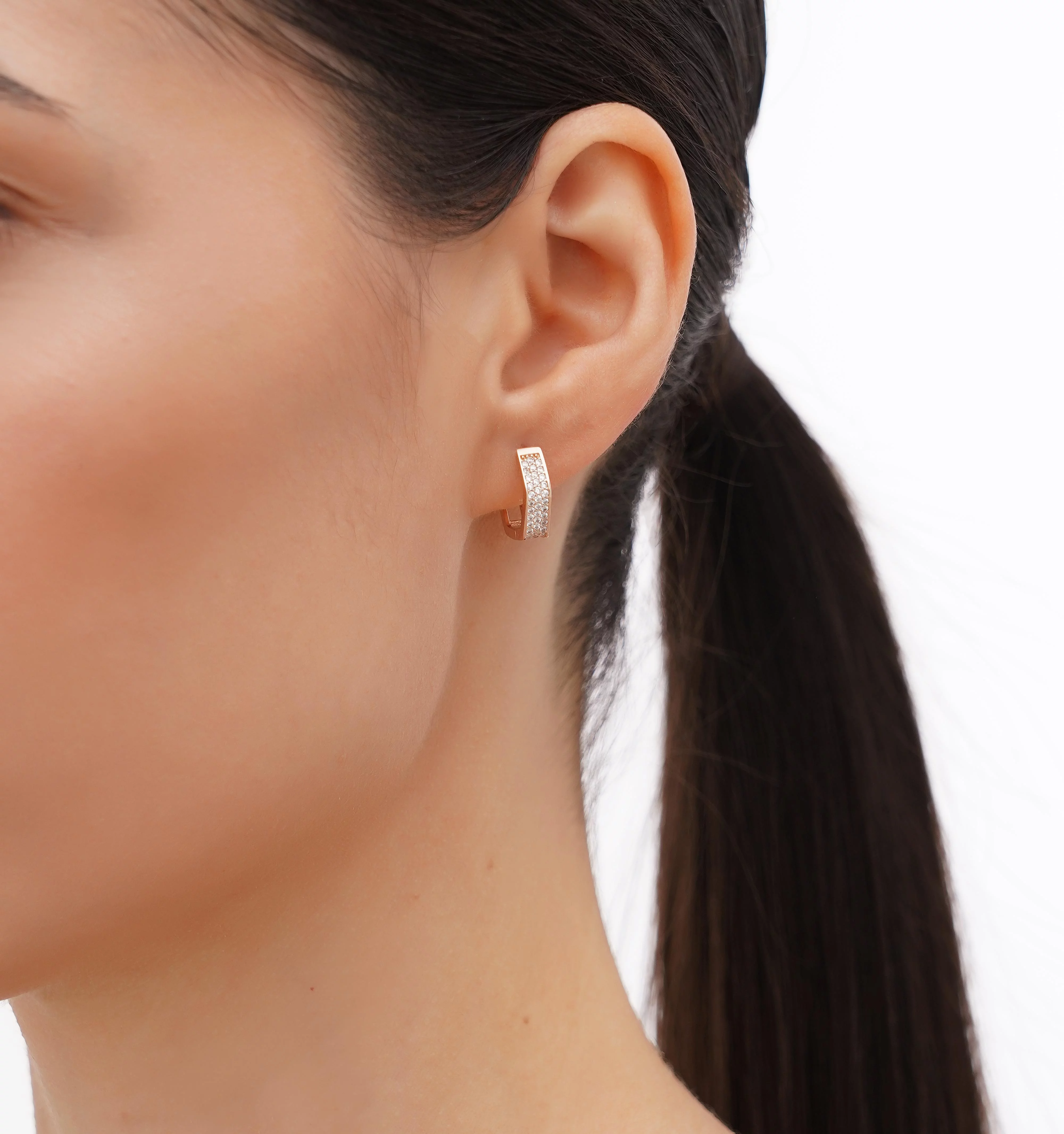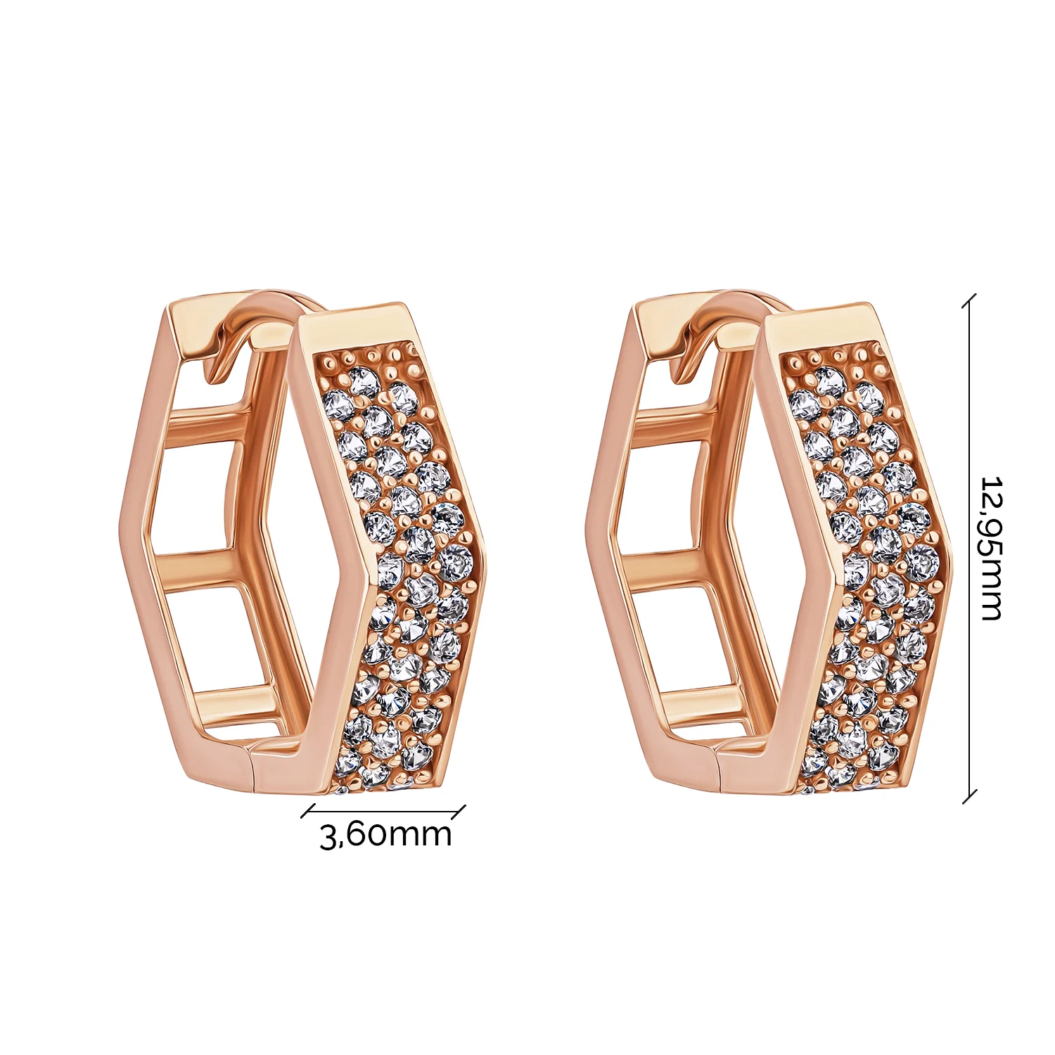 Сережки-кольца из красного золота с фианитами - 1689923