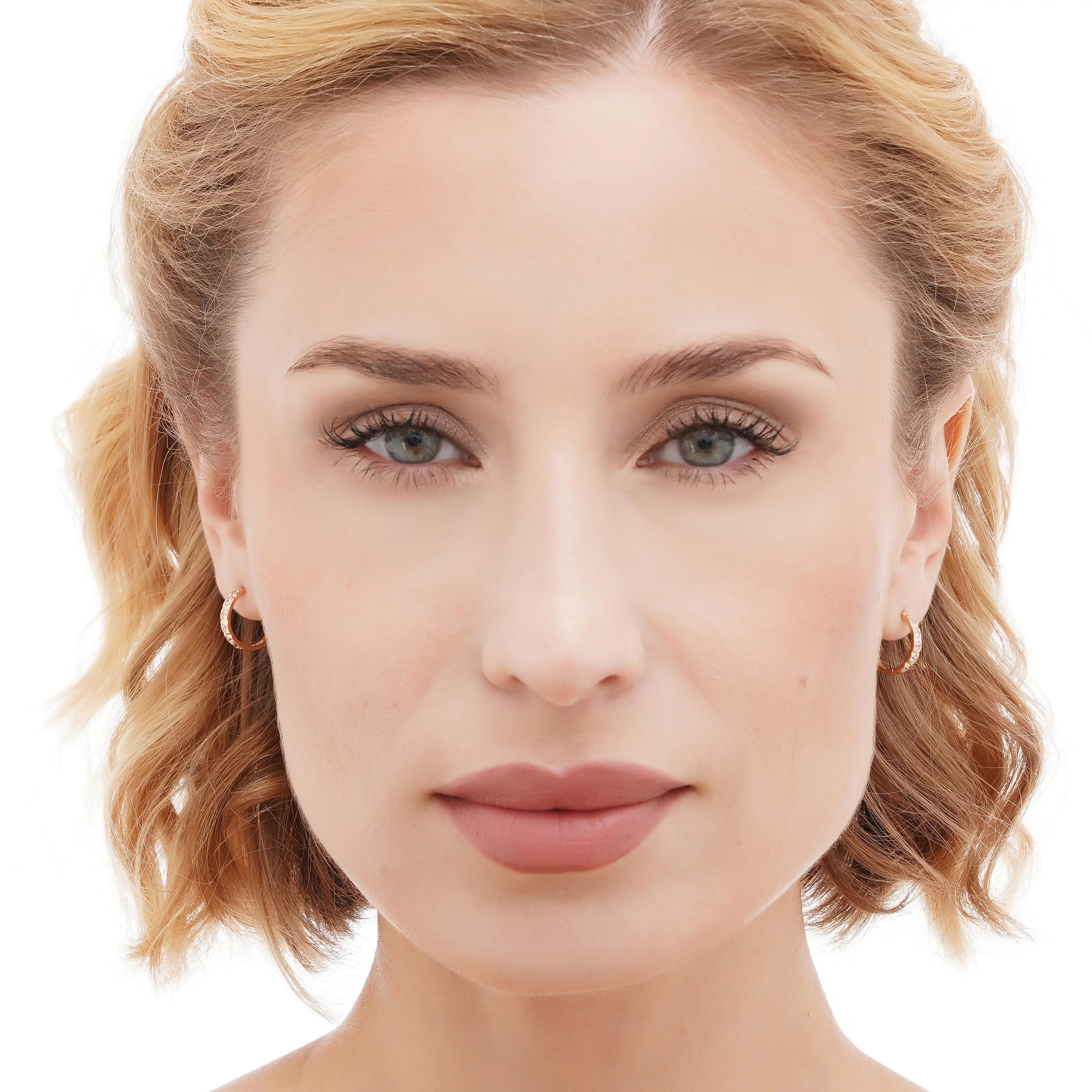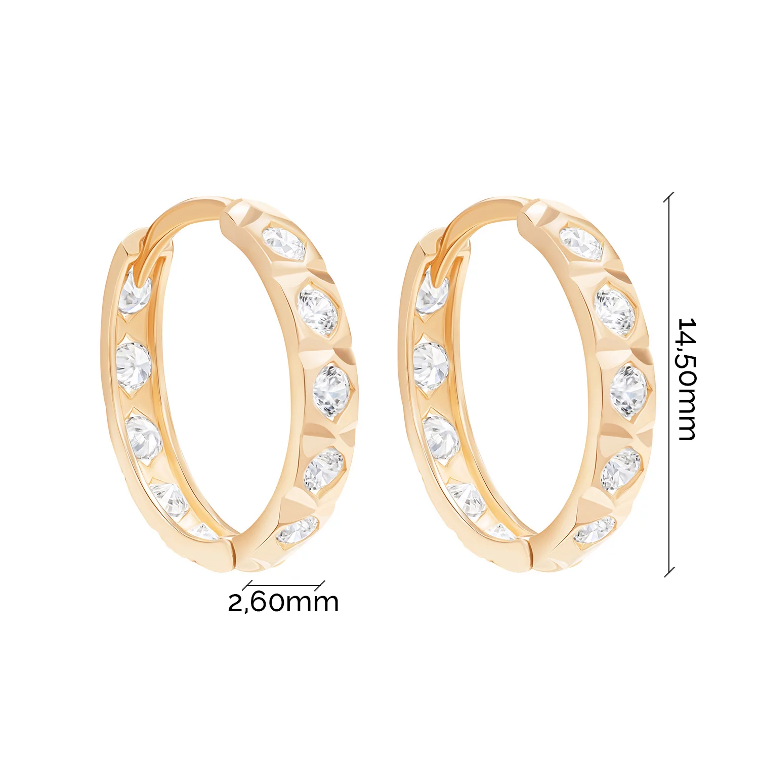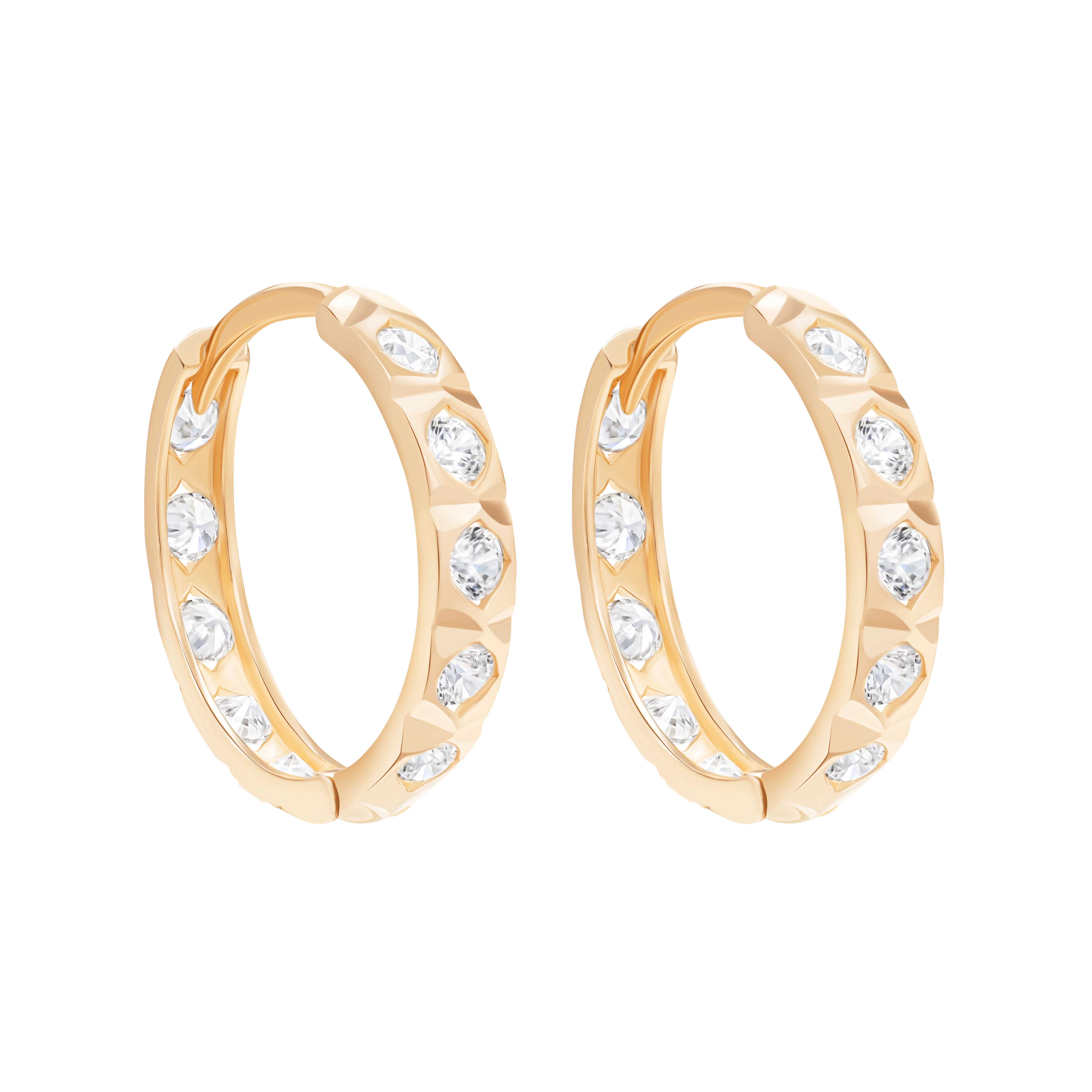 Сережки-кольца из красного золота с фианитами - 1801940