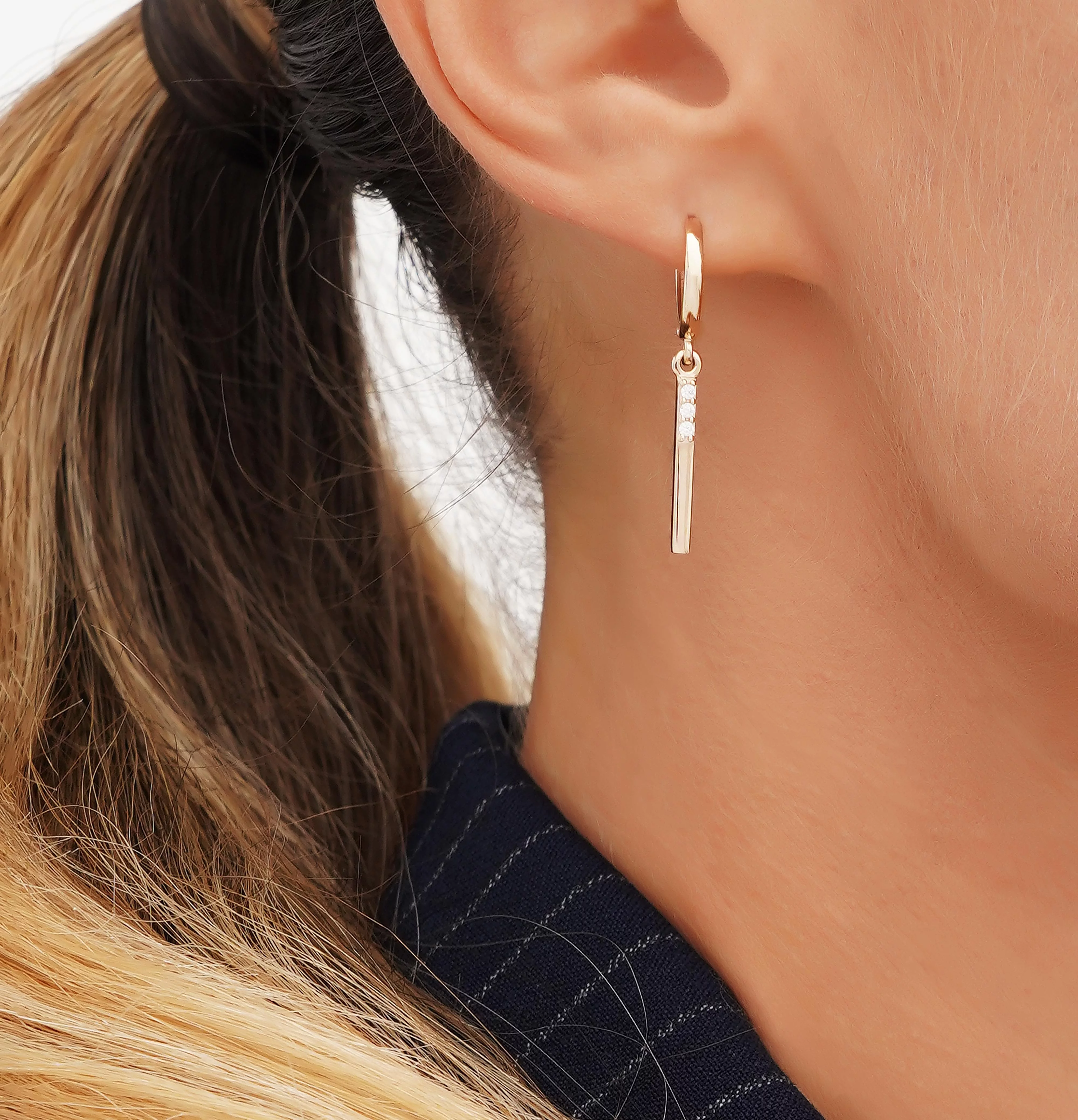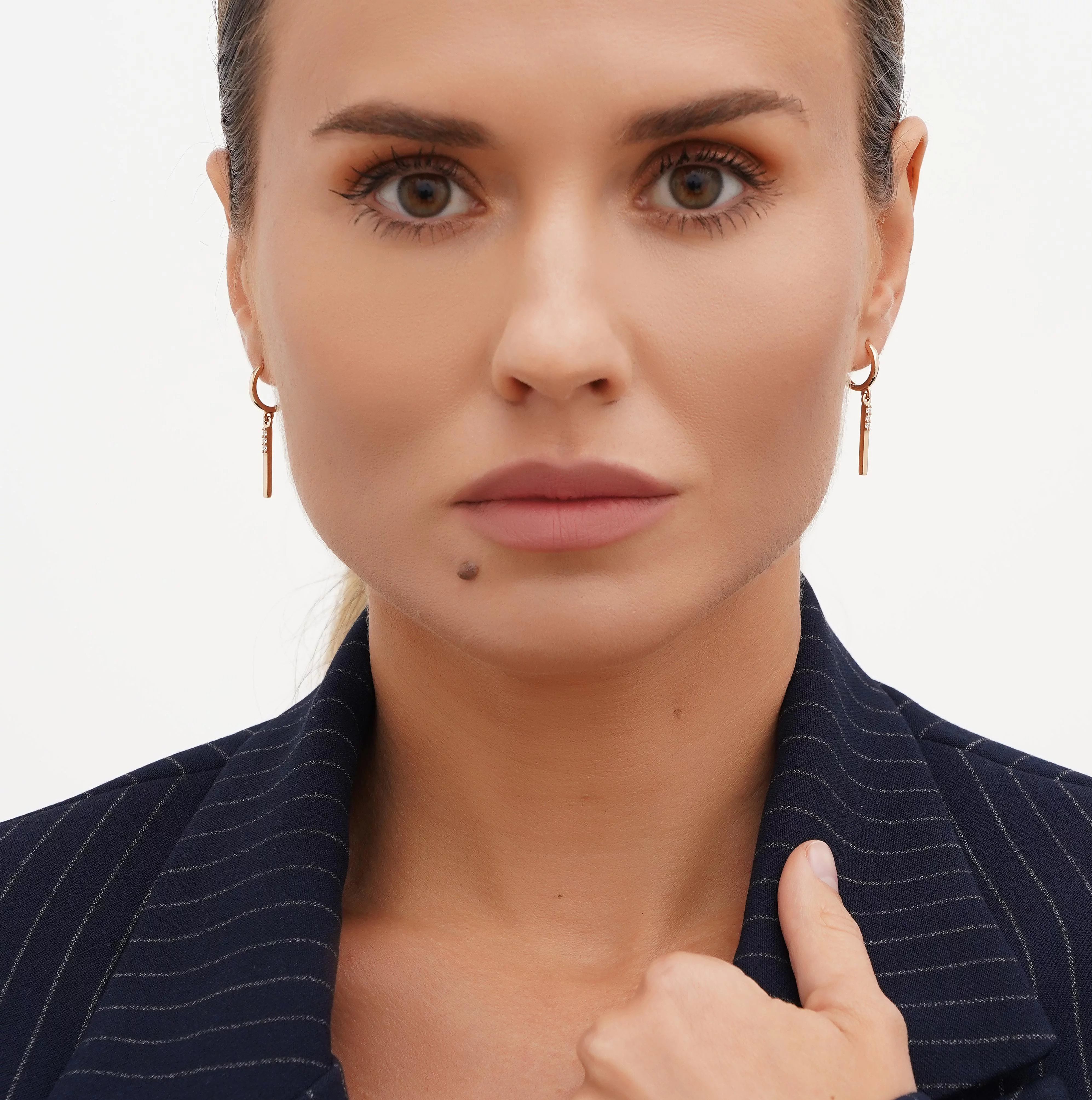 Сережки-кольца с подвесами из красного золота в минималистическом стиле - 1690471