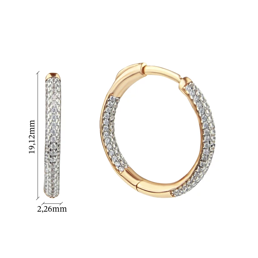 Сережки-кольца из красного золота с подвесами с белыми и зелеными фианитами "Пантера" - 1485621