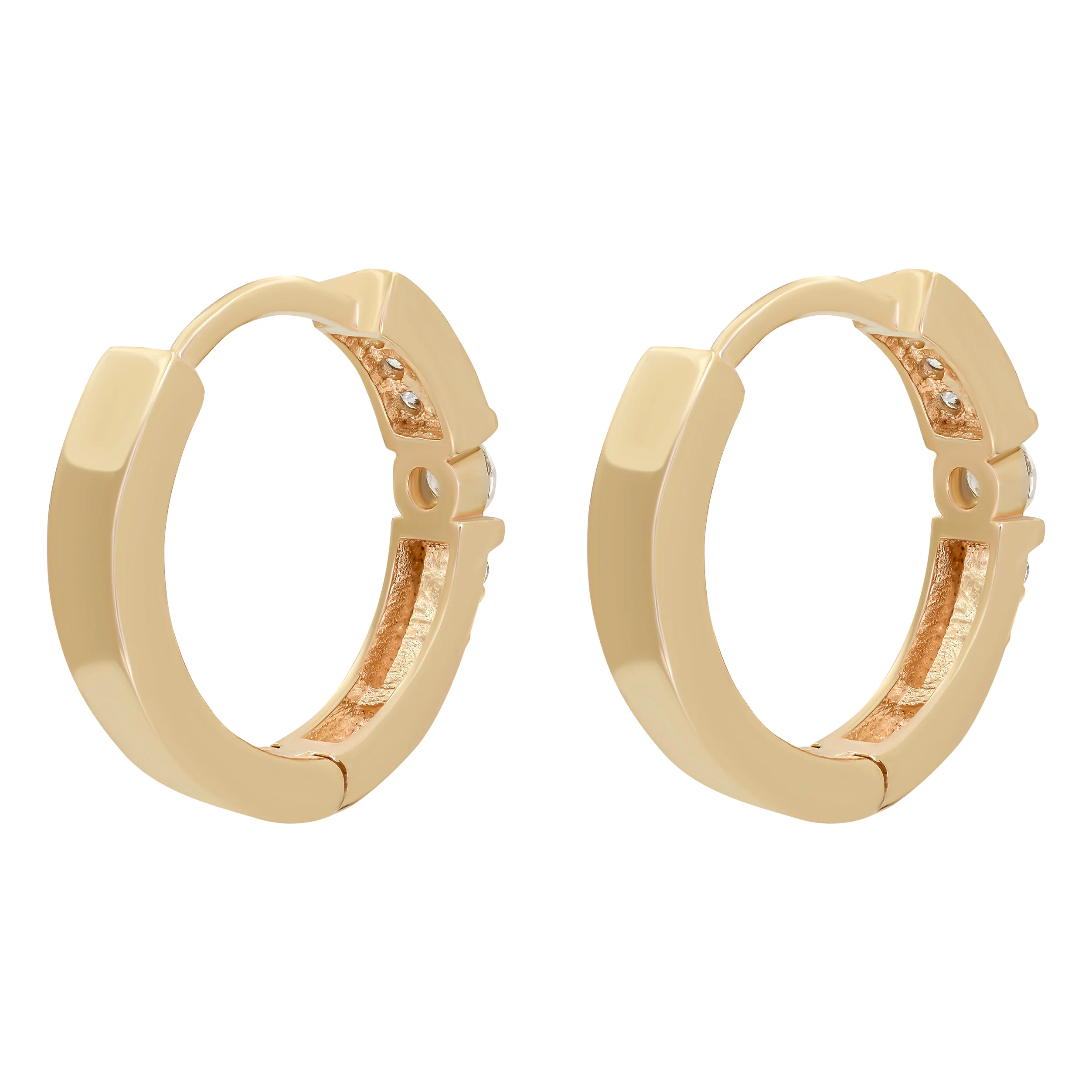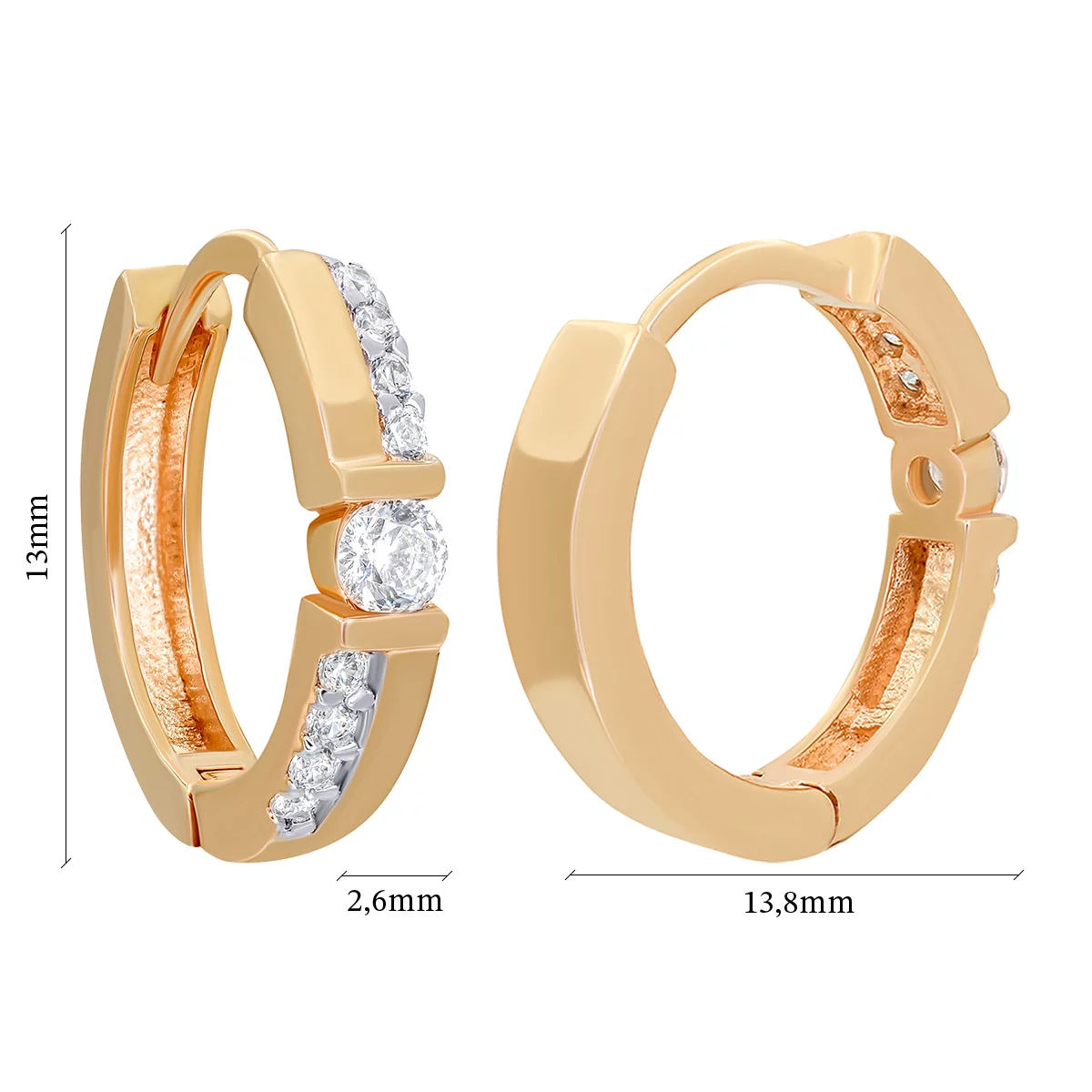 Сережки-кольца из красного золота с фианитом - 890887
