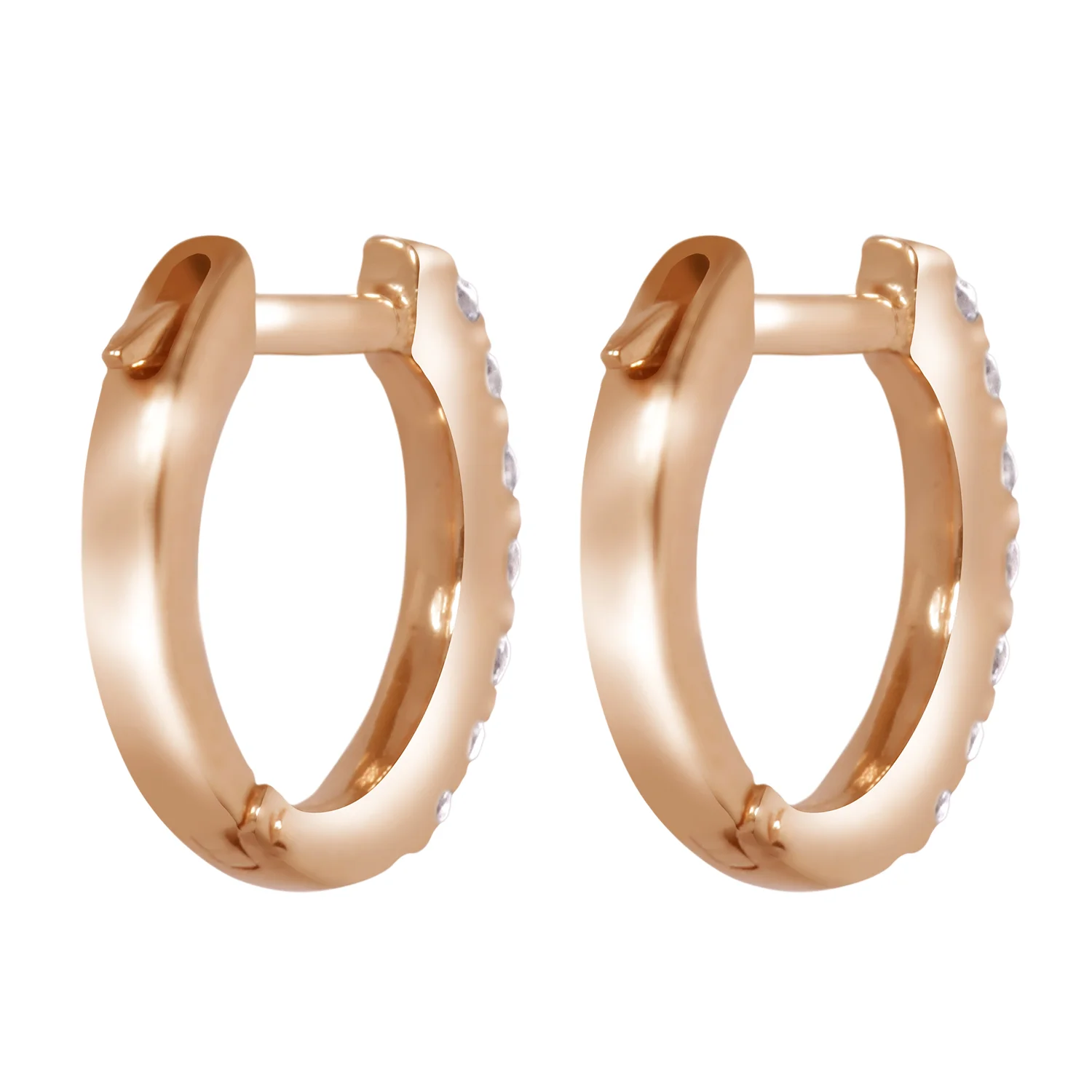 Классические сережки-кольца из красного золота с алмазной гранью - 1918858