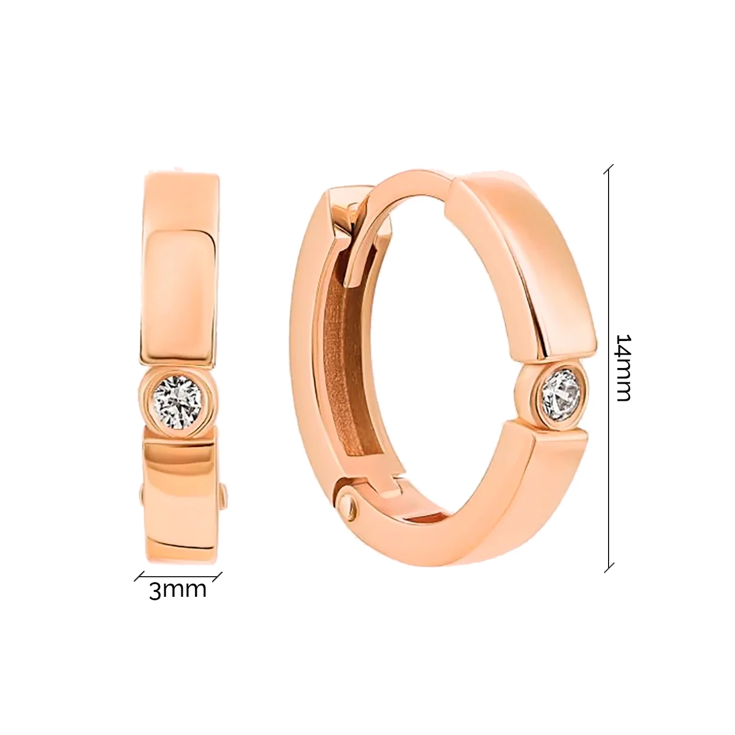 Сережки-кольца с фианитами и подвесным сердечком из красного золота - 1562140