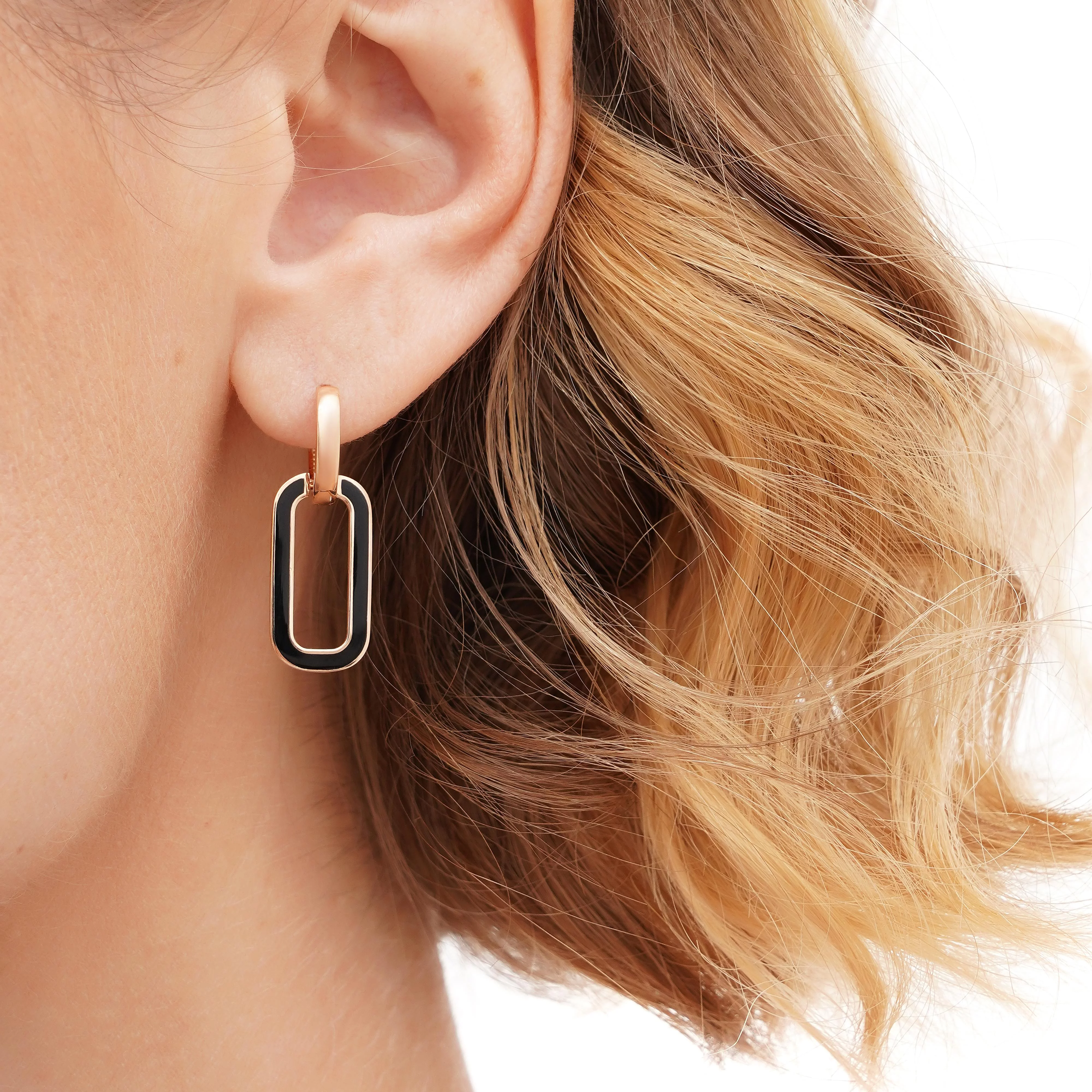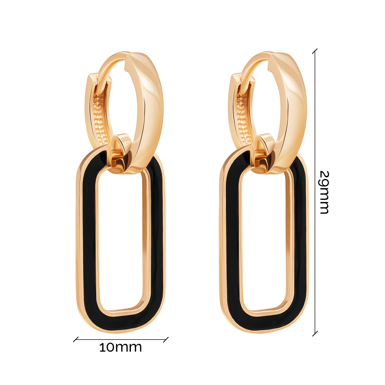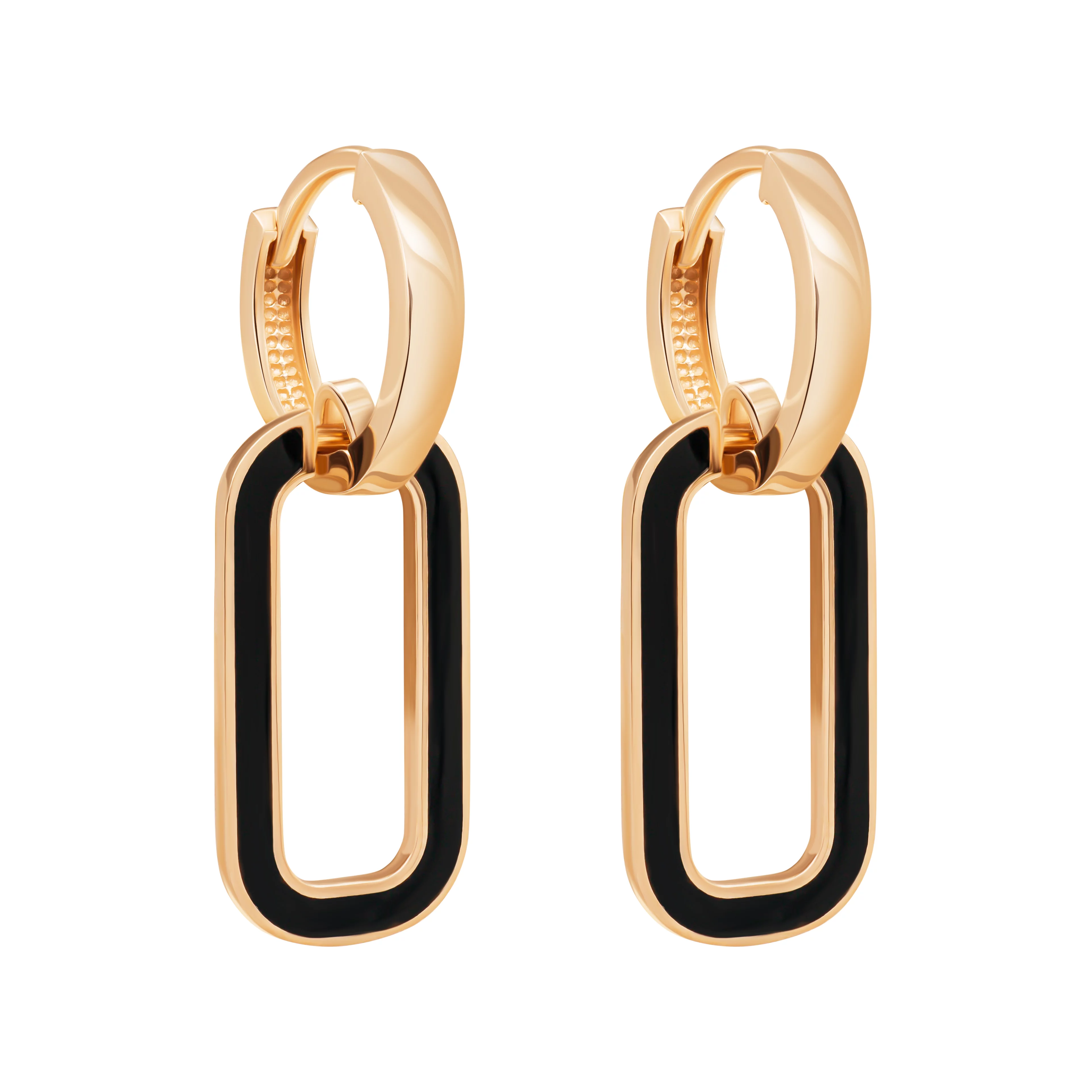 Стильные сережки с подвесами в красном золоте с эмалью и фианитом - 1928138