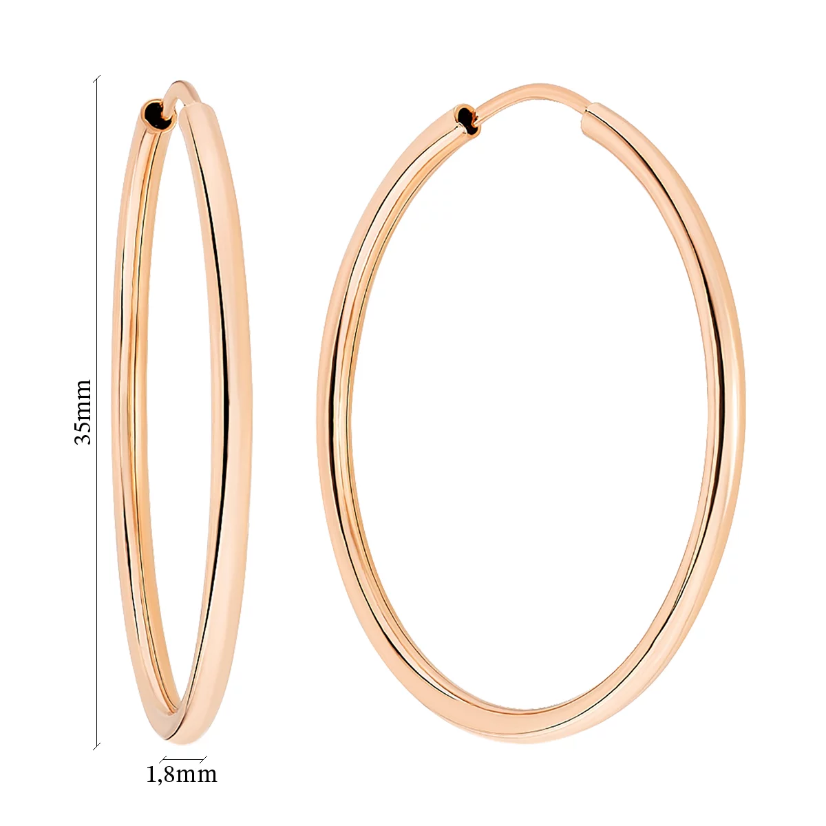 Классические сережки-кольца из красного золота с алмазной гранью - 1918858