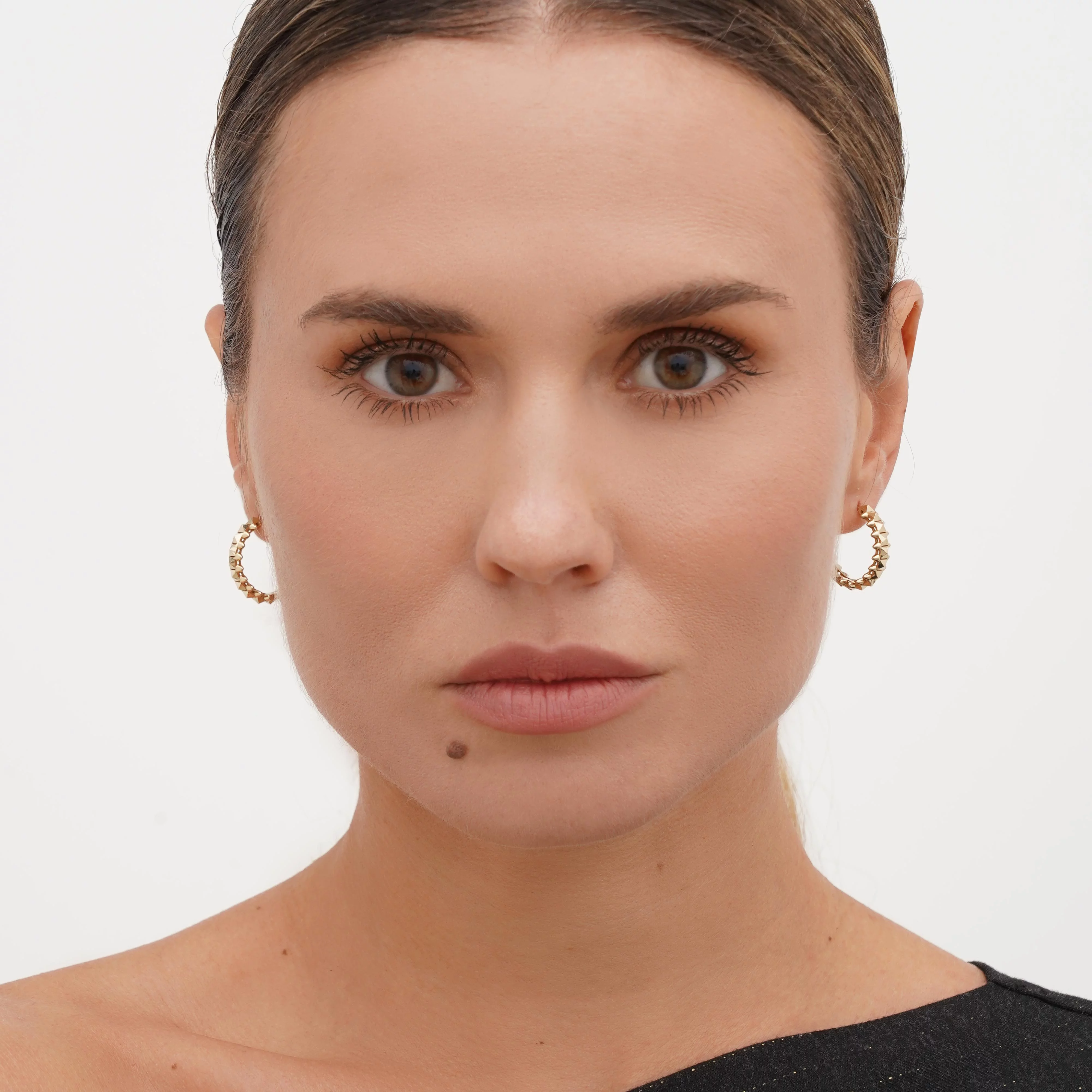 Сережки-кольца из лимонного золота "Clash" - 1745226