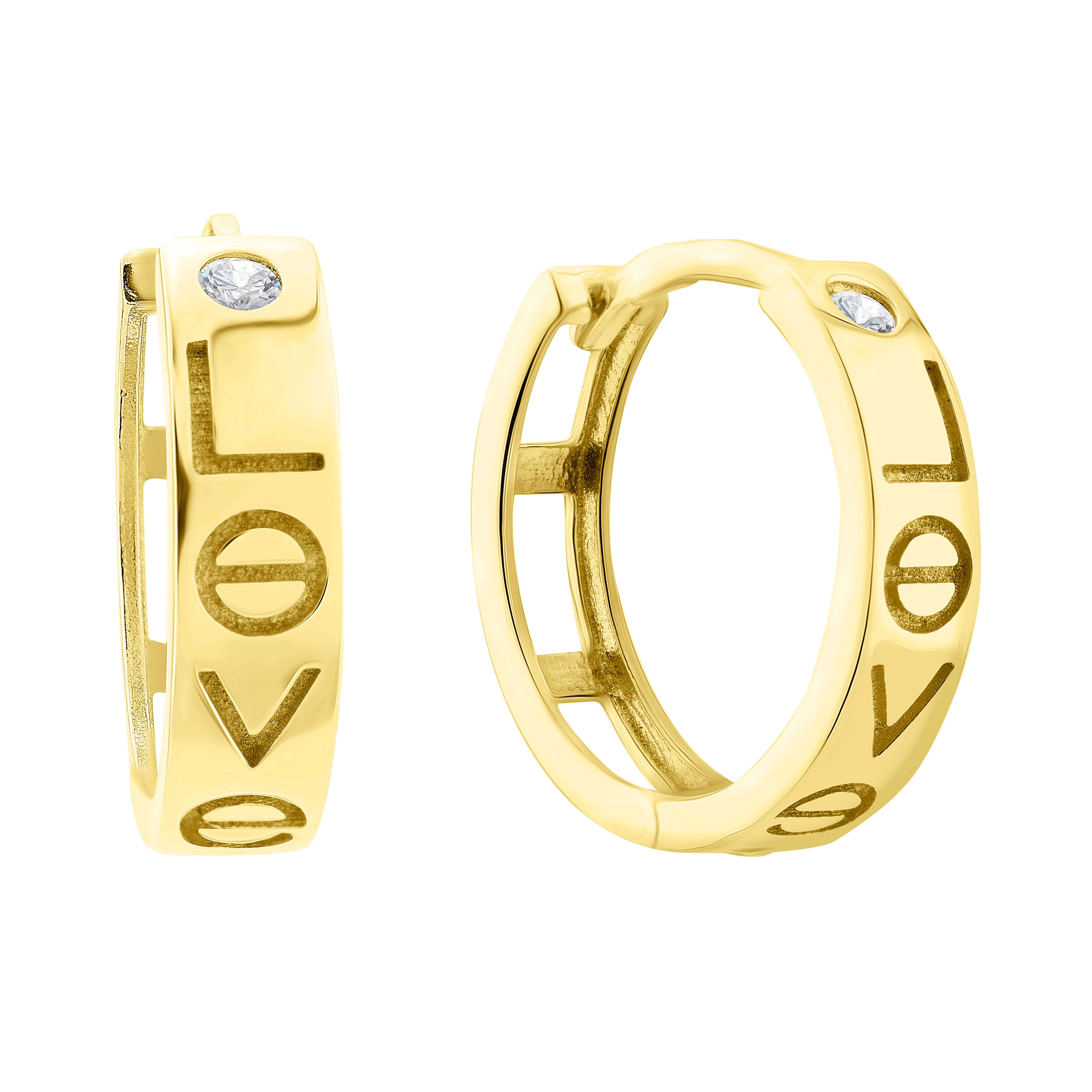 Сережки-кольца с фианитами и подвесным сердечком из красного золота - 1562140