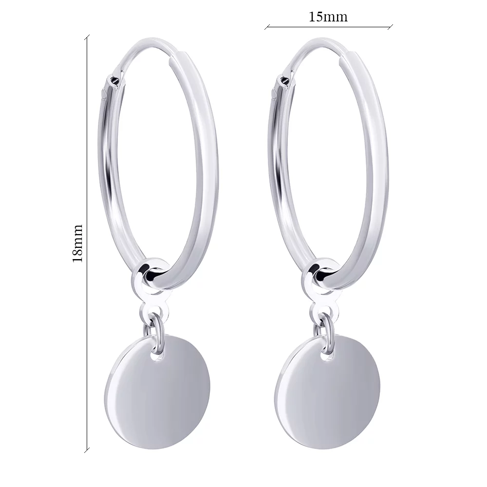 Сережки-кольца серебряные с подвесками "Монетки" - 886244